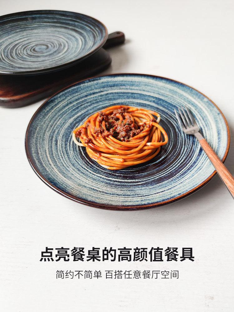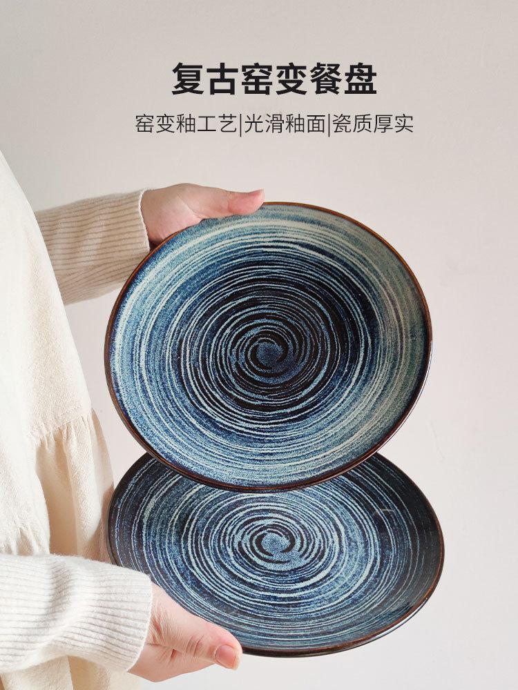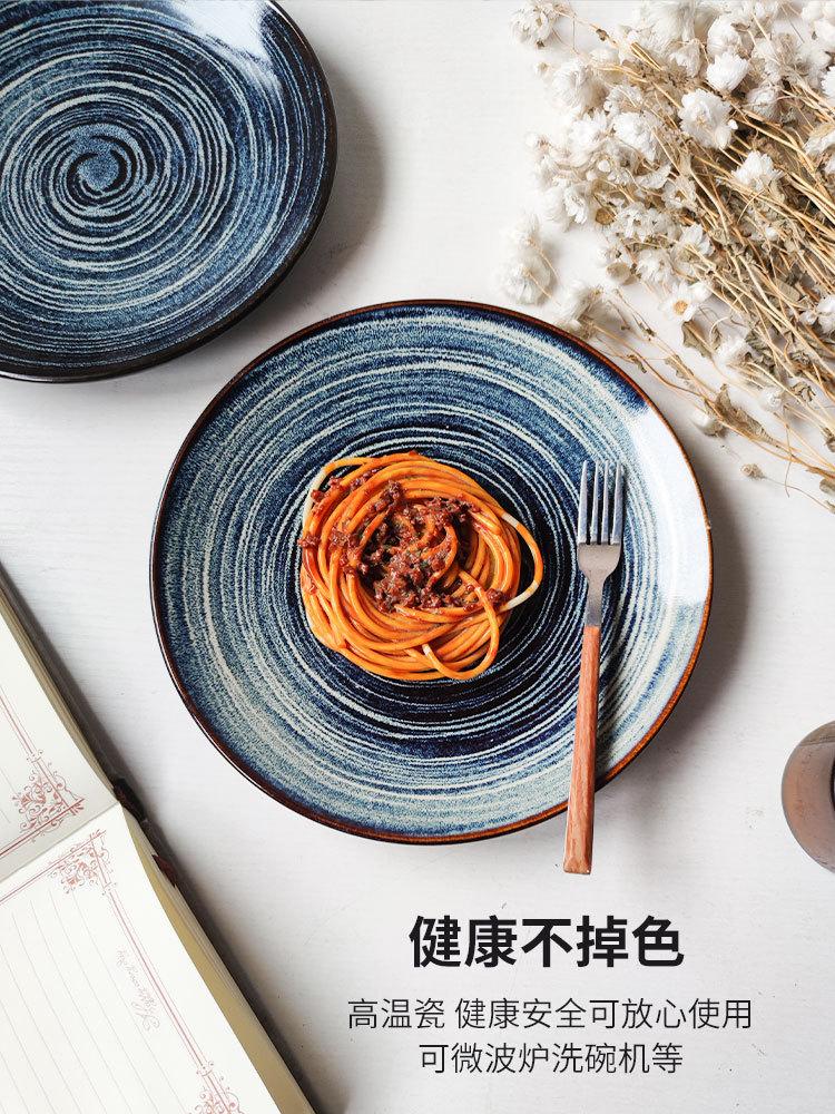 Plato retro de cerámica degradada de 8 pulgadas de gran aspecto, plato para bistec, plato para comida occidental, microdefecto