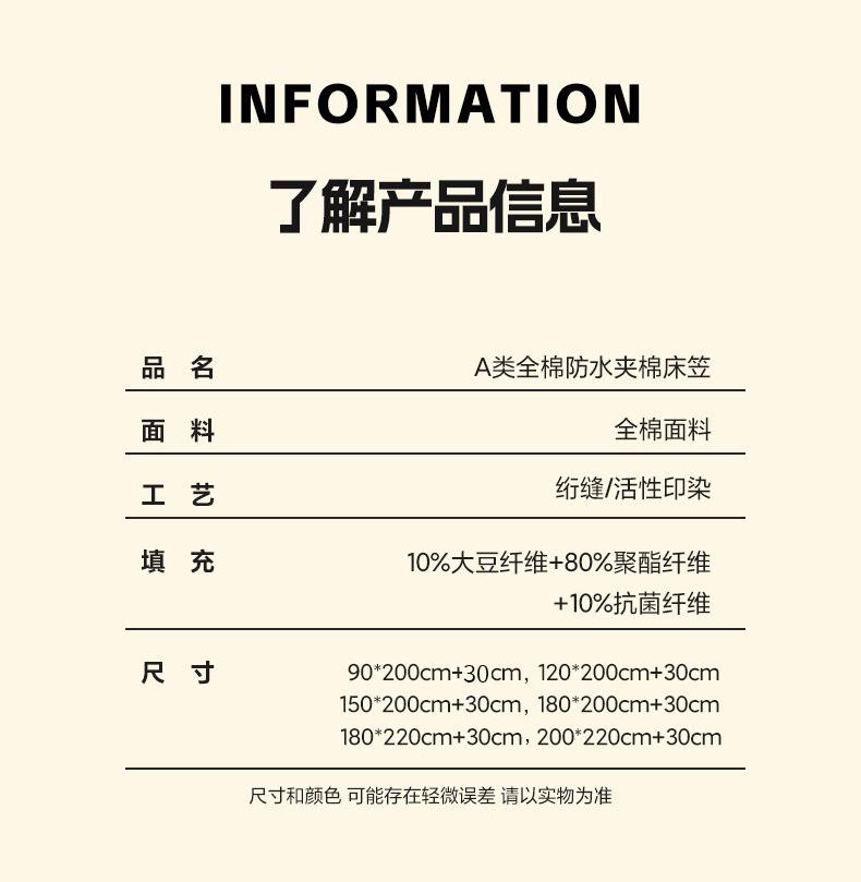 Quilted pillowcase 48*74cm, Quilted fitted sheet 90*200+30cm, Quilted fitted sheet 120*200+30cm, Quilted fitte...