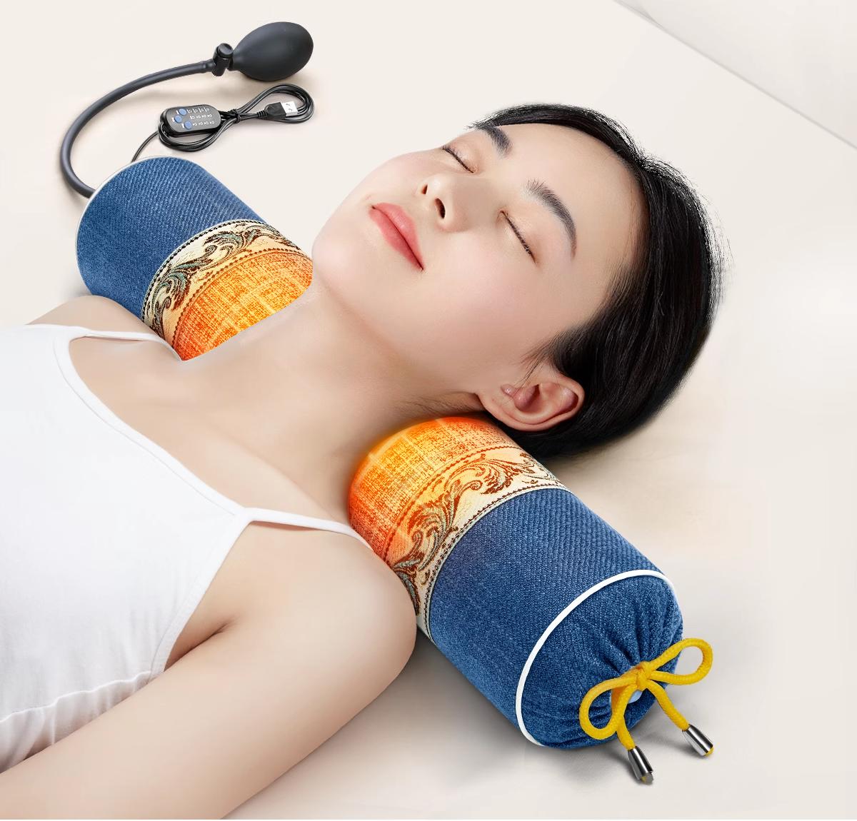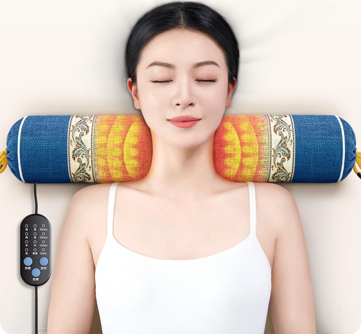 "massage" hot compress magnetic therapy inflatable model-12 flavor medium grass cylindrical pillow-high-grade gray