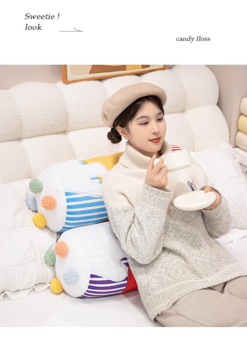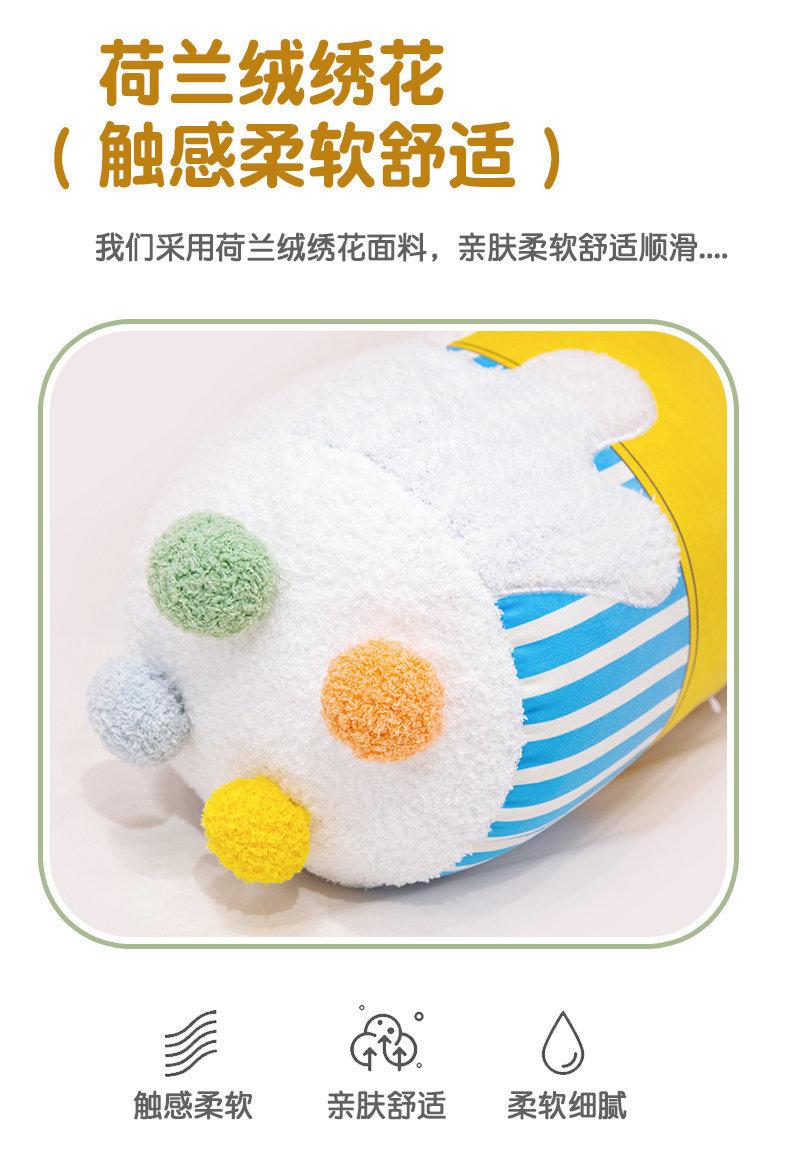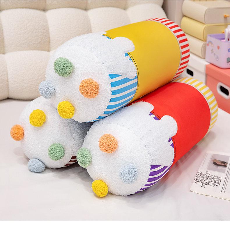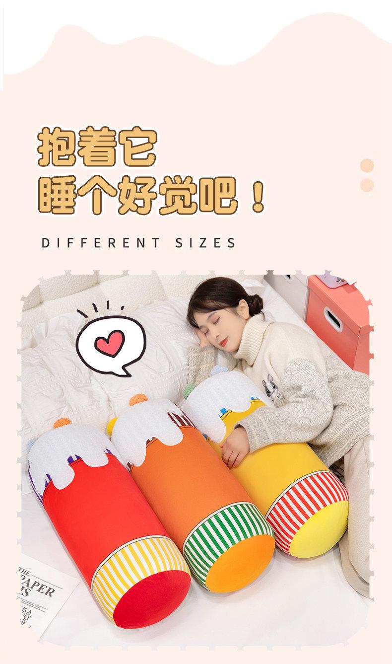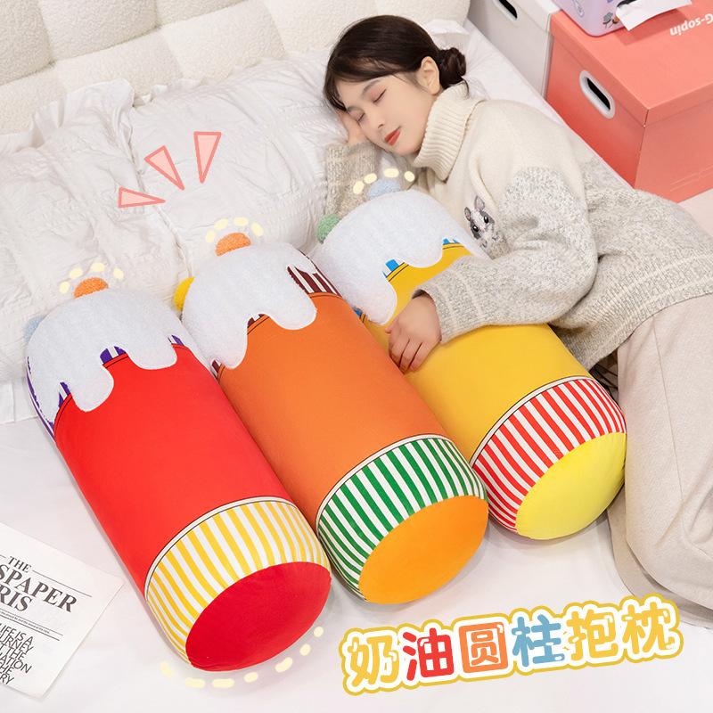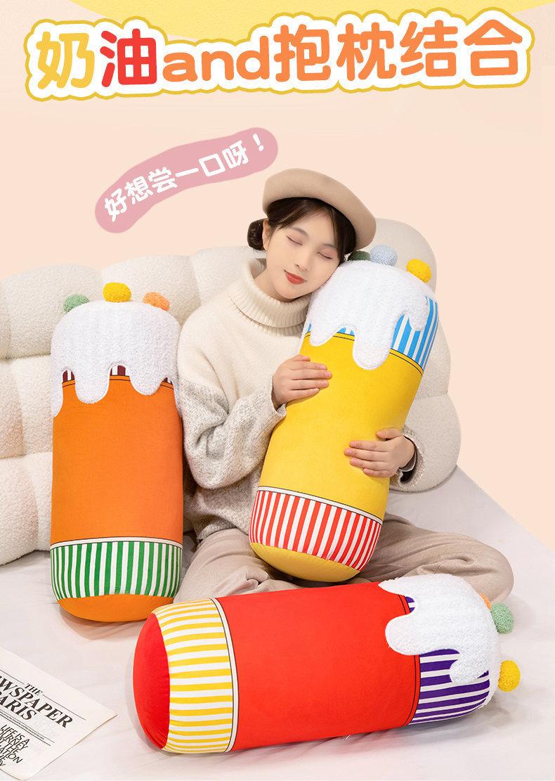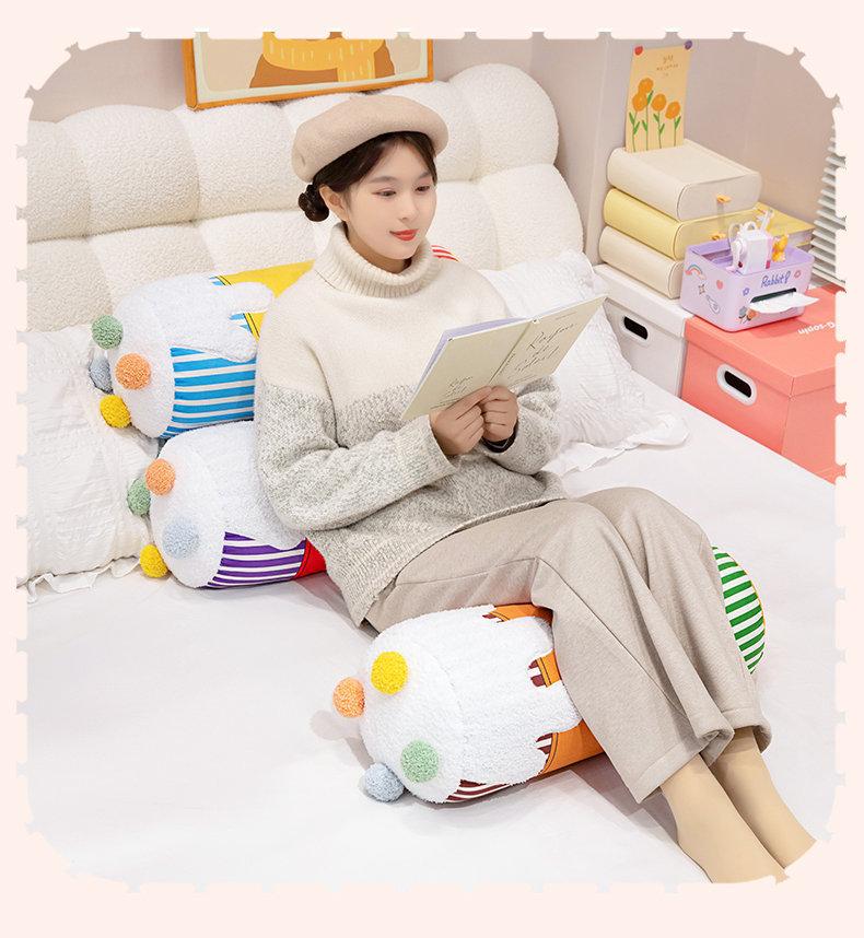 Bonita almohada cilíndrica de color crema con dibujos animados para dormir en la cama, sofá o dormitorio de estudiantes.