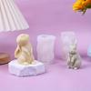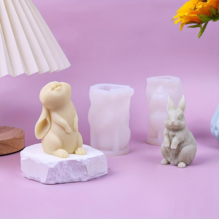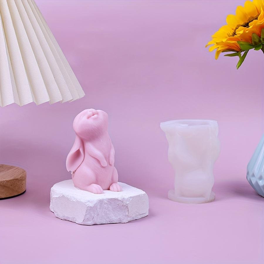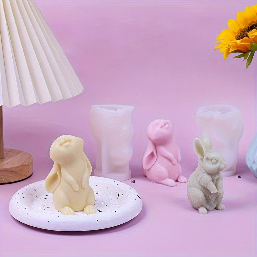 Molde de Vela de Aromaterapia de Conejo Soporte Sentado Sosteniendo Flor Adornos de Yeso de Conejo Molde de Silicona DIY Jabón de Animales Molde de Silicona