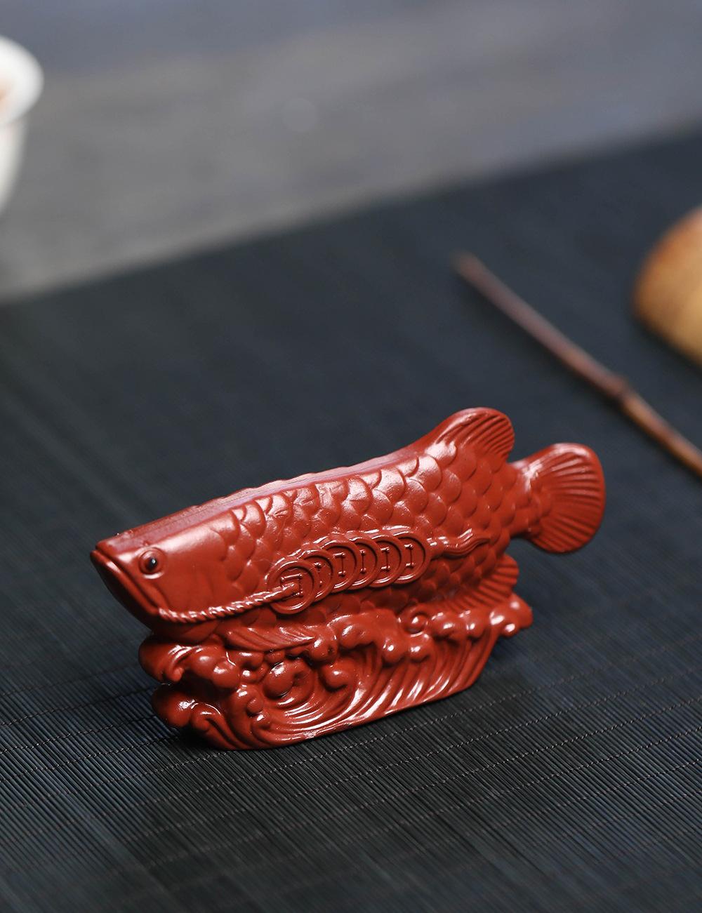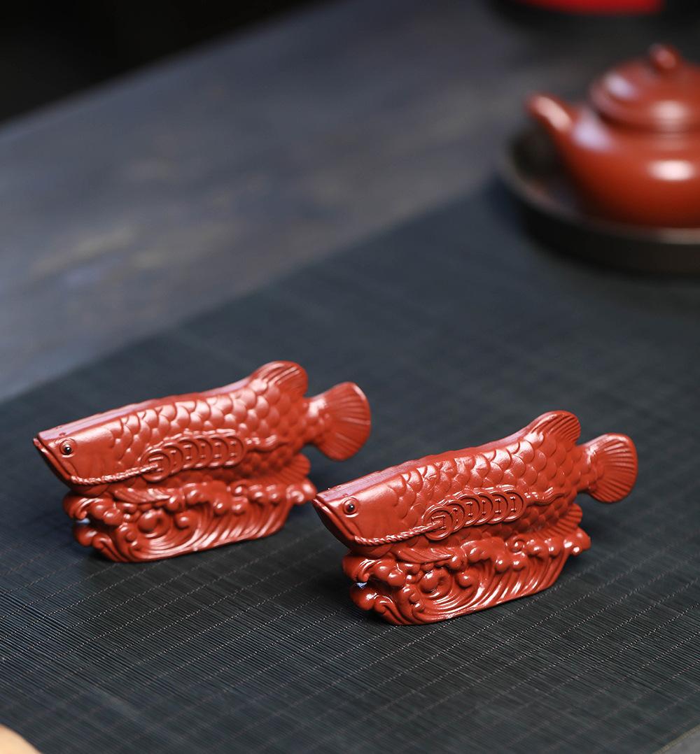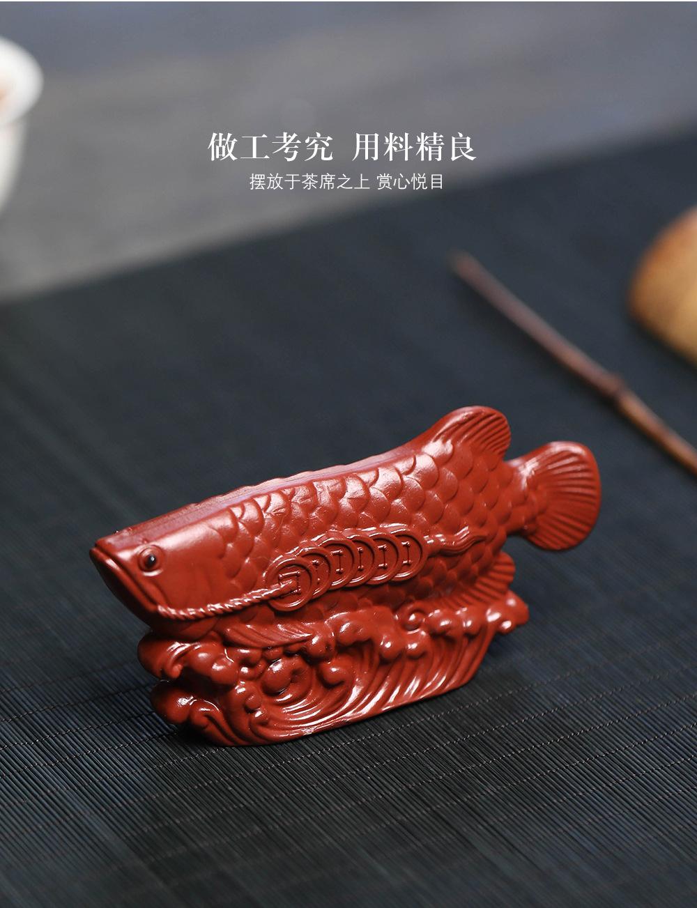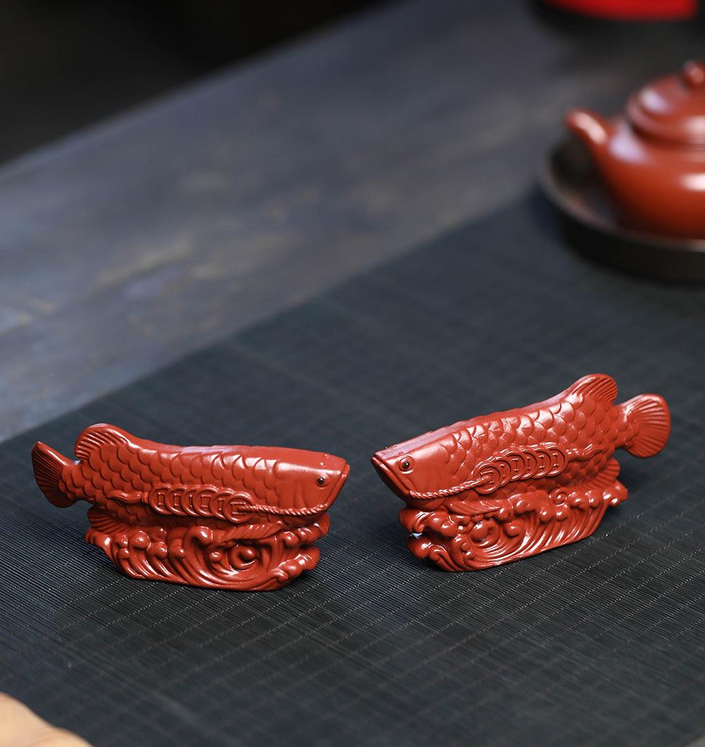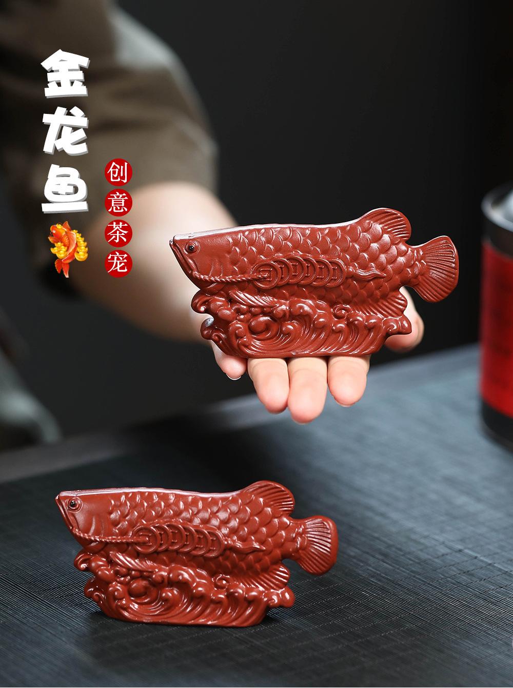 Adornos de pez dragón dorado para mascotas de té de arena púrpura de Yixing, hechos a mano, escultura de golpe de suerte dahongpao, juego de té, accesorios para la ceremonia del té que se pueden levantar