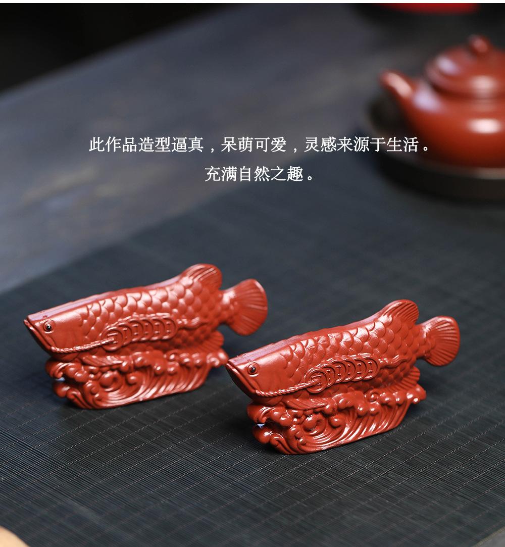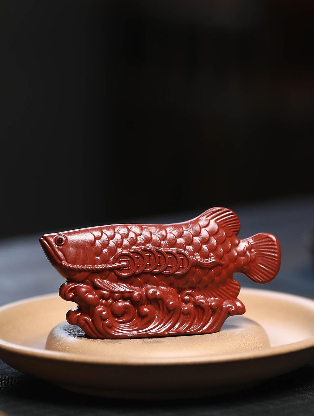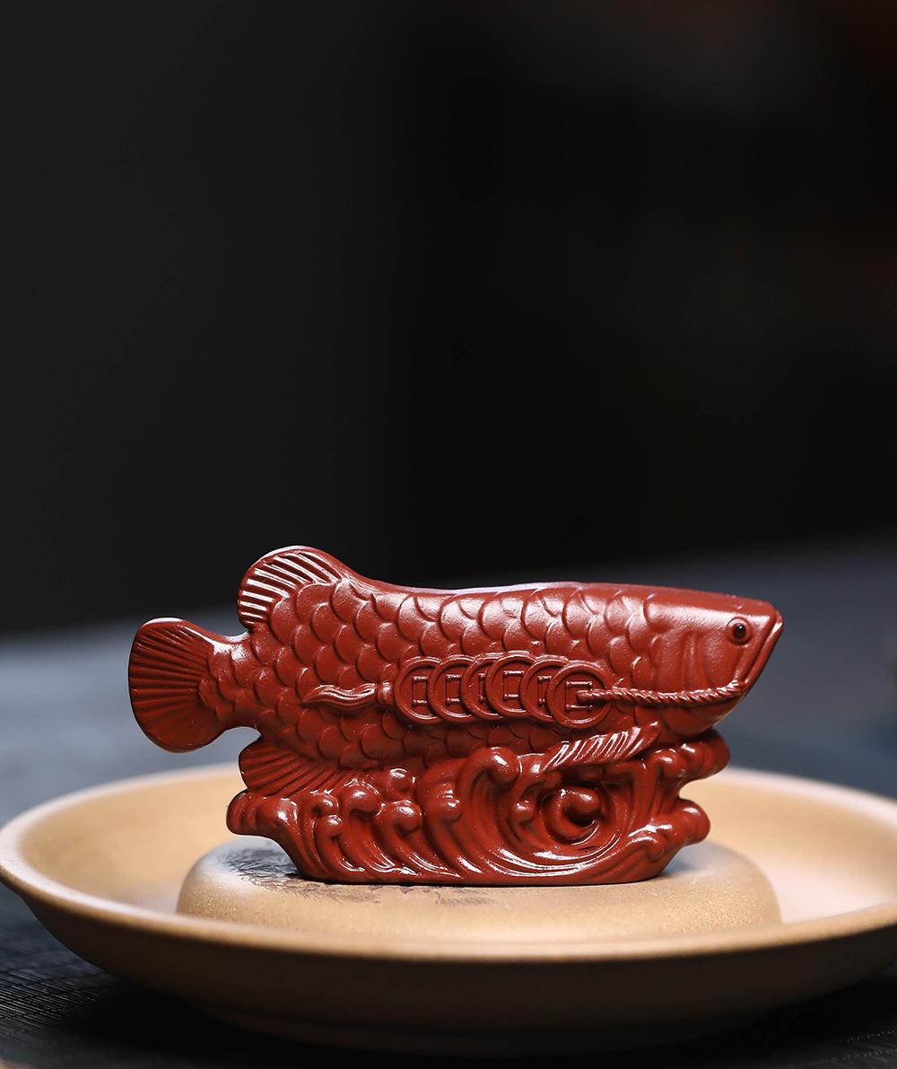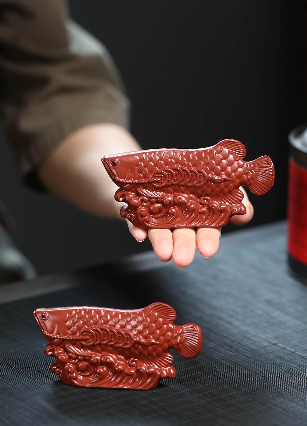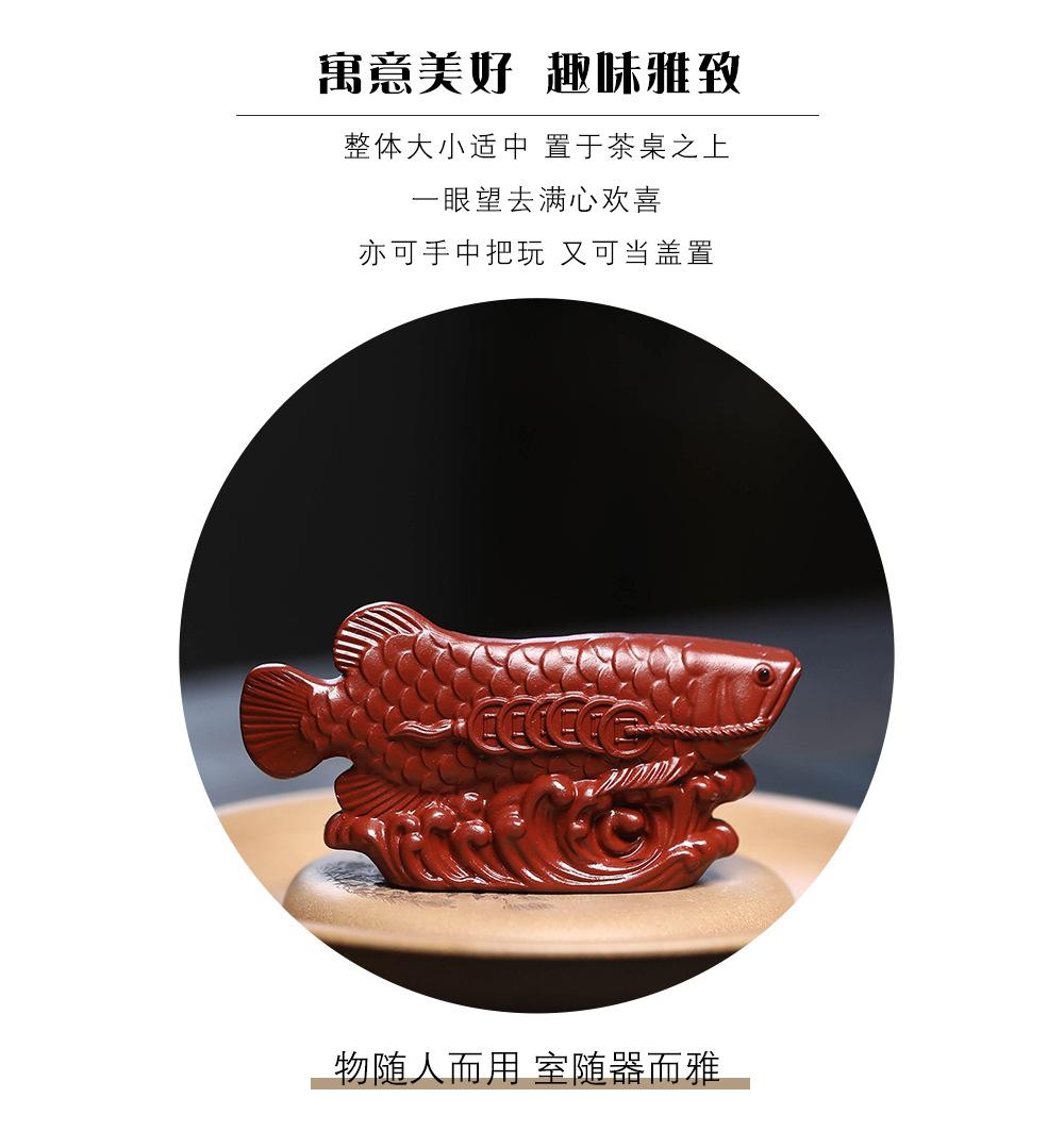 Adornos de pez dragón dorado para mascotas de té de arena púrpura de Yixing, hechos a mano, escultura de golpe de suerte dahongpao, juego de té, accesorios para la ceremonia del té que se pueden levantar
