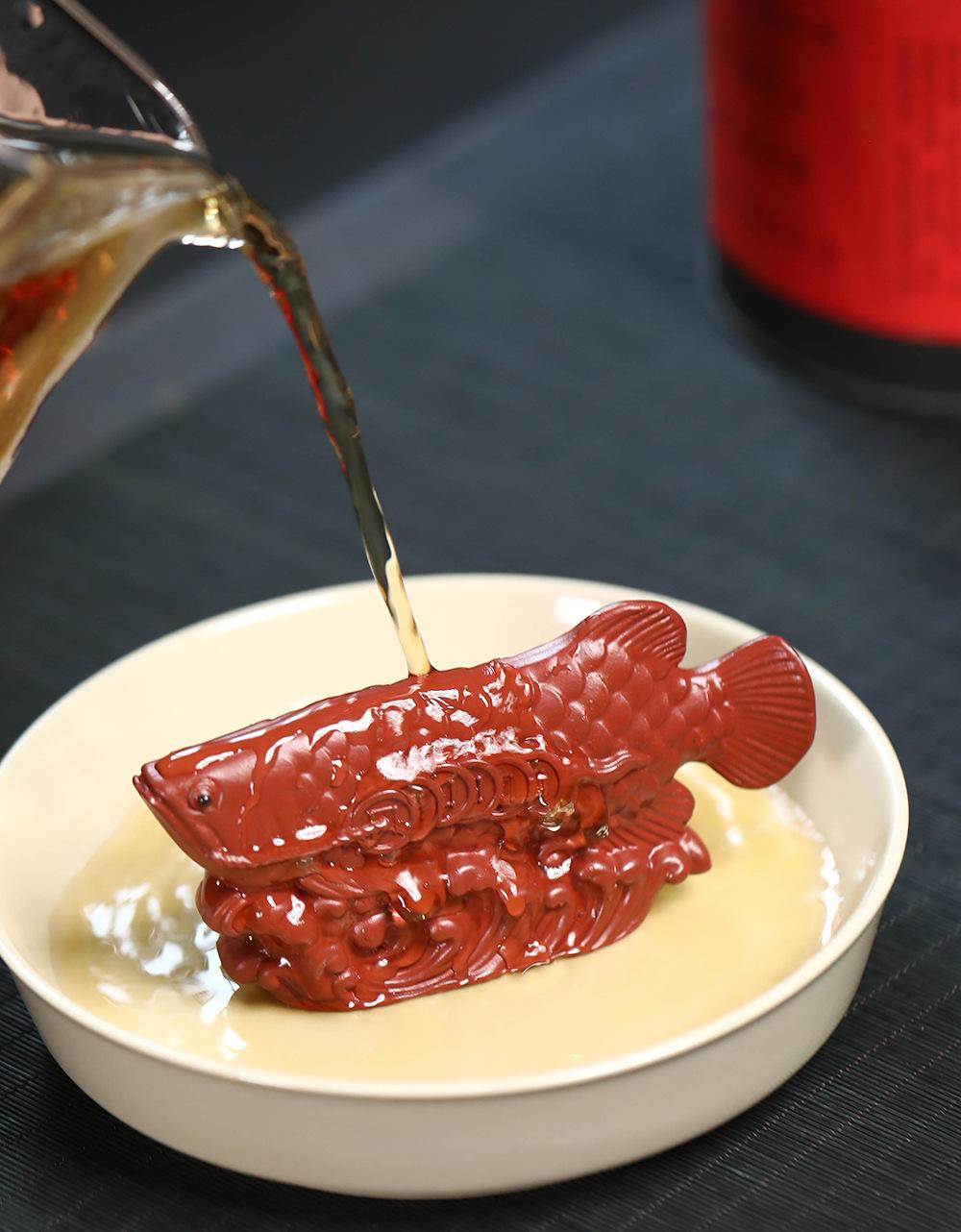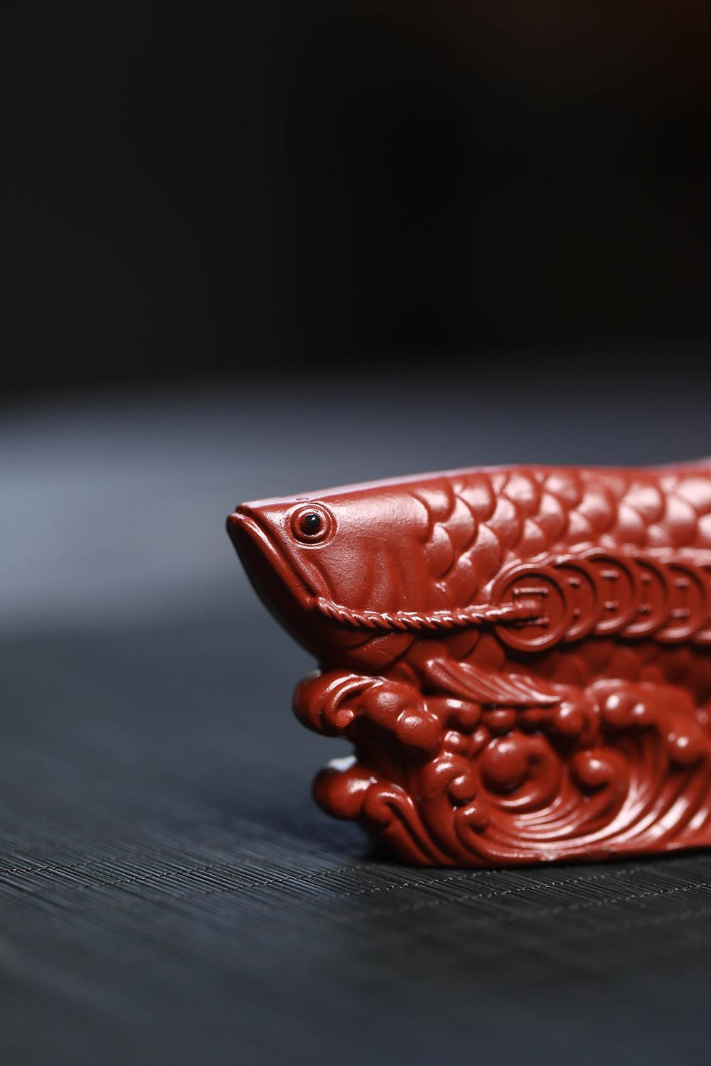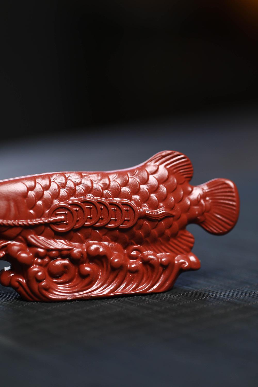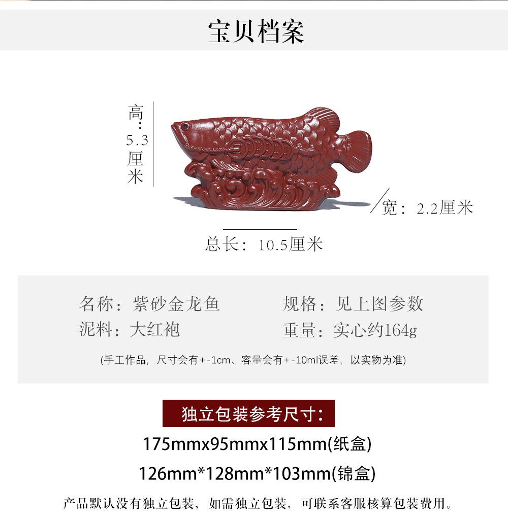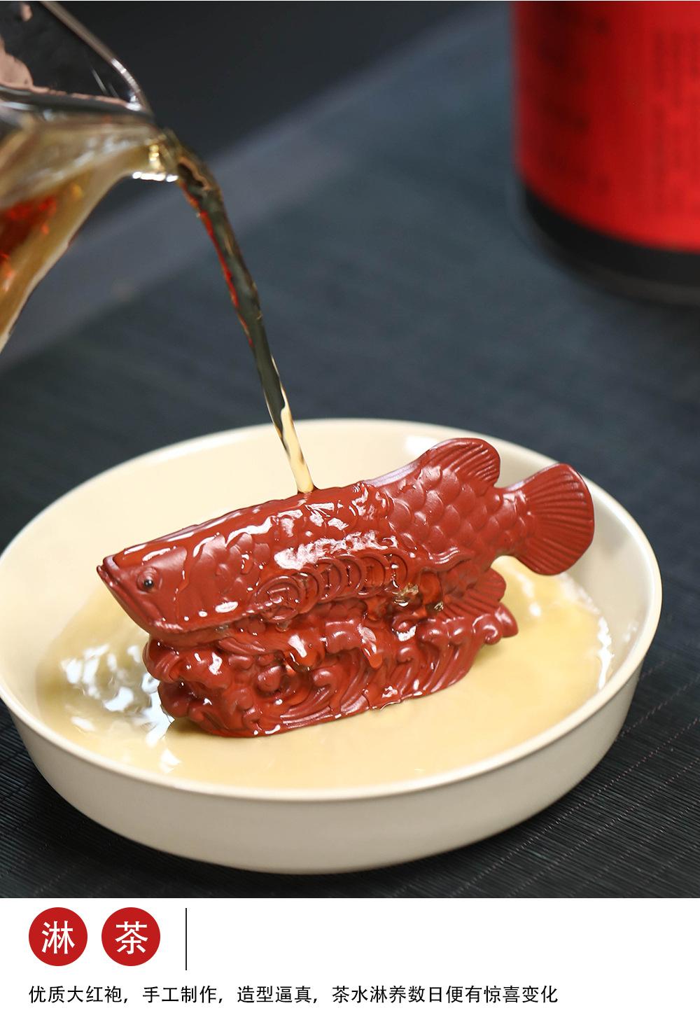 Adornos de pez dragón dorado para mascotas de té de arena púrpura de Yixing, hechos a mano, escultura de golpe de suerte dahongpao, juego de té, accesorios para la ceremonia del té que se pueden levantar