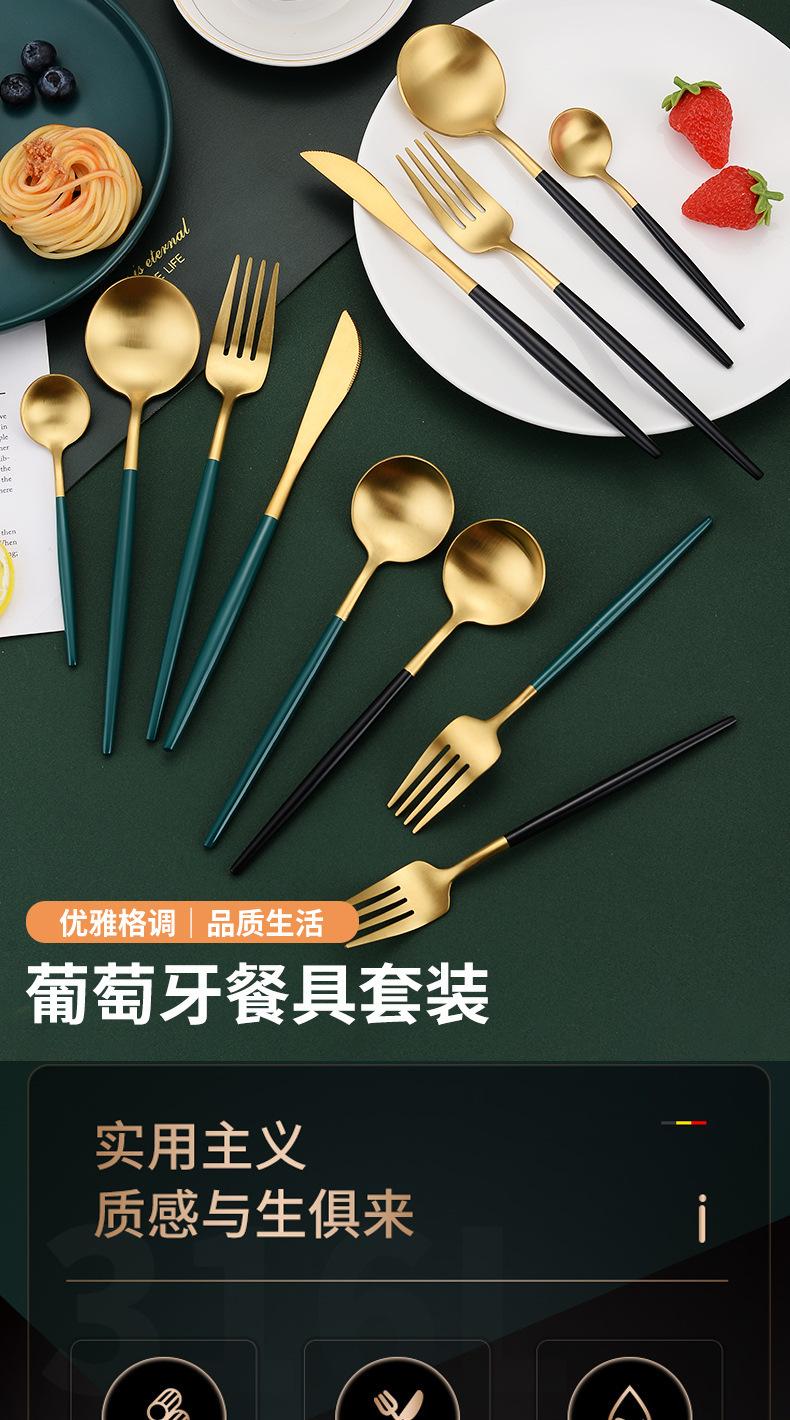 Cuchillo tenedor cuchara para carne de restaurante occidental de acero inoxidable de alta calidad portugués, adecuado para cucharas de postre de cafetería europea de alto valor