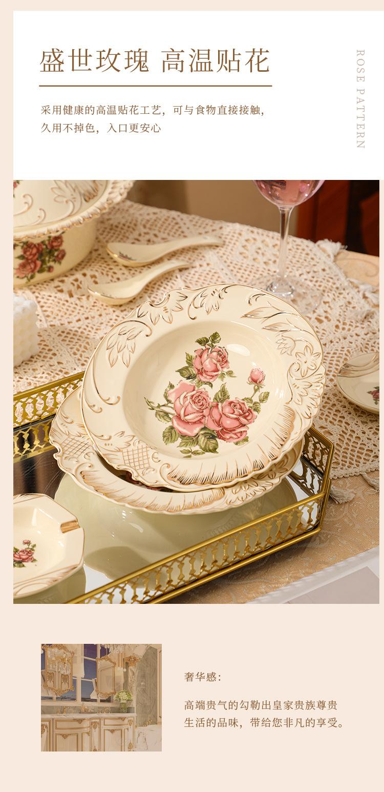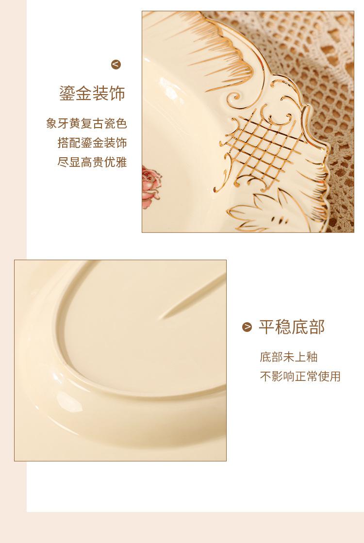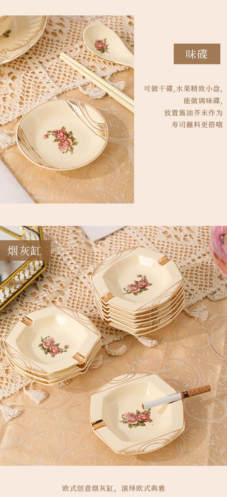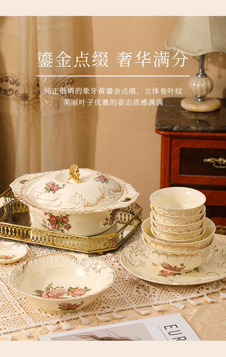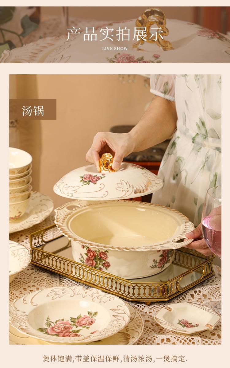 Vajilla de cerámica de estilo europeo con borde dorado, plato de cerámica rosa pintado en oro, plato de olla oscura, plato de fruta, tazón de arroz, plato de olla oscura