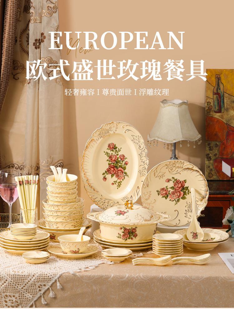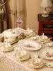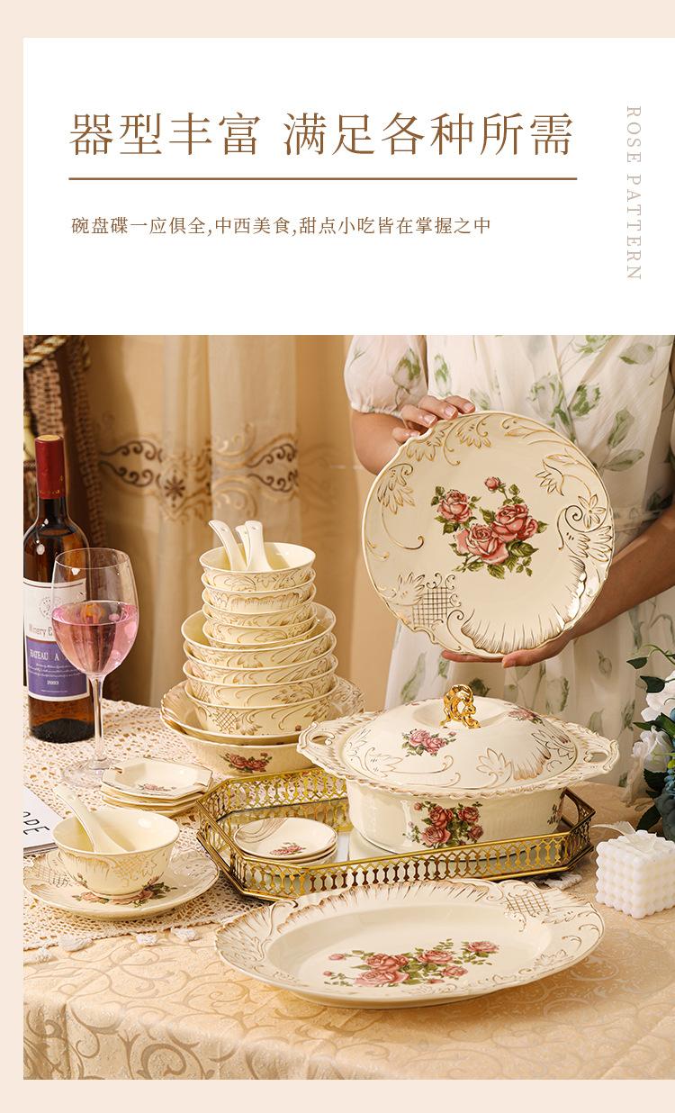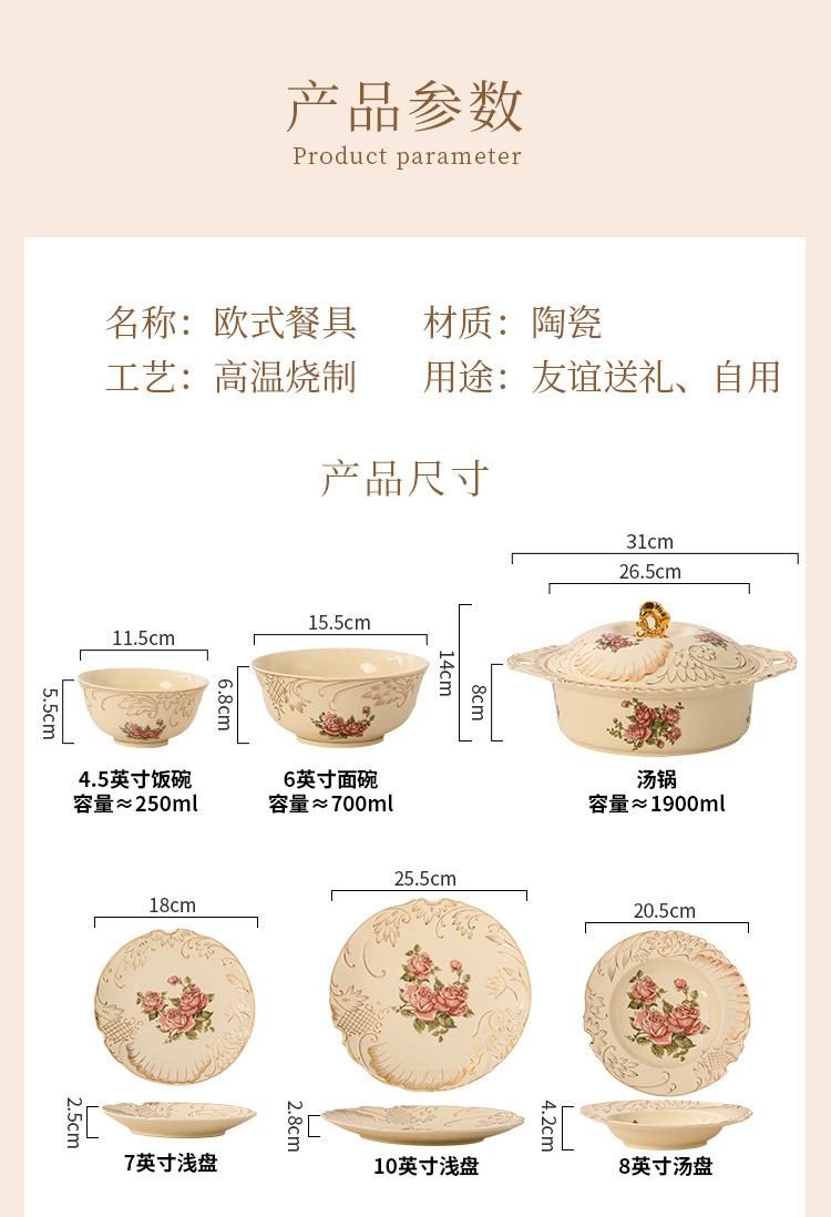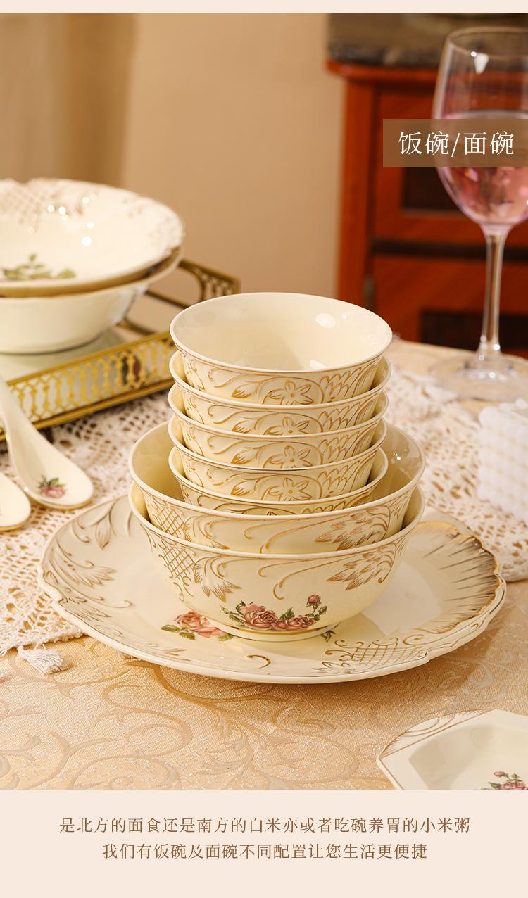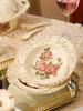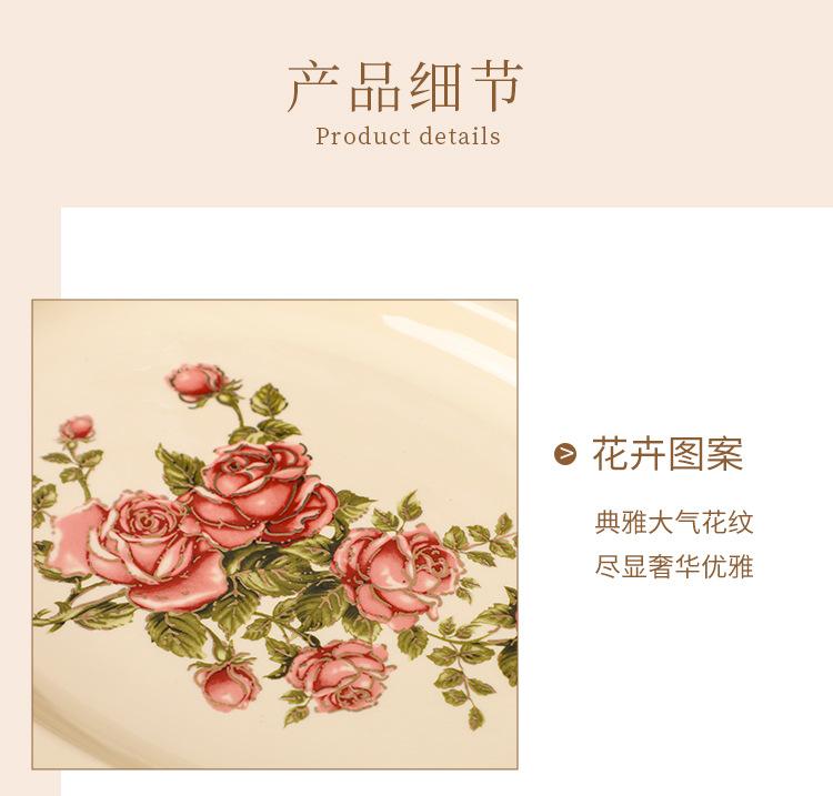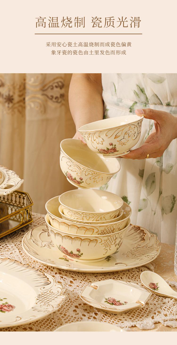 Vajilla de cerámica de estilo europeo con borde dorado, plato de cerámica rosa pintado en oro, plato de olla oscura, plato de fruta, tazón de arroz, plato de olla oscura