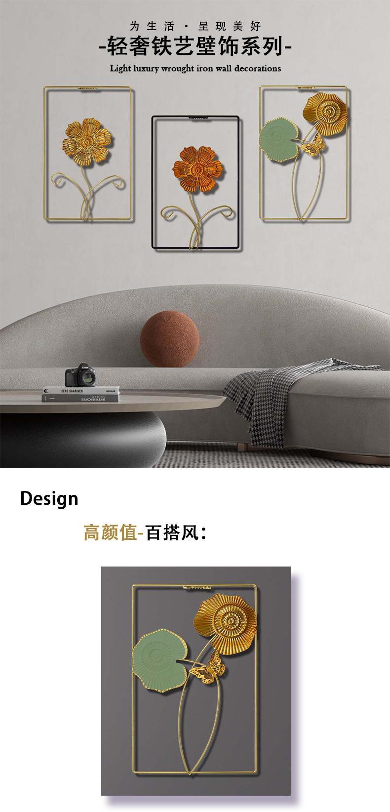 Artesanías de hierro forjado creativas y calientes de comercio exterior con forma de flor, colgante de pared de metal, decoración del hogar, venta al por mayor