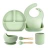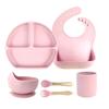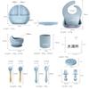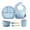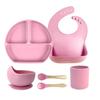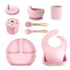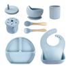 Set de vajilla de silicona para niños transfronterizo, tazón para comida de bebé, tenedor y cuchara de silicona, tazón de dibujos animados con divisiones, juego de ocho piezas