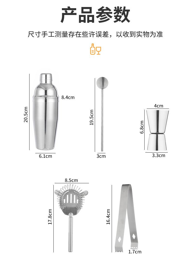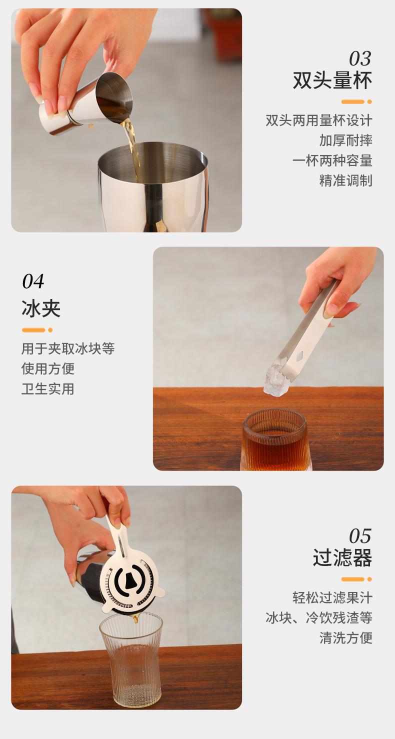 Wine shaker, measuring cup, ice clip, filter, spoon, etc