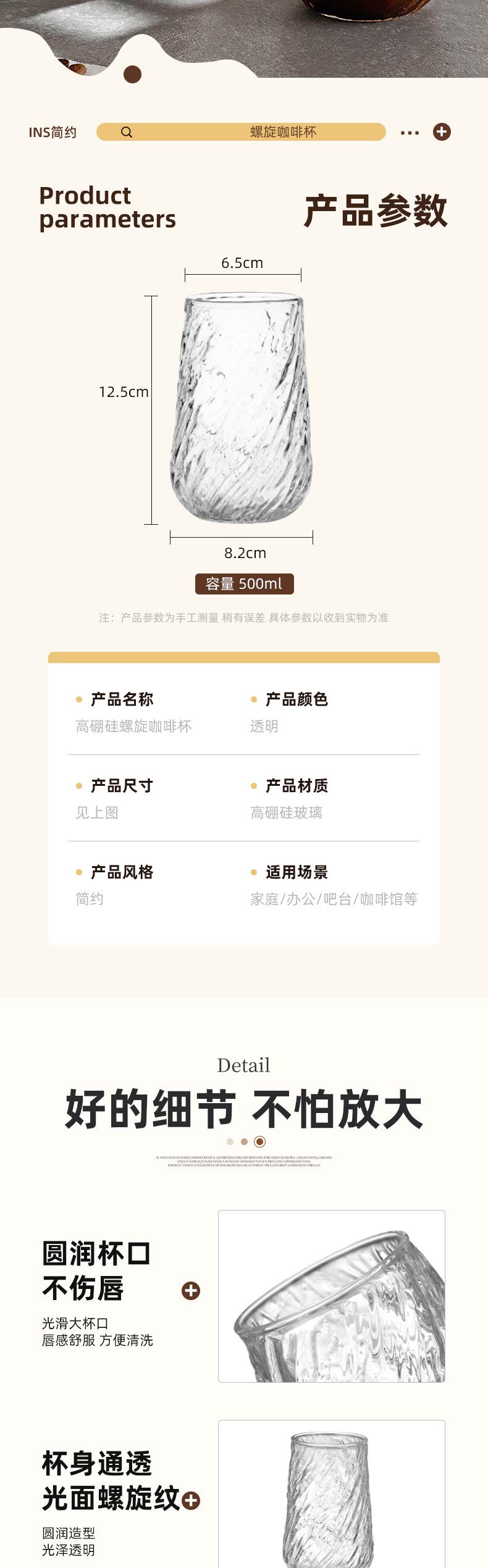 Taza de café en espiral de borosilicato alto, creativa, de gran capacidad, para café con leche americano, transparente, de alta temperatura, para el hogar