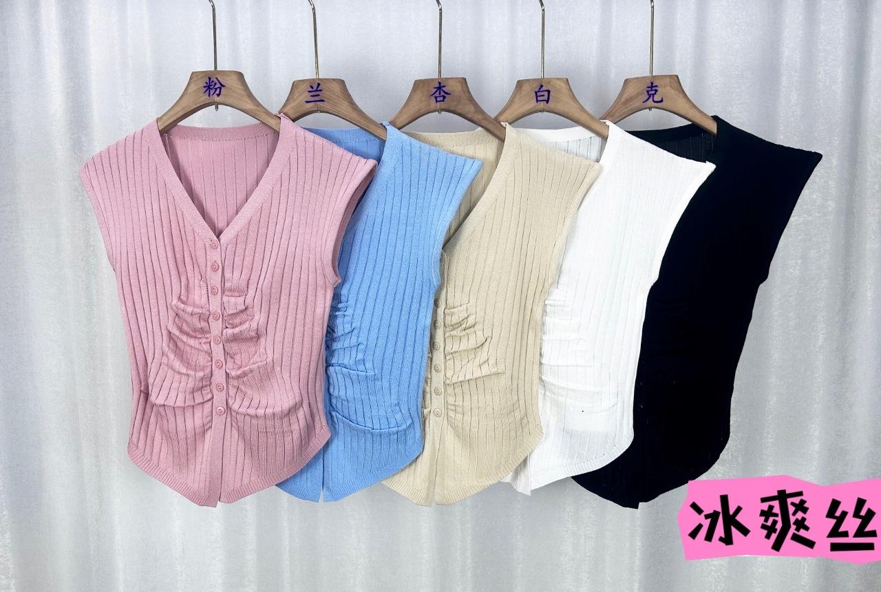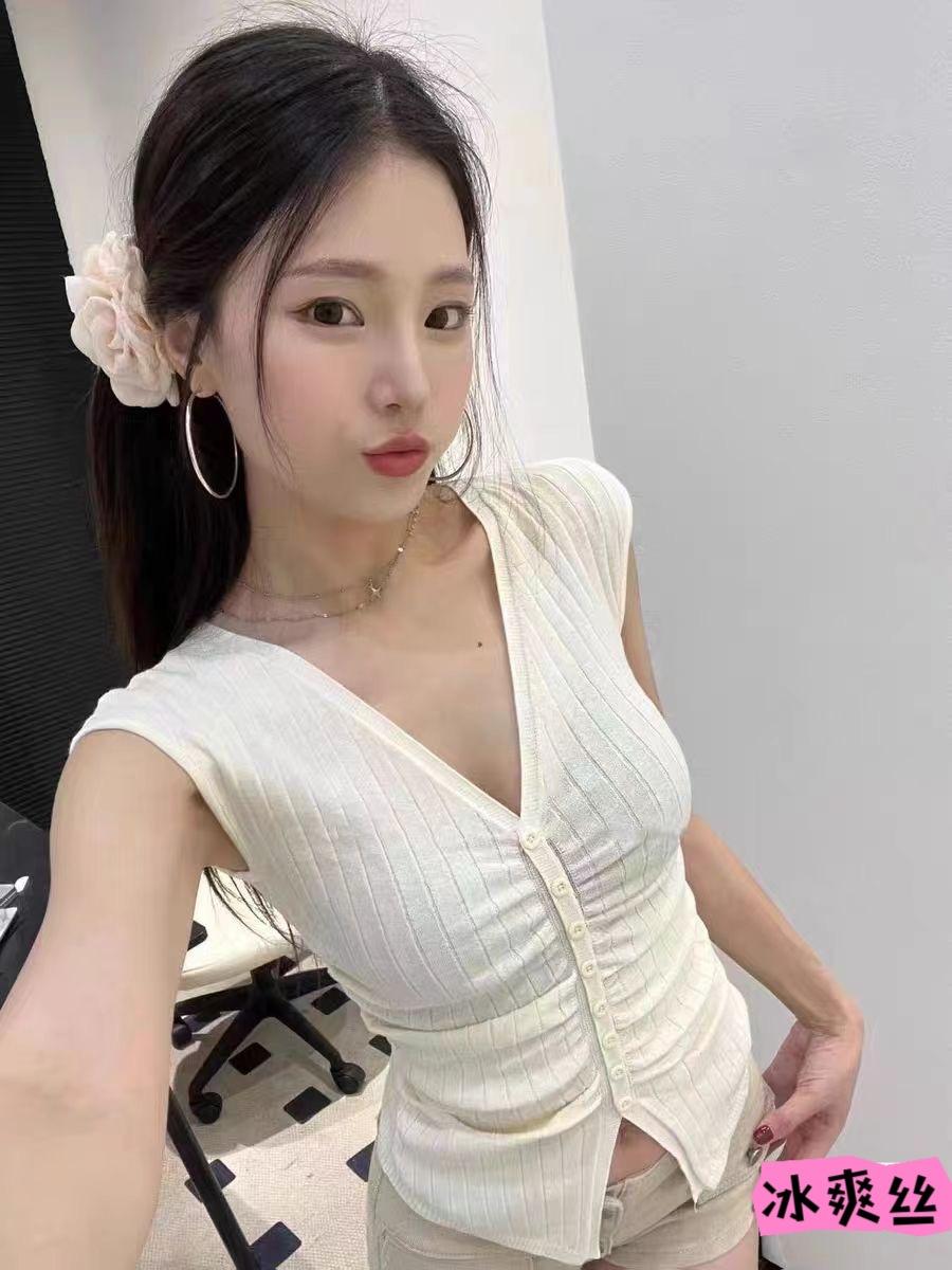 Blusa sin mangas Spice Girls de corte entallado con cuello en V plisado dulce y puro para mujer, novedad de verano de 2024