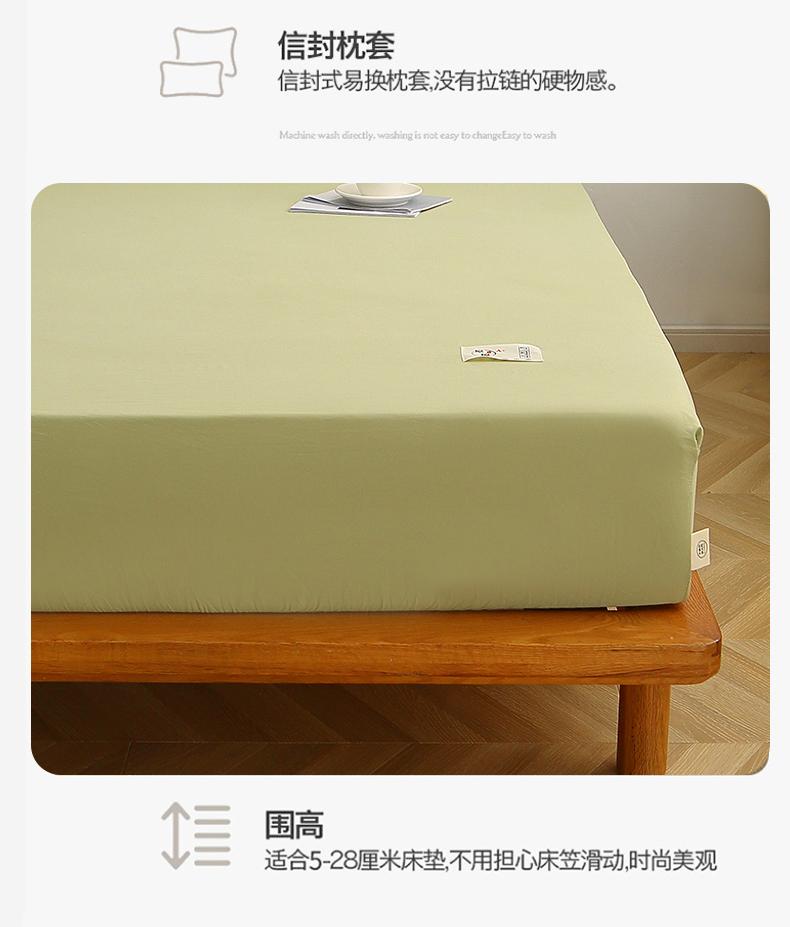 Gorro de Cama Explosivo de Color Sólido Transfronterizo de Una Pieza Color Liso Agradable para la Piel Cubre Cama Colchón Sábana Protector Antideslizante Juego de Cama de Tres Piezas