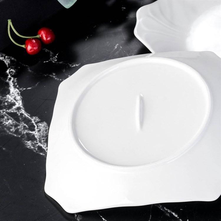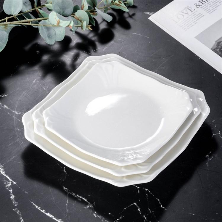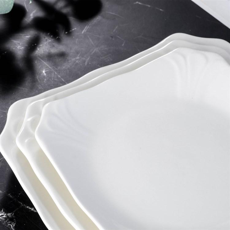 Plato Magnolia de cerámica blanca pura, vajilla de cocina para restaurante de hotel, plato para saltear, plato cuadrado, plato frío