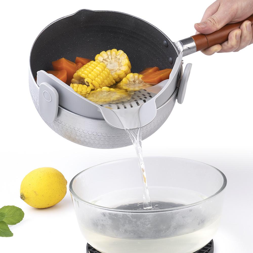 Cesta de Drenaje Multifuncional para Hogar Cocina Platos Deflector de Filtrado Lado Ancho Silicona Escurridor de Arroz Silicona Escurridor Lateral para Olla