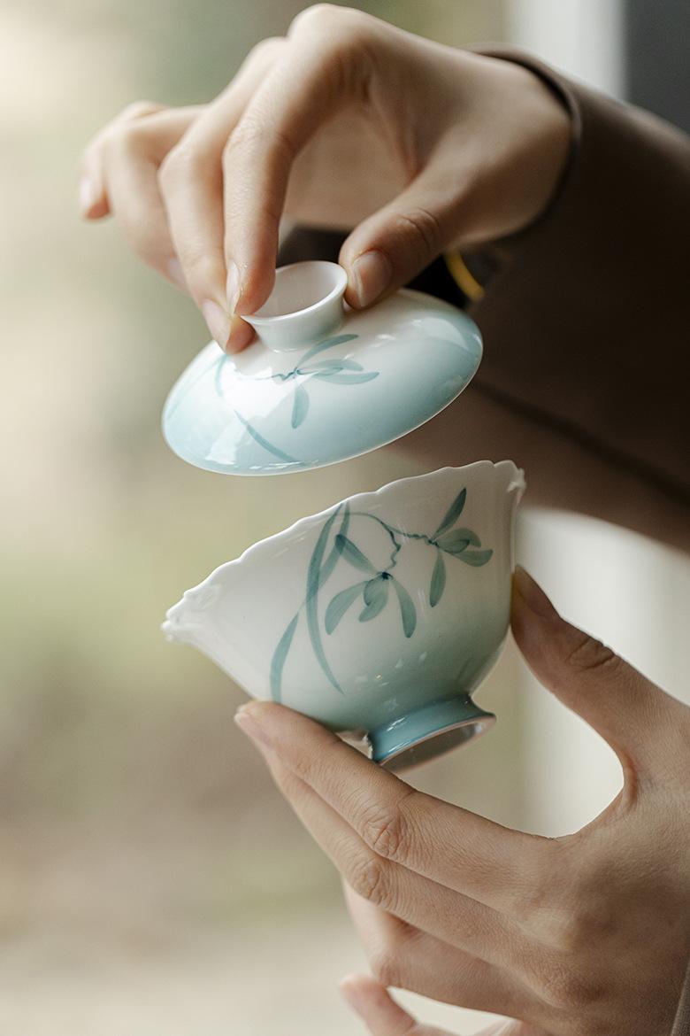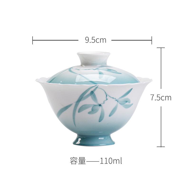 Mi Yan Gradiente Cuenco con Tapa de Orquídea Pintado a Mano Puro Cerámica Hecha a Mano Boca de Flor Tazón de Té Taza de Té Juego de Té Kung Fu Arte del Té Tazón de Té