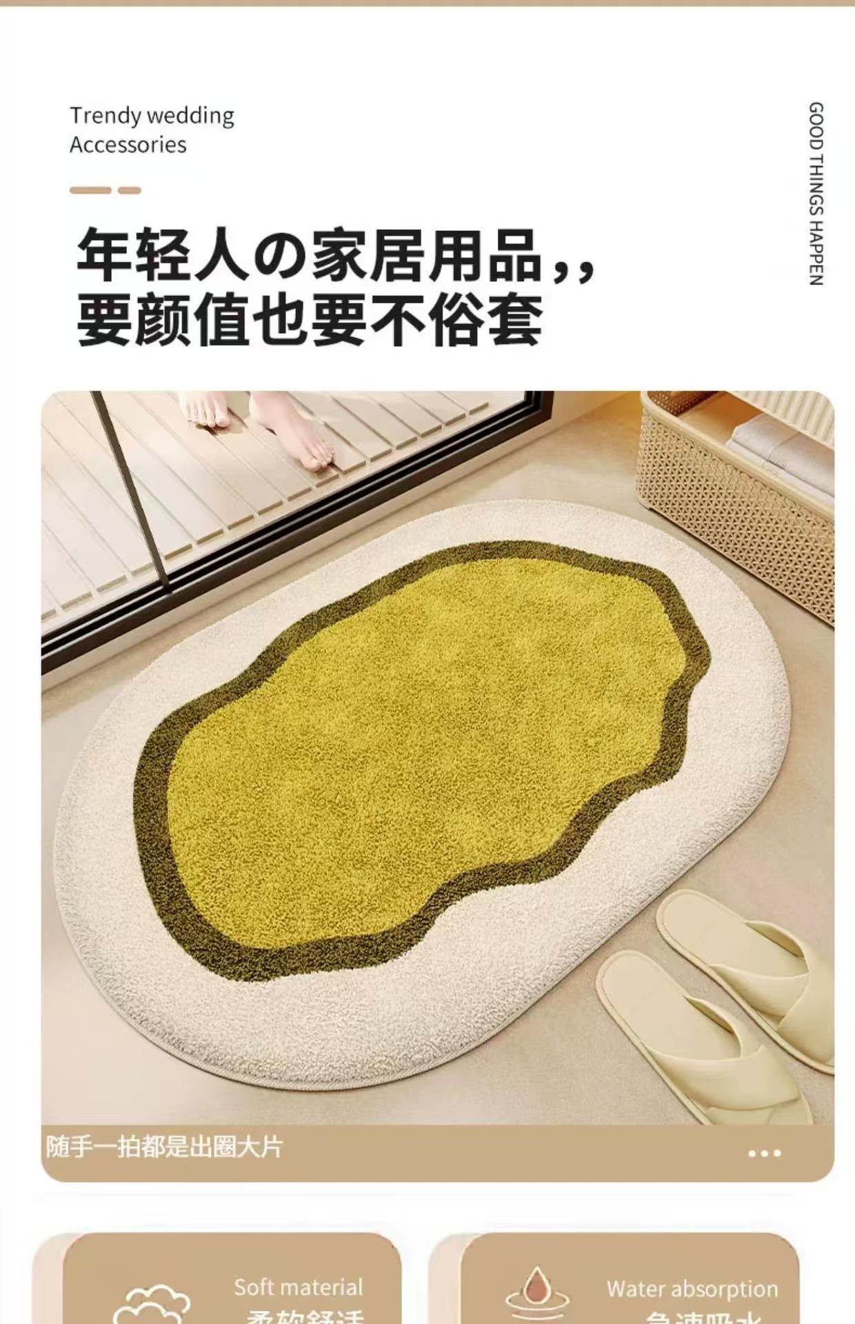 Alfombra moderna y sencilla de estilo crema para puerta de baño, absorbente, de cachemira, antideslizante, suave