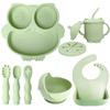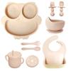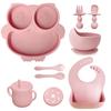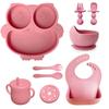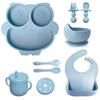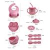 Set de vajilla de silicona para niños transfronterizo, tazón para comida de bebé, tenedor y cuchara de silicona, tazón de dibujos animados con divisiones, juego de ocho piezas