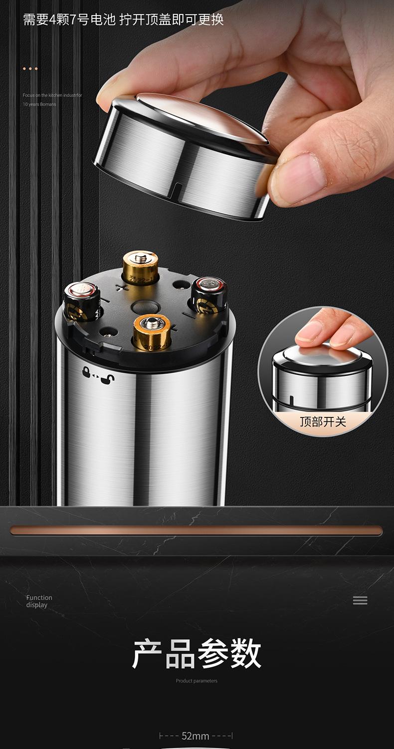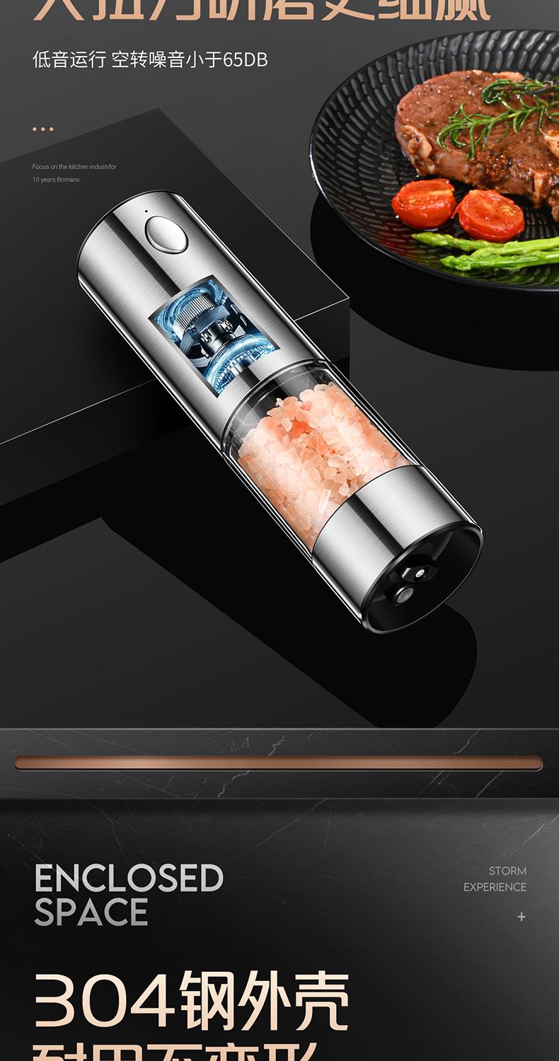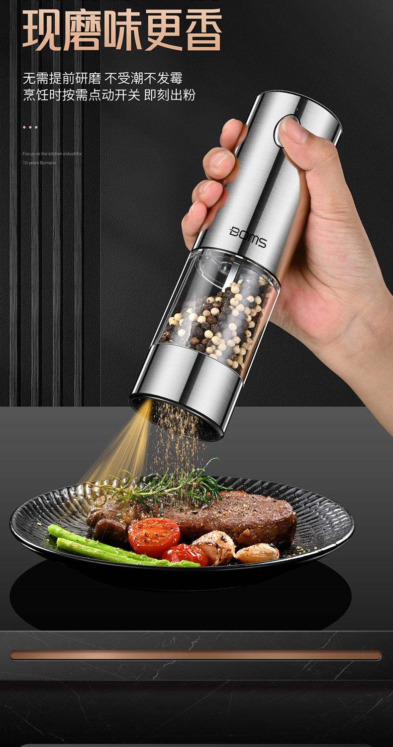 Molinillo de pimienta doméstico de acero inoxidable 304, molienda eléctrica, pimienta en polvo, pimienta negra, cocina, pimienta, botella para condimento