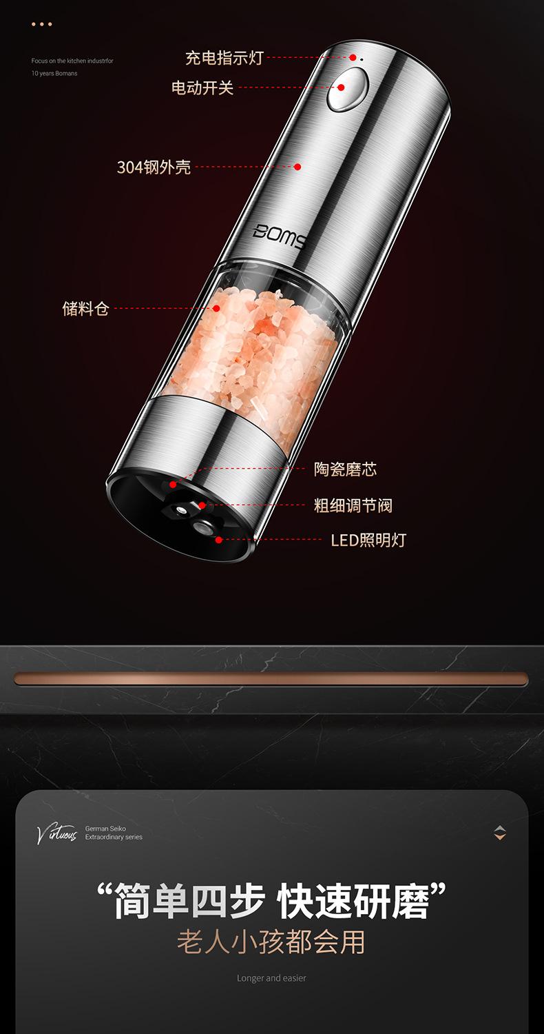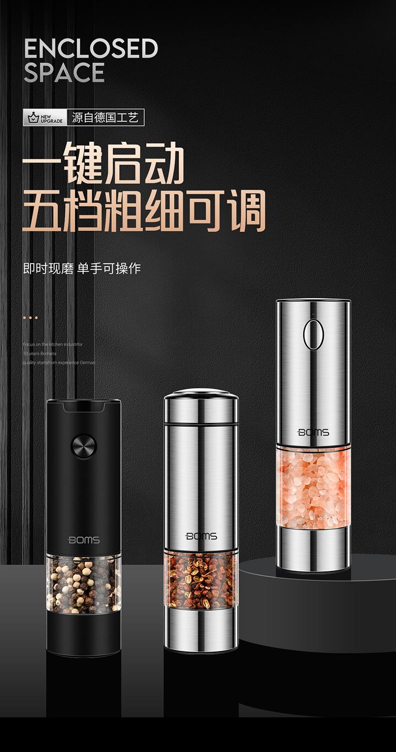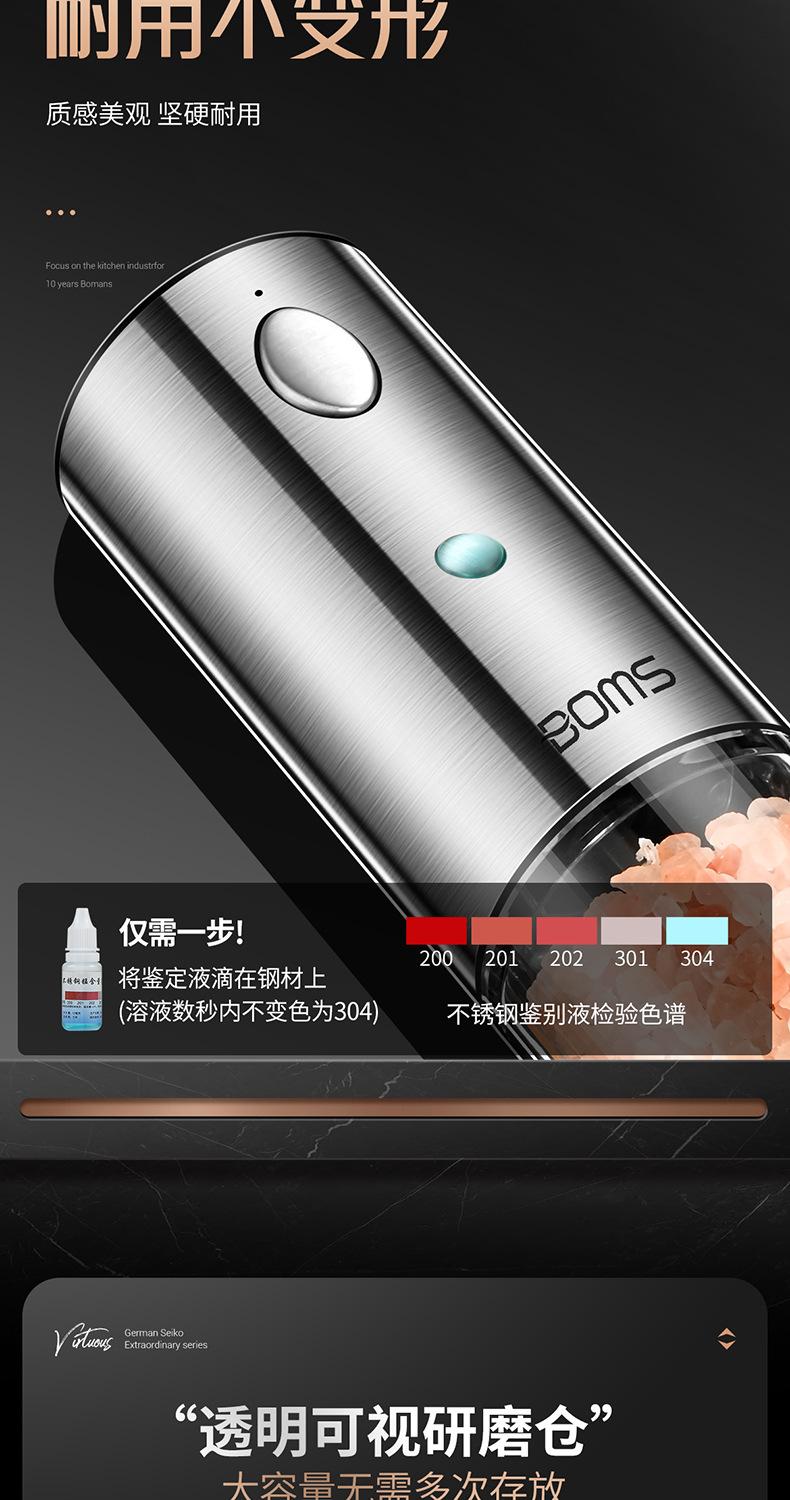 Molinillo de pimienta doméstico de acero inoxidable 304, molienda eléctrica, pimienta en polvo, pimienta negra, cocina, pimienta, botella para condimento