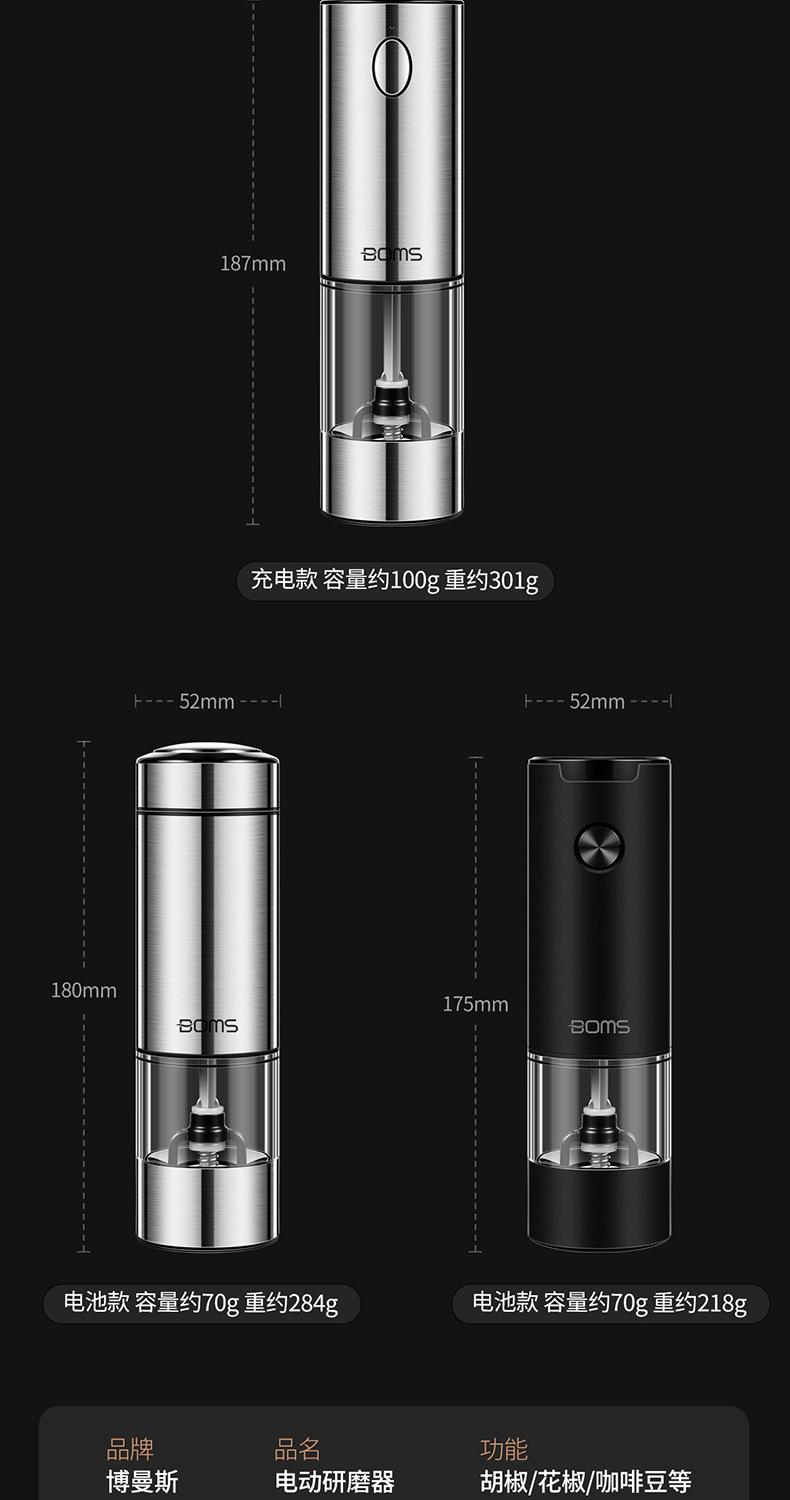 [upgraded rechargeable model] 304 electric grinder, [battery model] 304 electric grinder, [battery model] electric grinder: black
