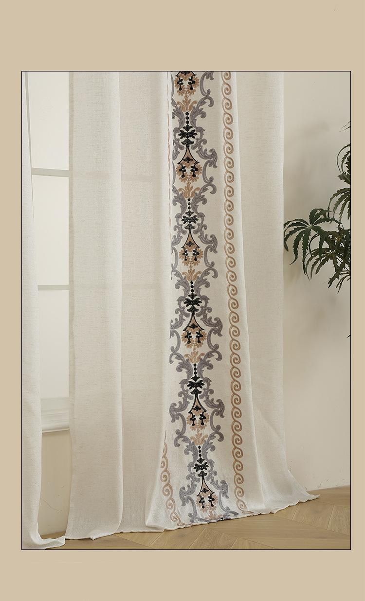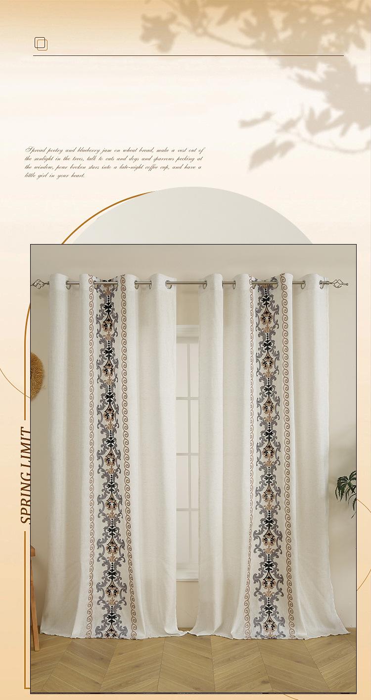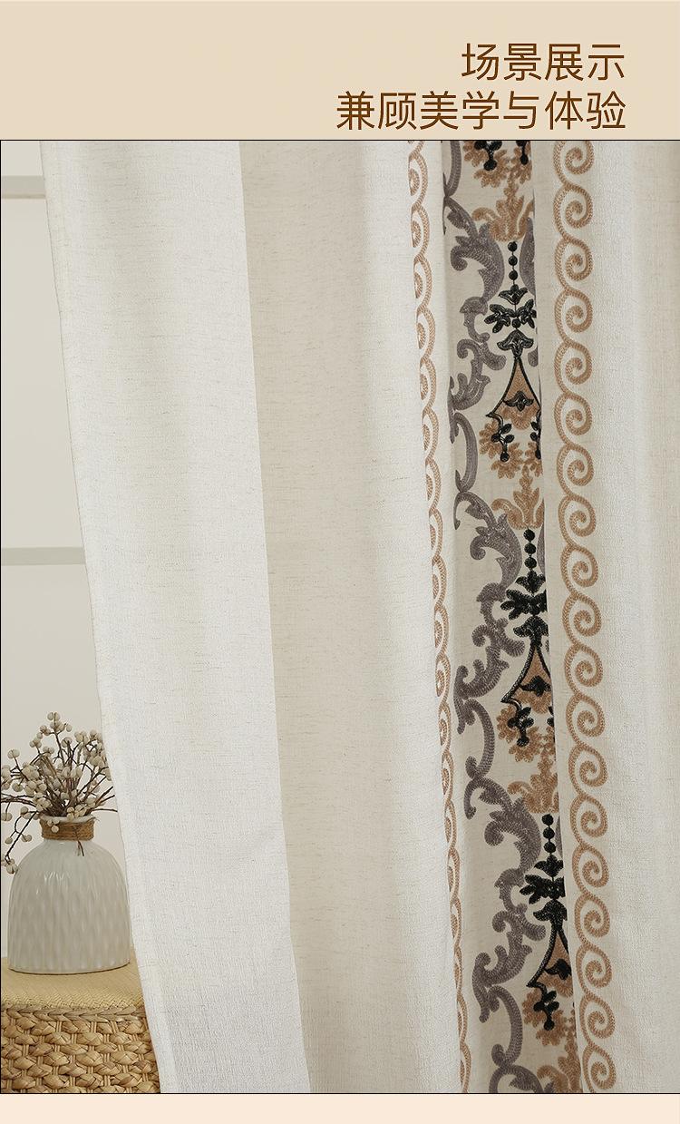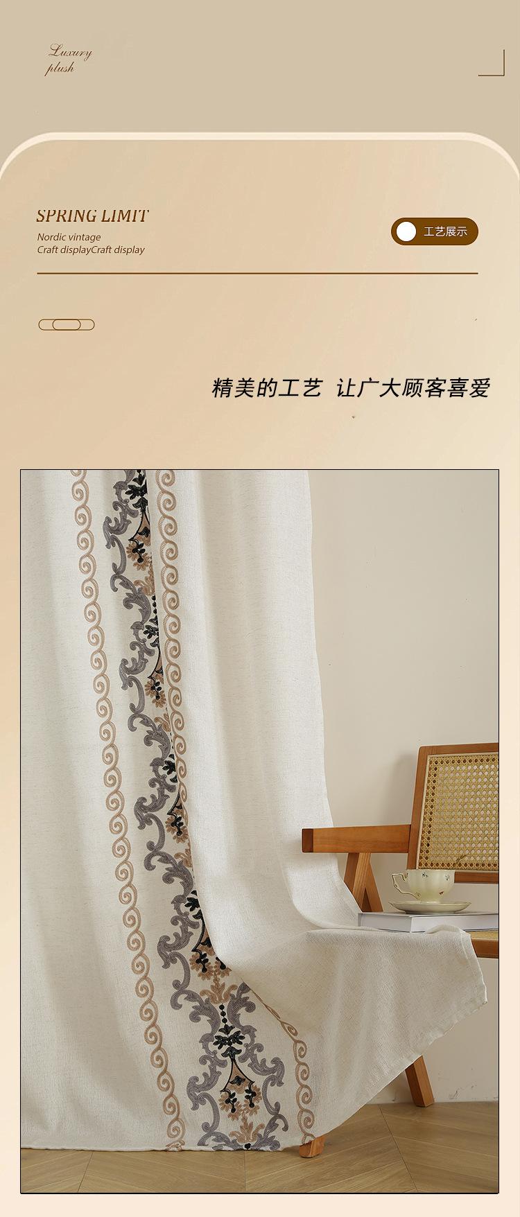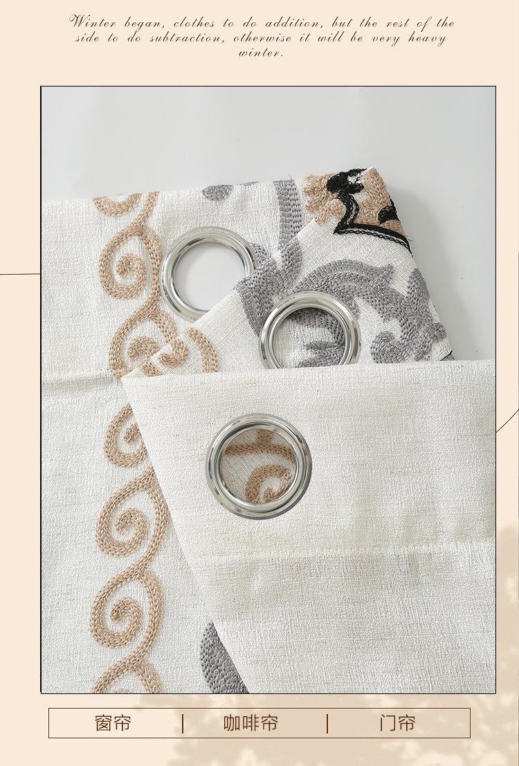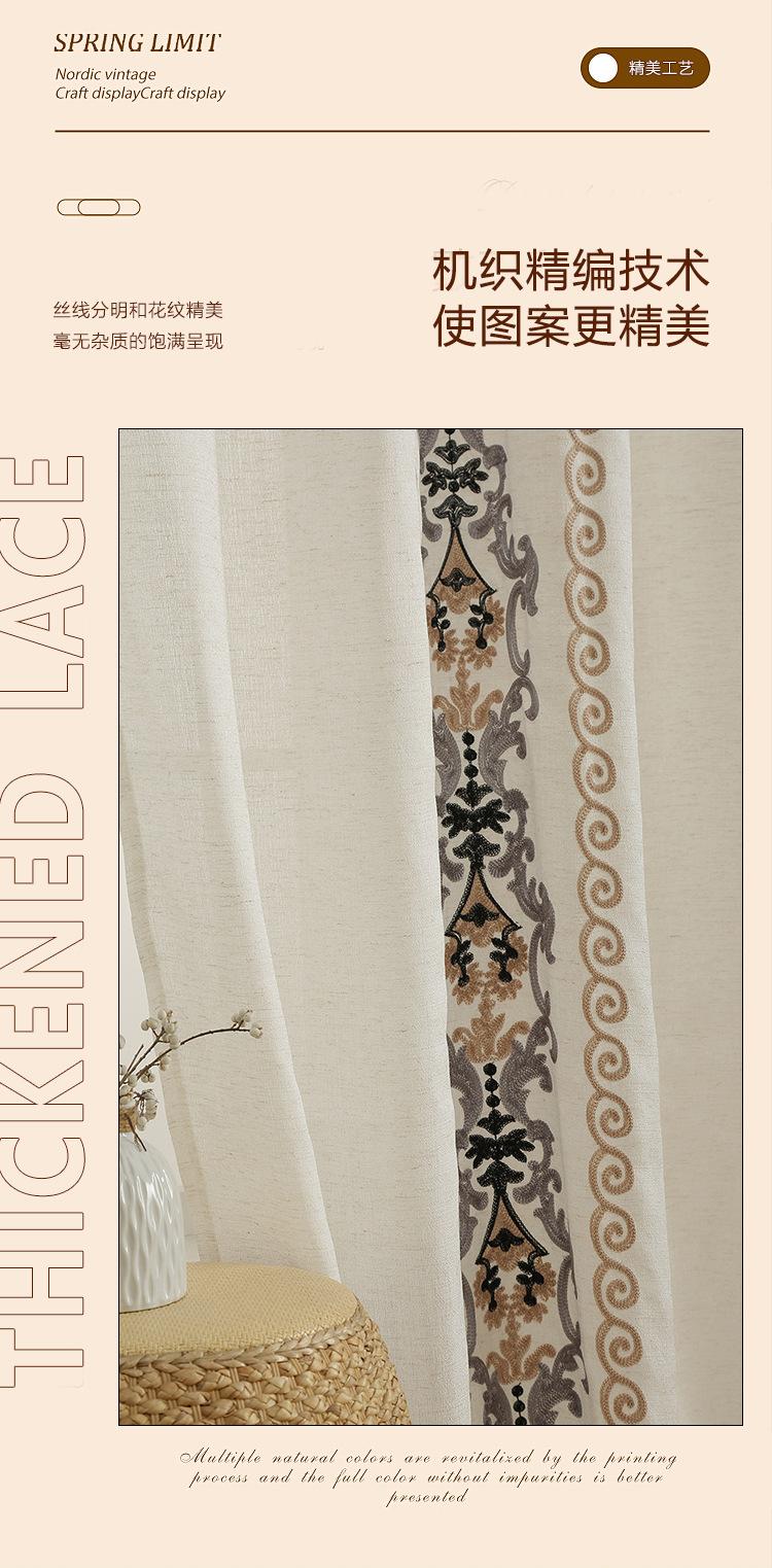 Cortinas Nuevas de Lino Bordadas con Aguja Estilo Americano Dormitorio Sala de Estar Floral a Cuadros Anillos de Hierro Fabricante Venta al por Mayor Productos Terminados
