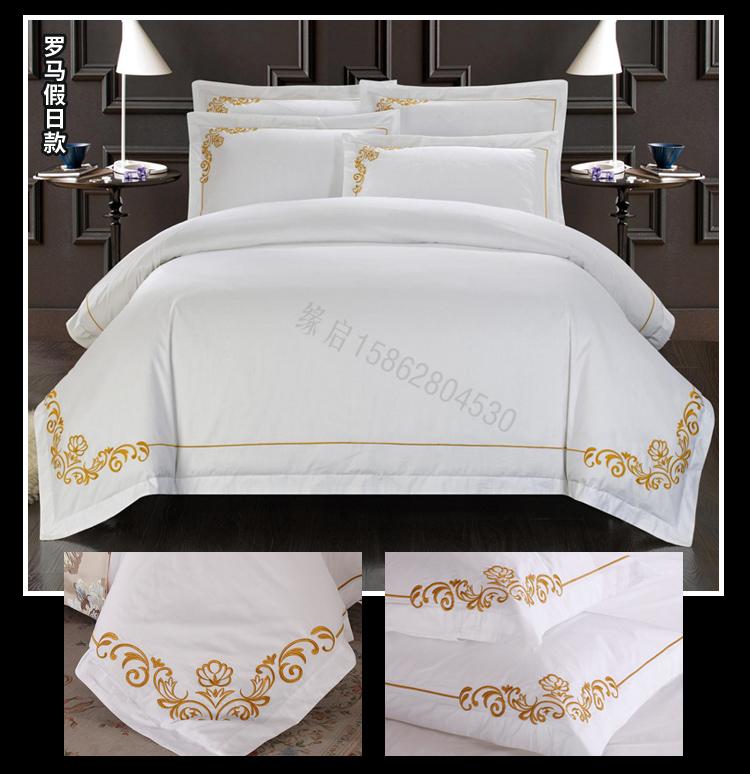 Juego de ropa de cama de hotel de cuatro piezas, tela especial, sábana de algodón puro, funda de edredón, ropa de cama de hotel de cinco estrellas para familias