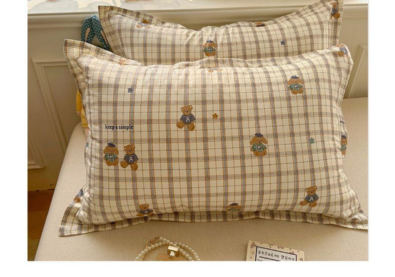 Plaid bear [cotton envelope pillowcases/pair]