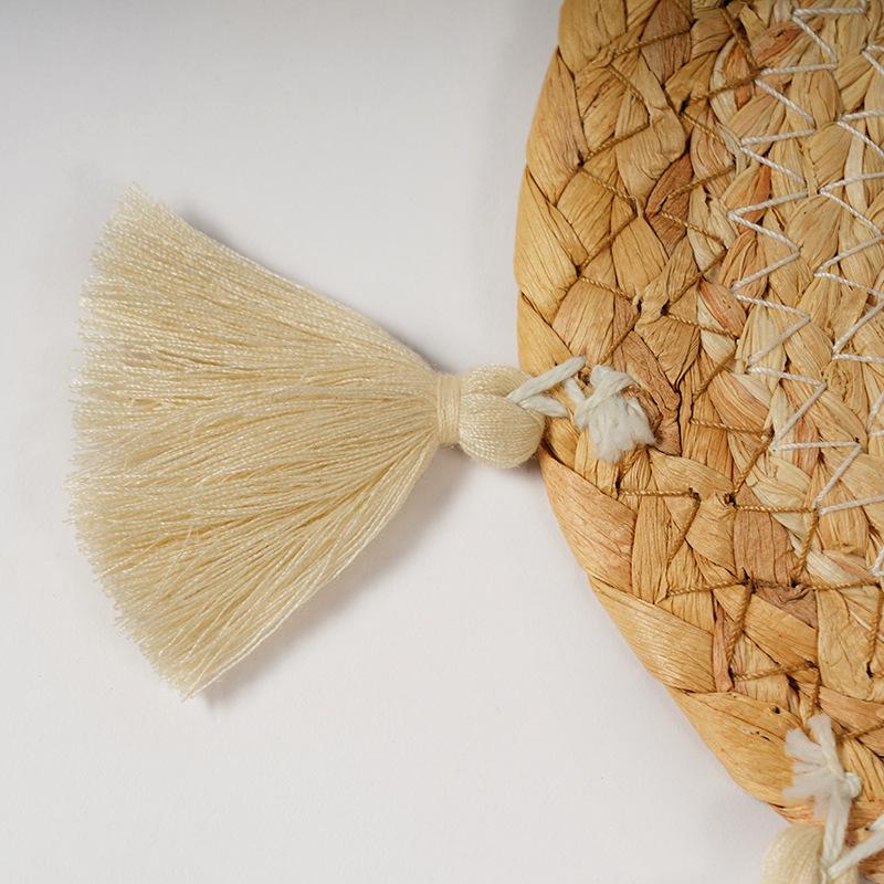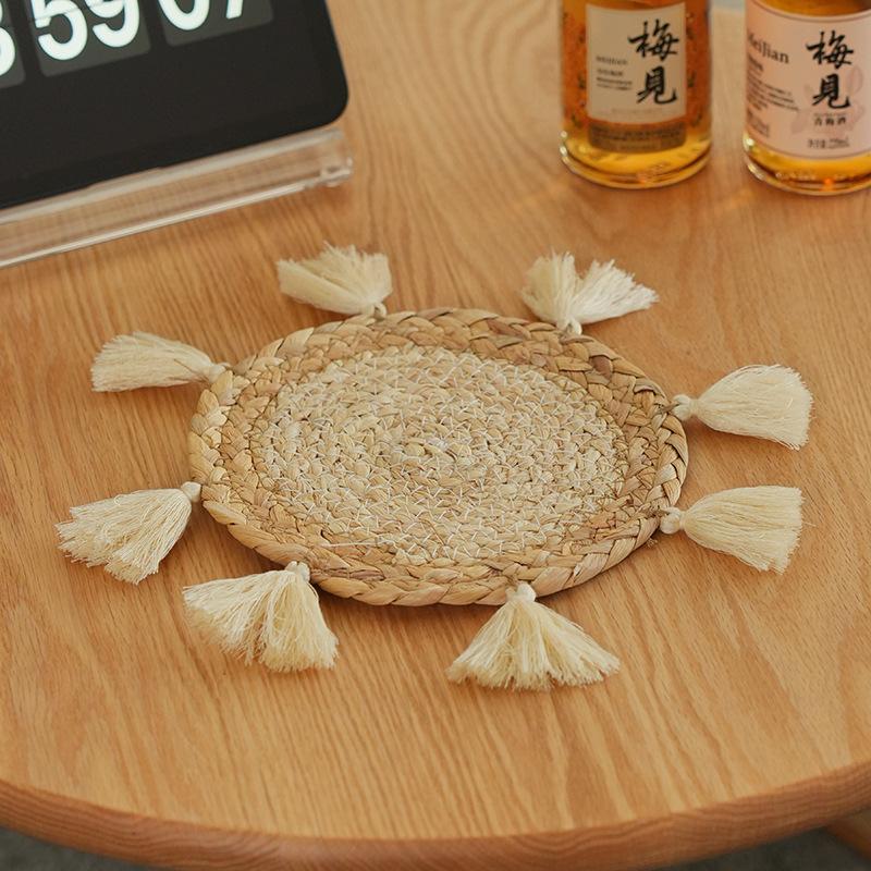 Compra Posavasos de paja de jacinto de agua de estilo nórdico transfronterizo, tejido a mano con borlas, tapete de café, mantel individual tejido para cocina y hogar al por mayor en Joom.pro