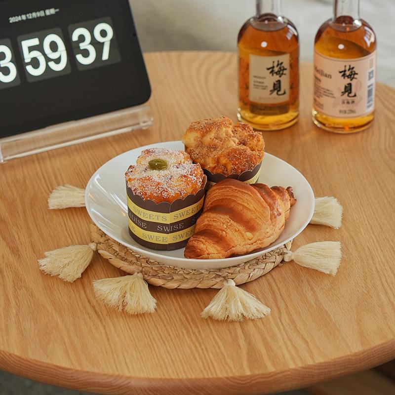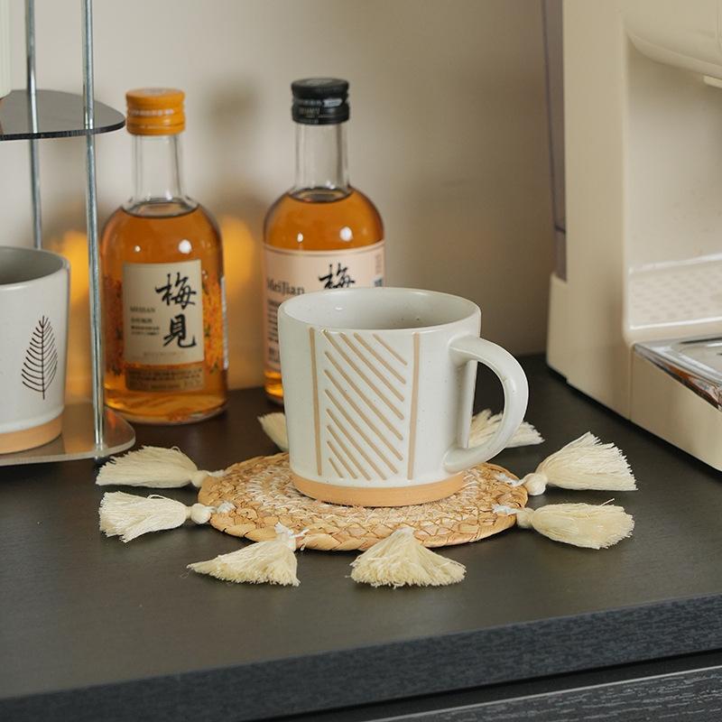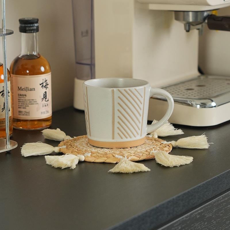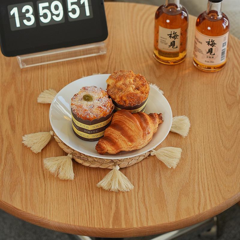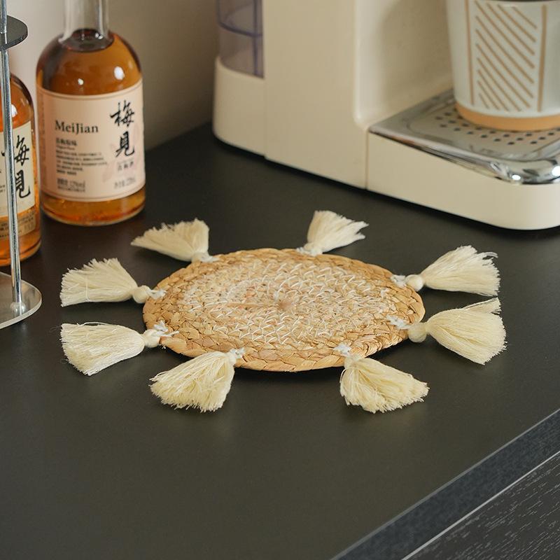 Posavasos de paja de jacinto de agua de estilo nórdico transfronterizo, tejido a mano con borlas, tapete de café, mantel individual tejido para cocina y hogar