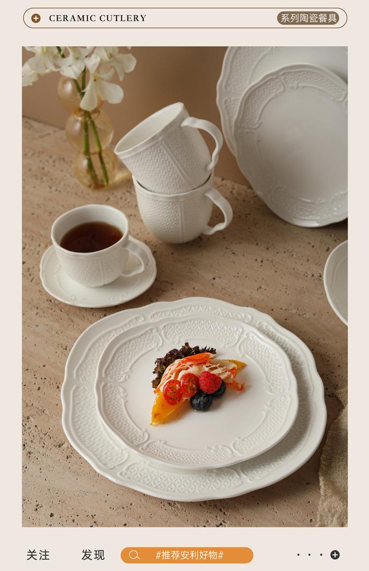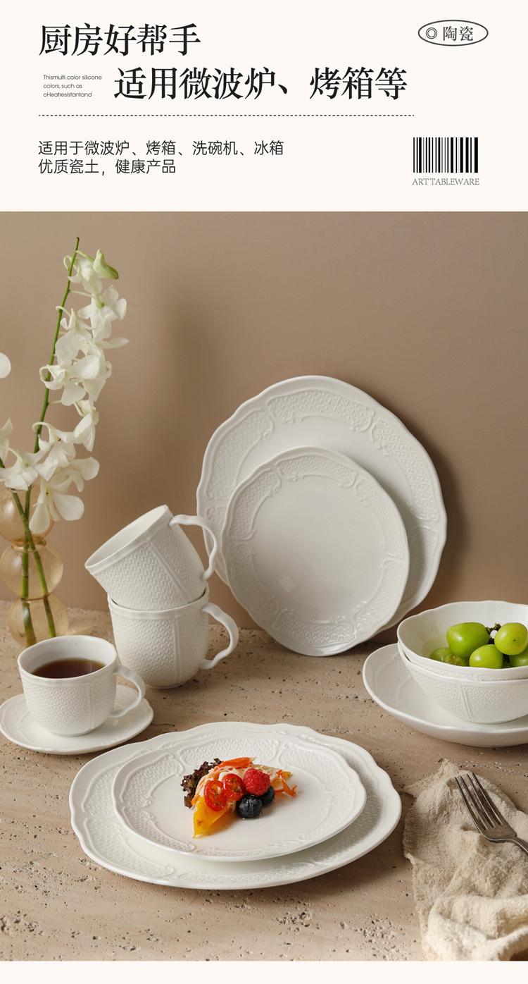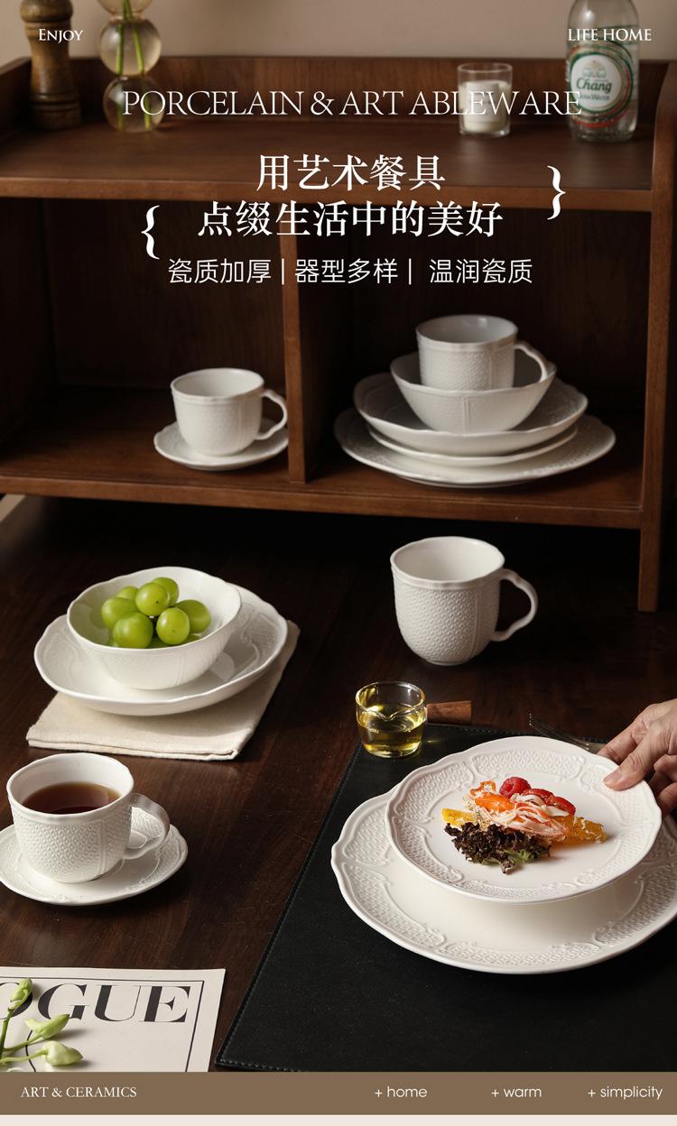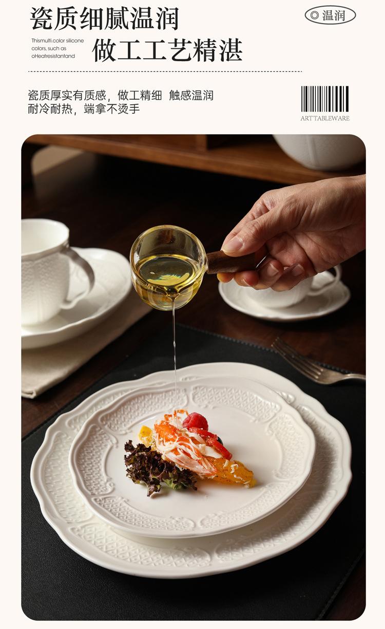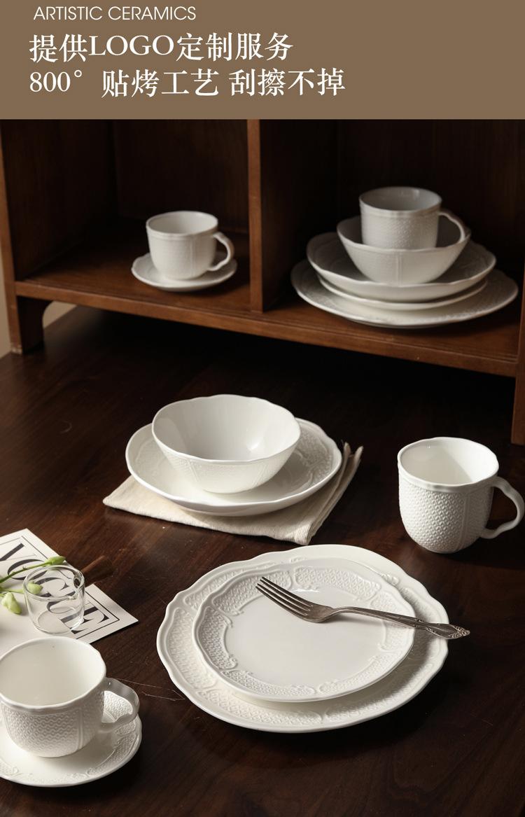 Juego de vajilla en relieve de alto valor, platos de cerámica, hotel, restaurante, tazón para fideos, tazón para ensalada, plato hondo, plato para comida occidental francesa