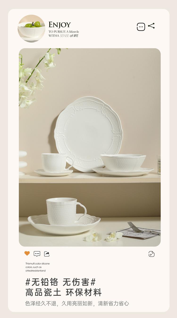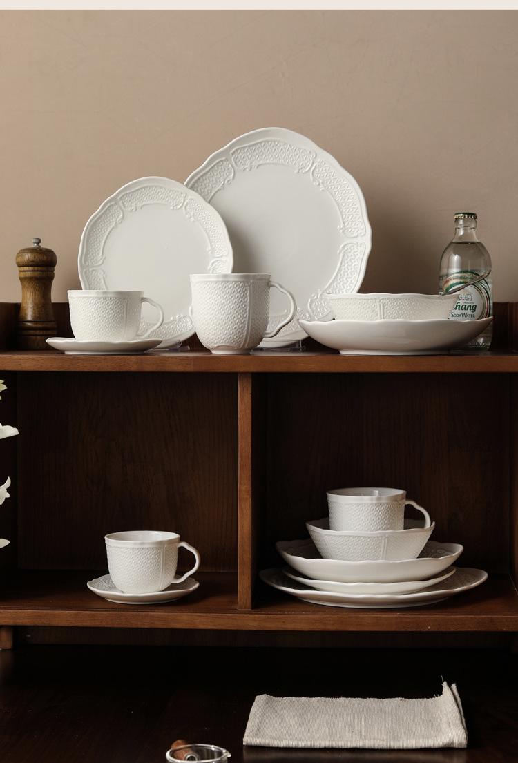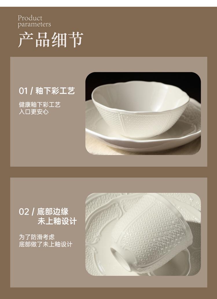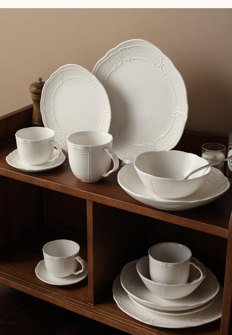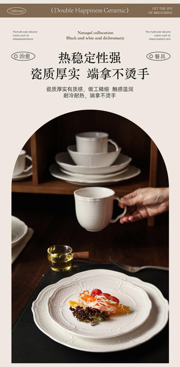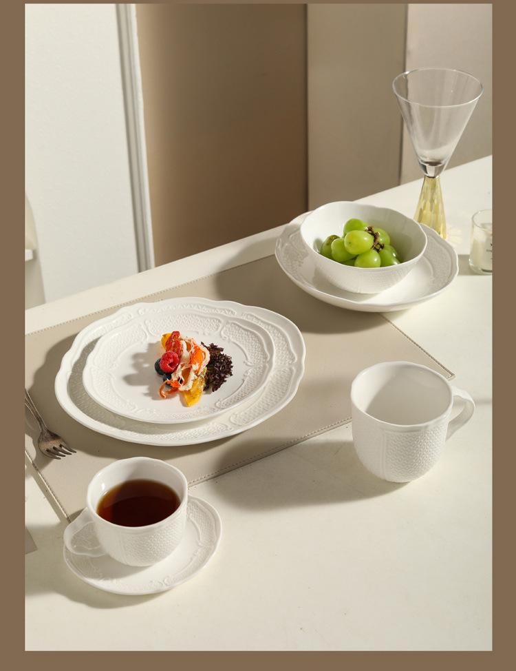 Juego de vajilla en relieve de alto valor, platos de cerámica, hotel, restaurante, tazón para fideos, tazón para ensalada, plato hondo, plato para comida occidental francesa