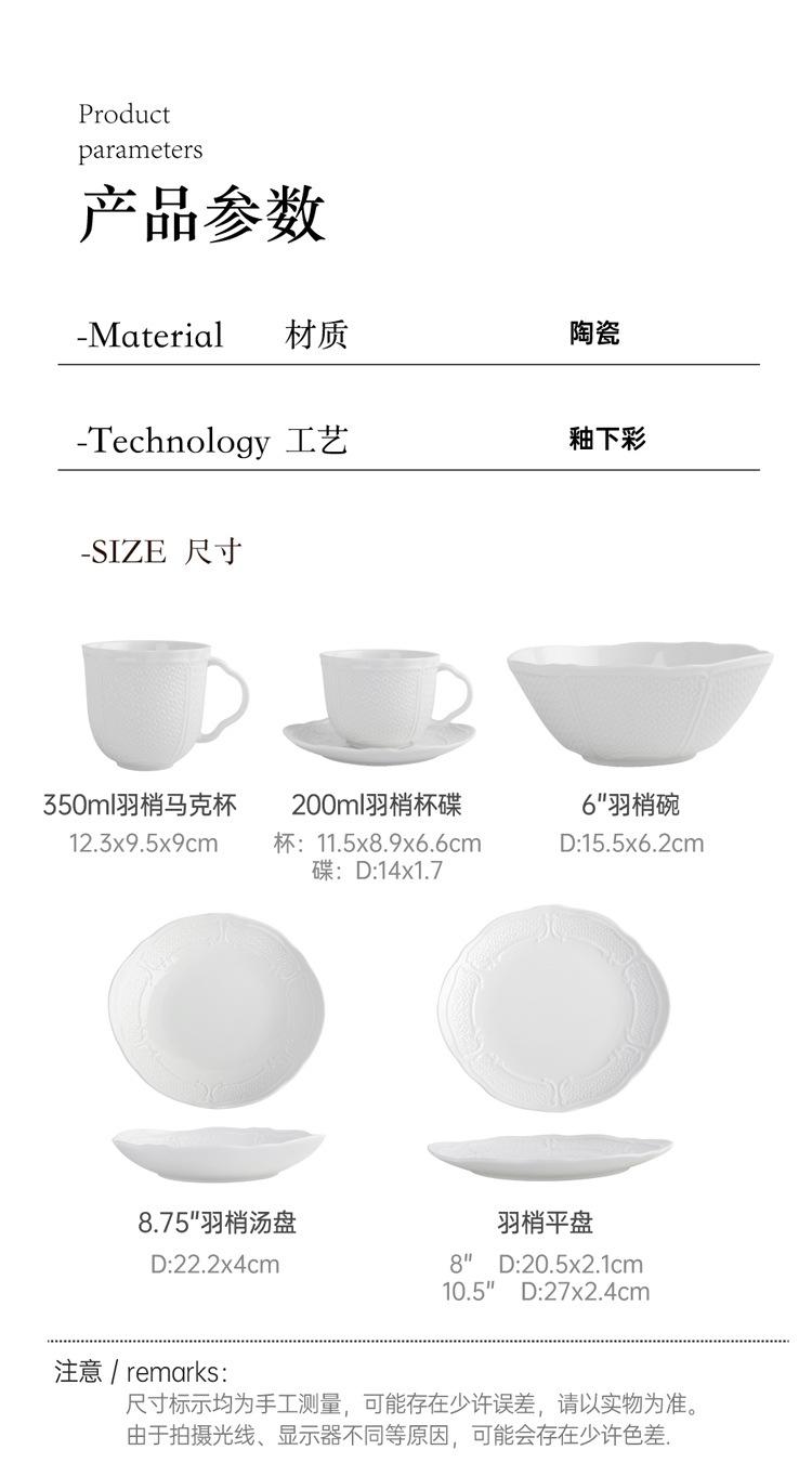 6" feather bowl (minimum order of 500 pieces per style), 8" feather flat plate (minimum order of 500 pieces pe...