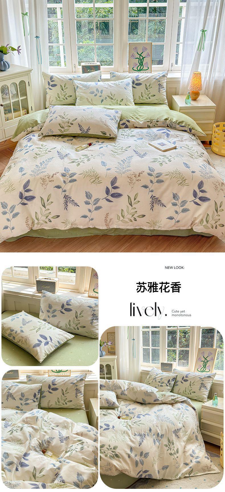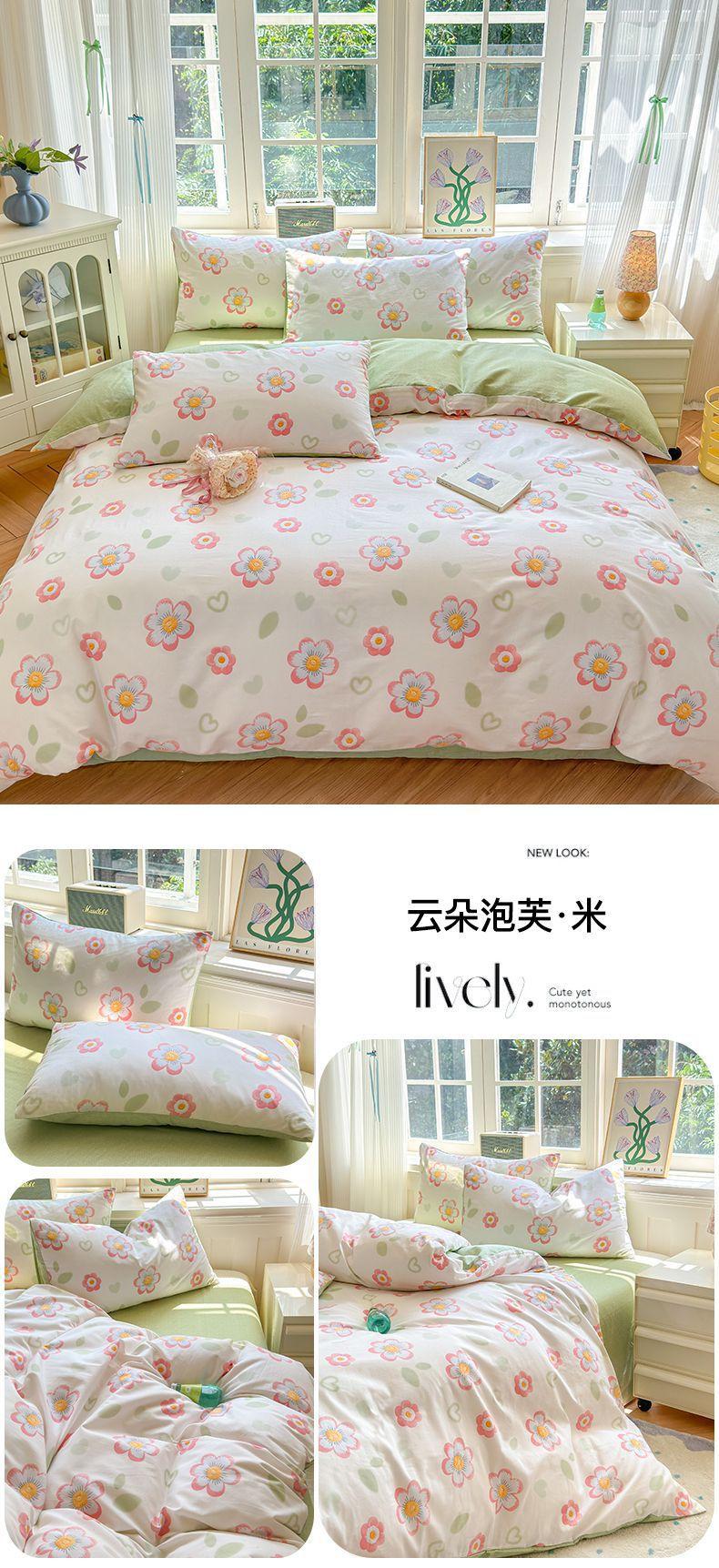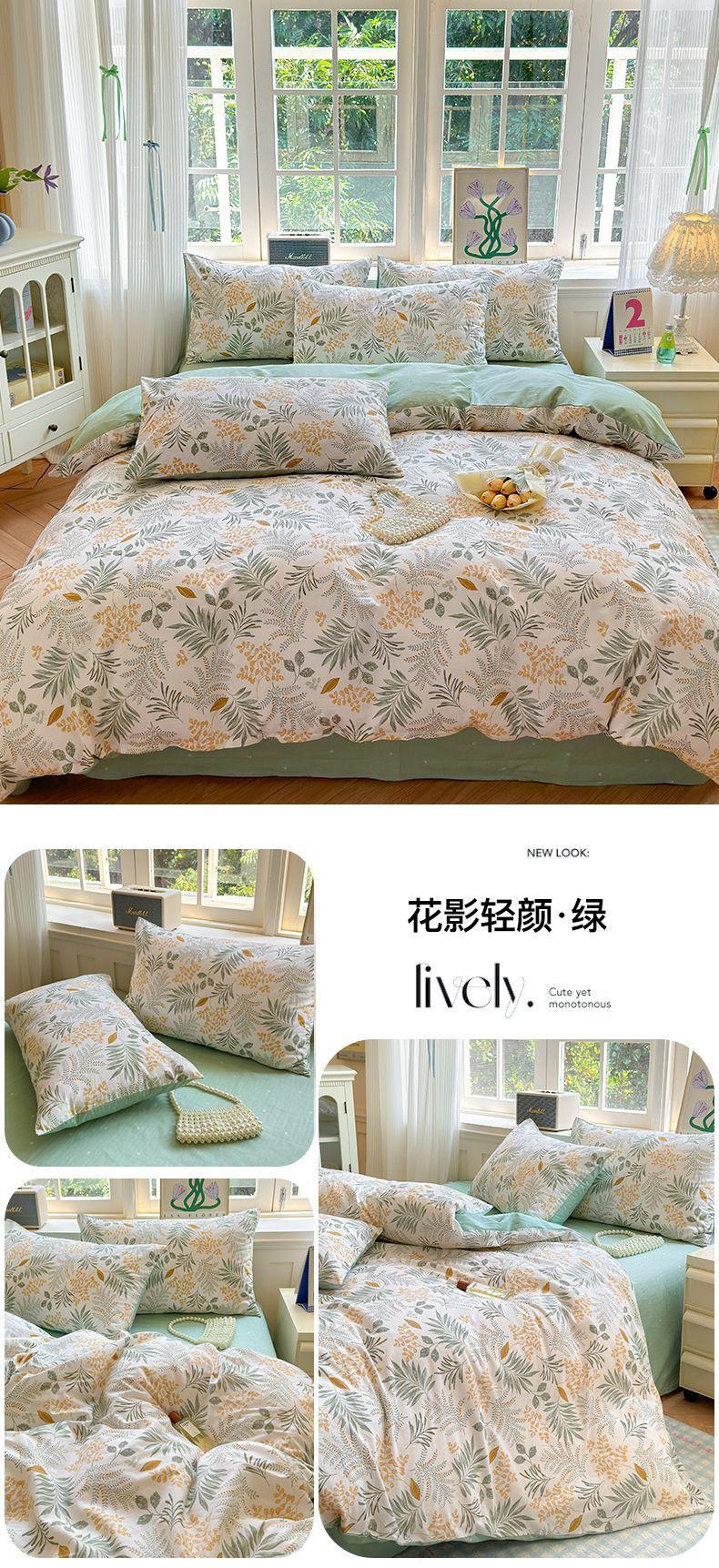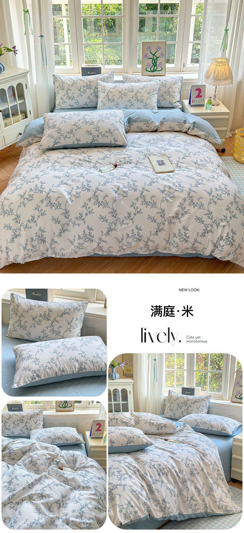 Funda de edredón de algodón fresco pequeño, de una sola pieza, funda de edredón de algodón de primavera, conjunto de tres piezas, funda de edredón individual para dormitorio, conjunto de tres piezas, Nantong
