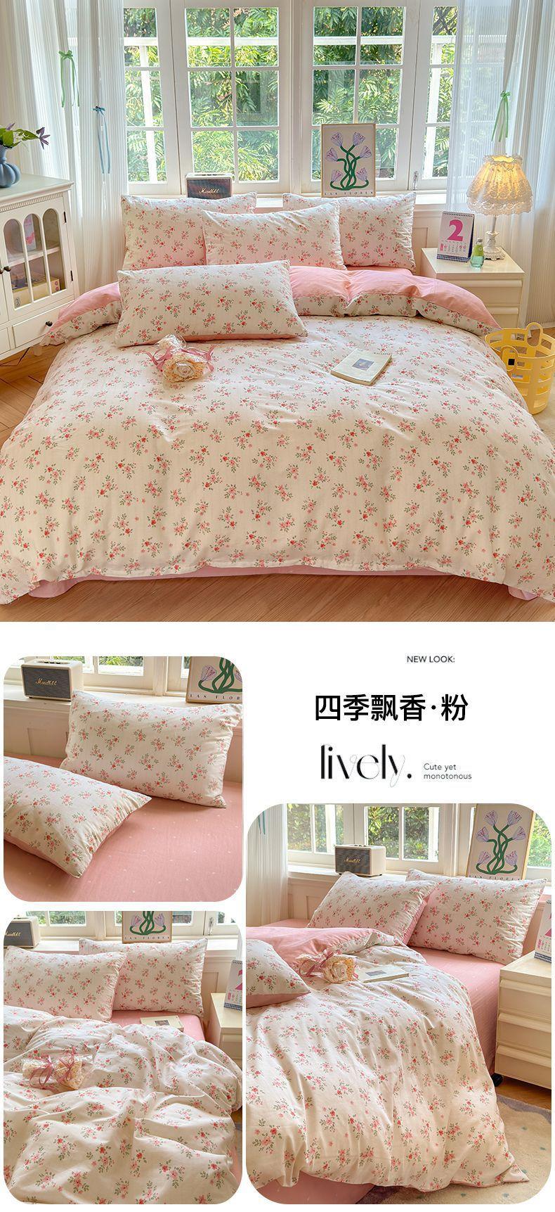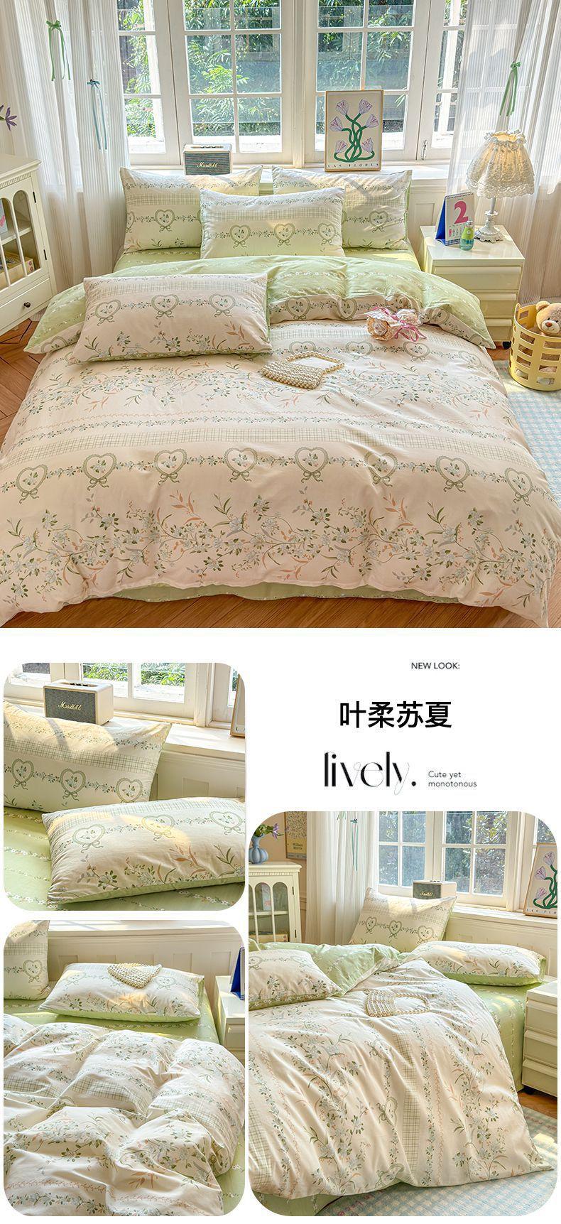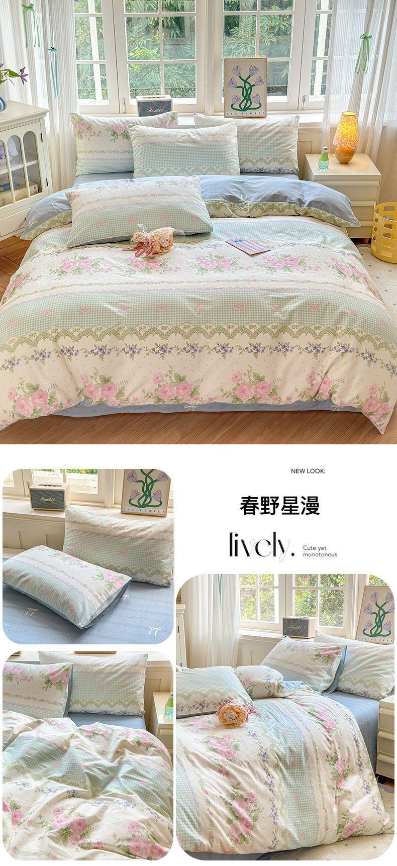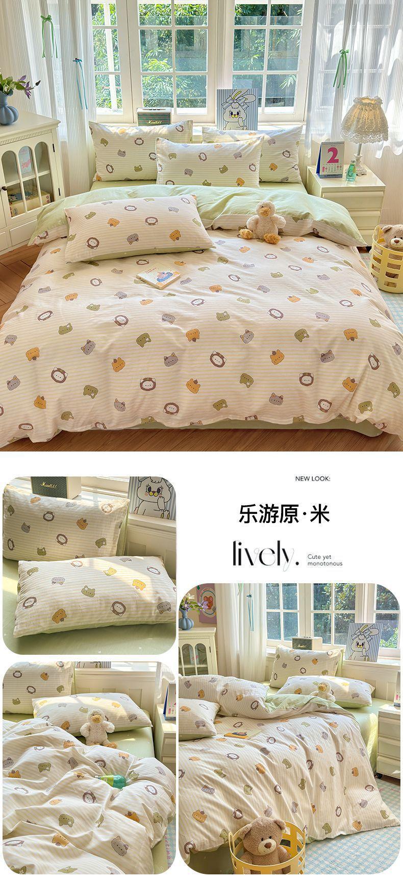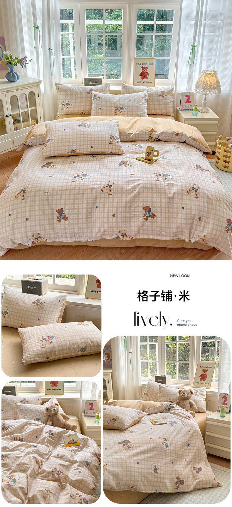 Funda de edredón de algodón fresco pequeño, de una sola pieza, funda de edredón de algodón de primavera, conjunto de tres piezas, funda de edredón individual para dormitorio, conjunto de tres piezas, Nantong