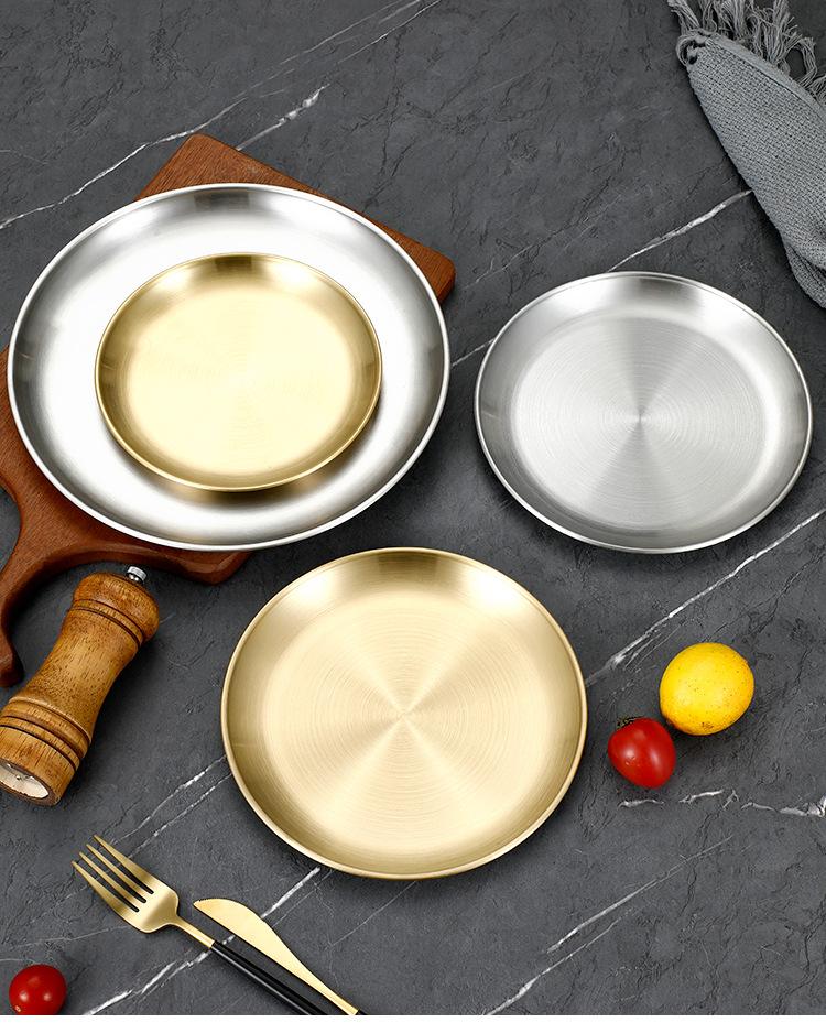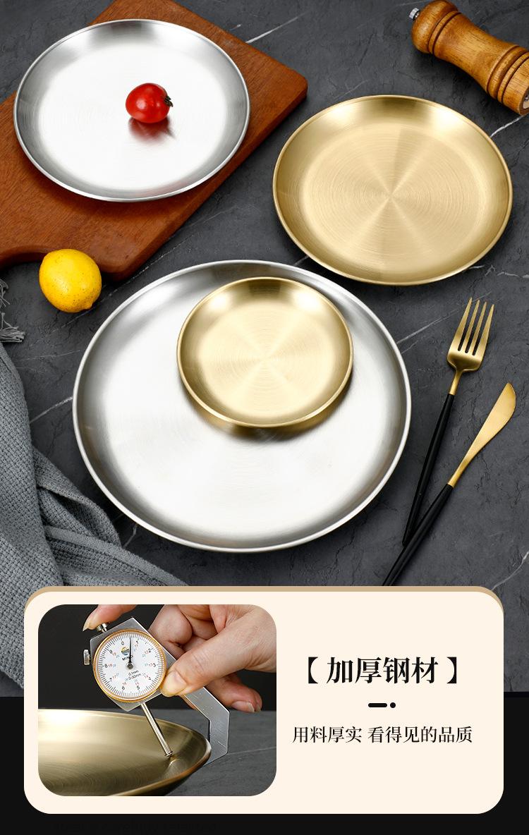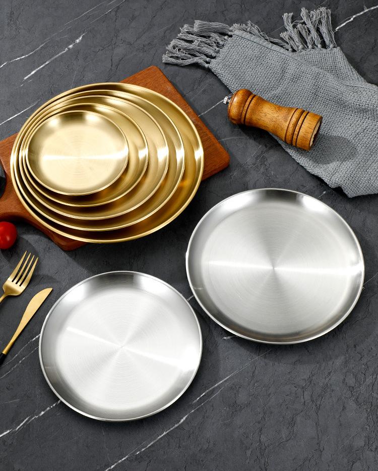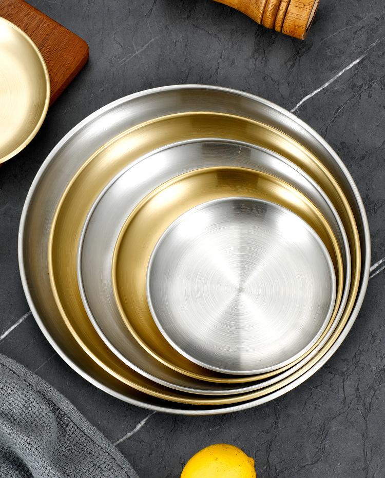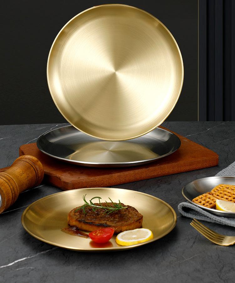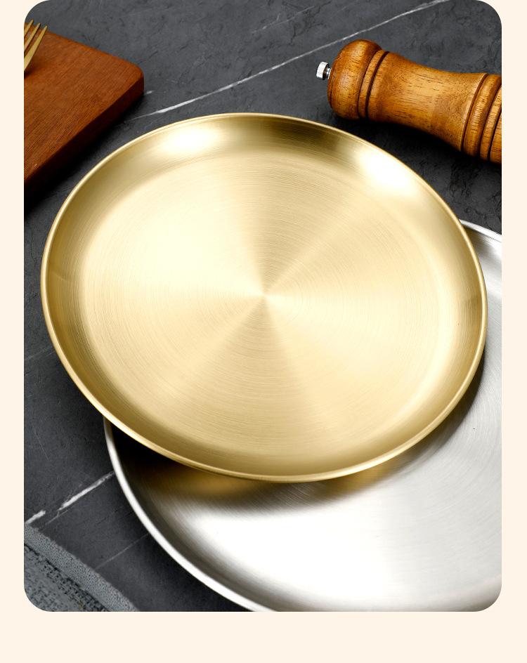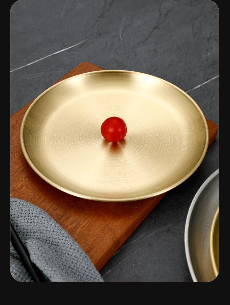 Plato de bandeja de pastel de fruta de barbacoa dorada con disco engrosado de acero inoxidable al estilo coreano, plato de hueso, plato de barbacoa