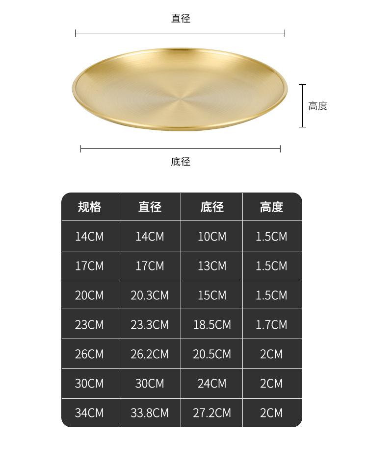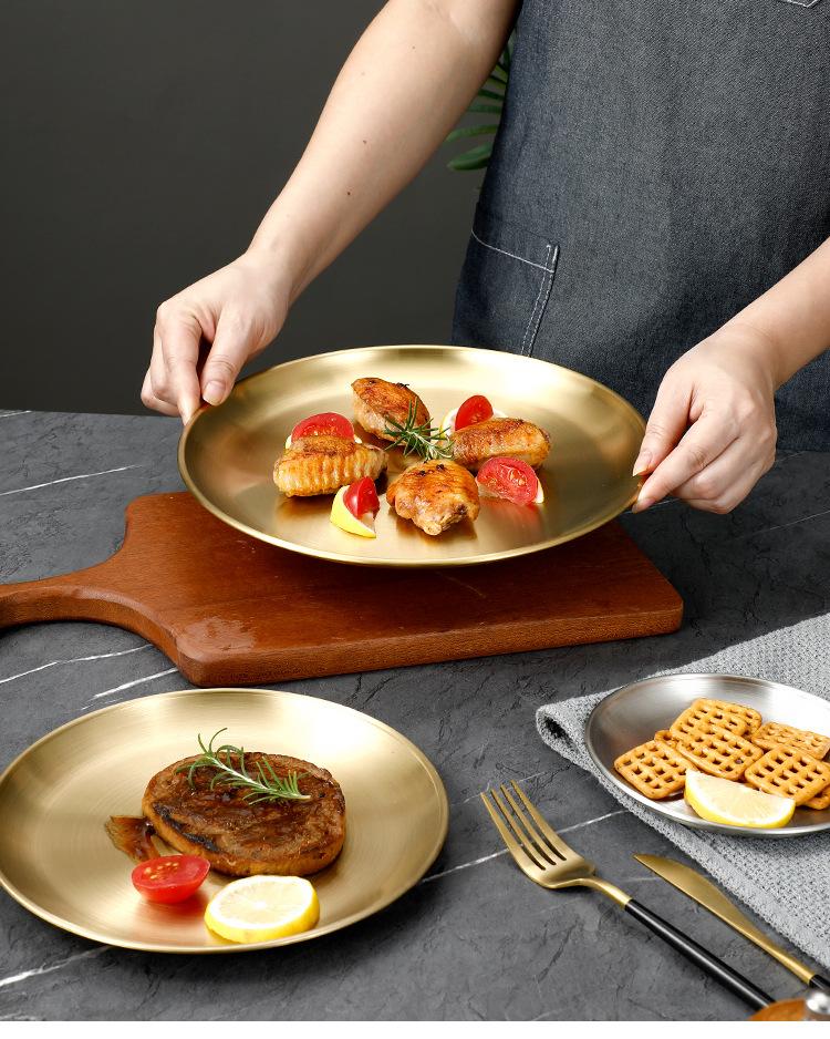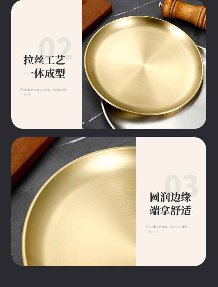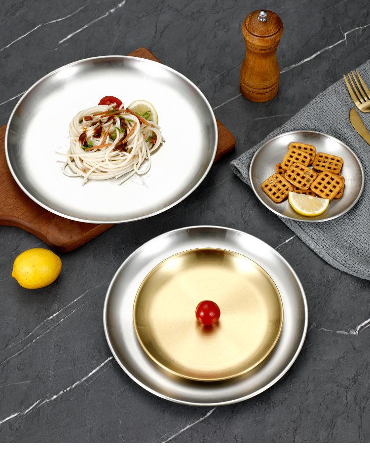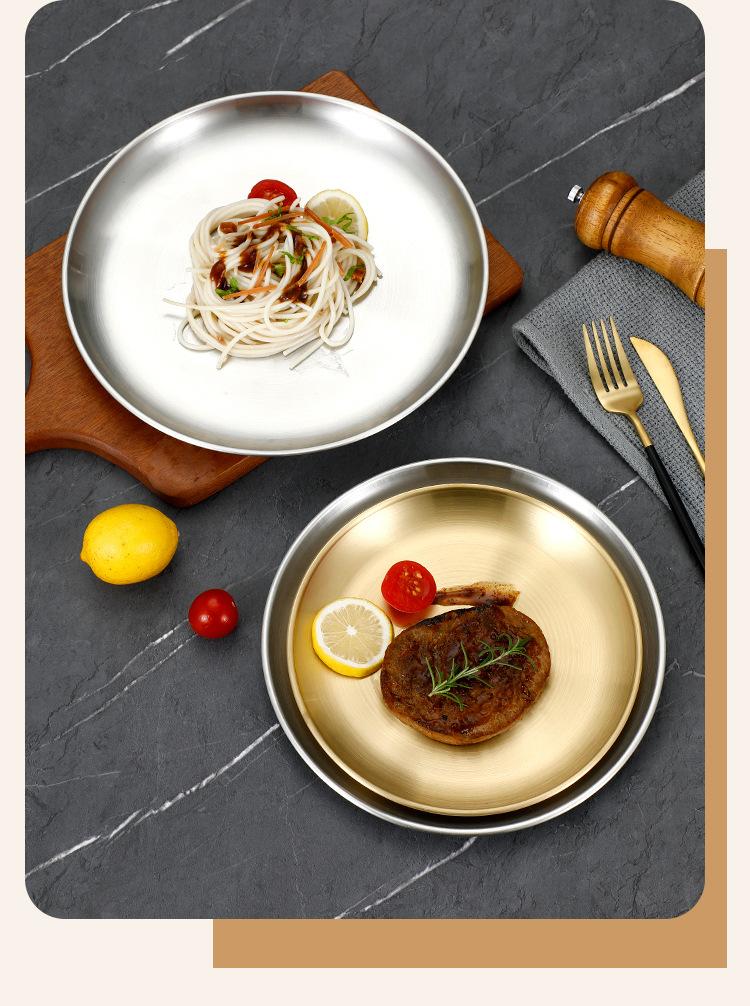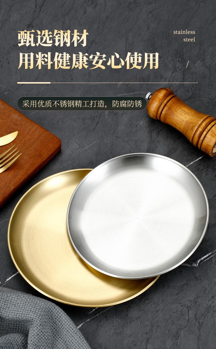 Plato de bandeja de pastel de fruta de barbacoa dorada con disco engrosado de acero inoxidable al estilo coreano, plato de hueso, plato de barbacoa
