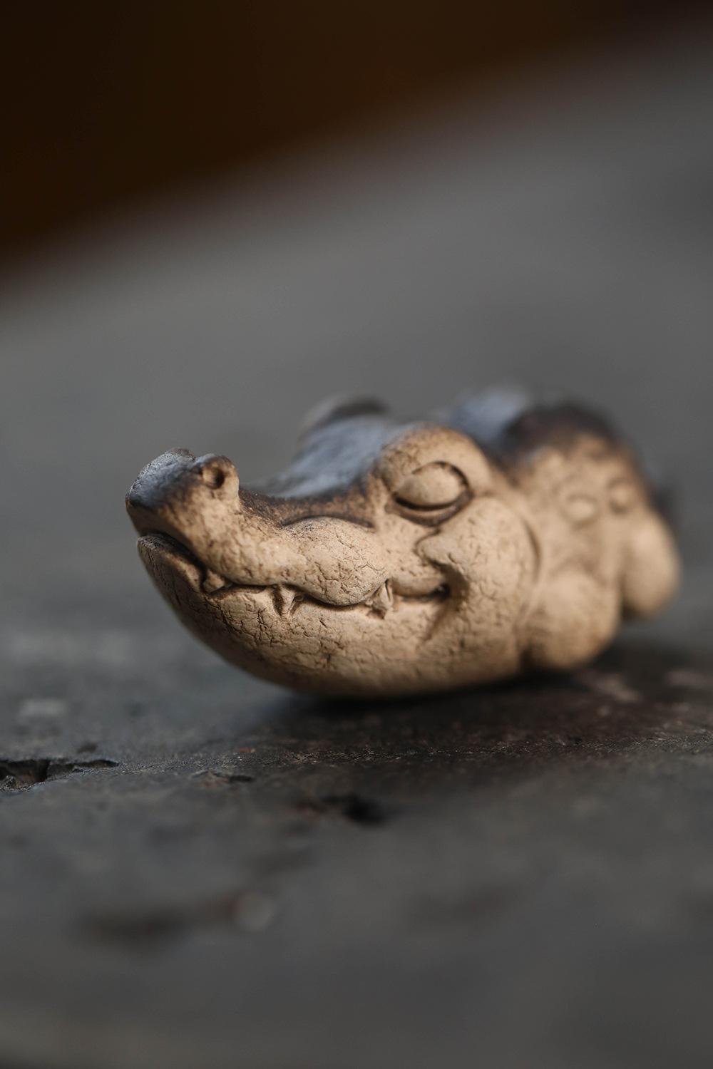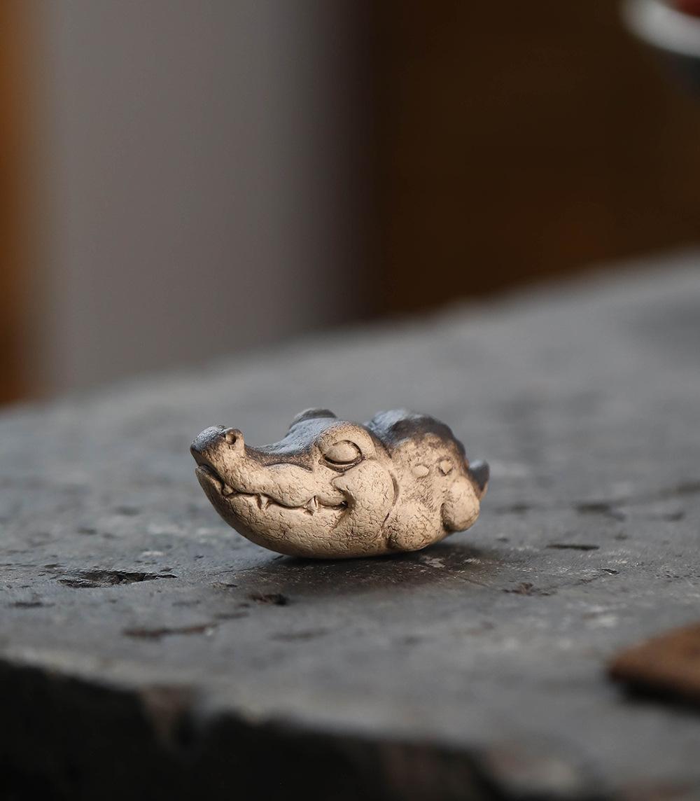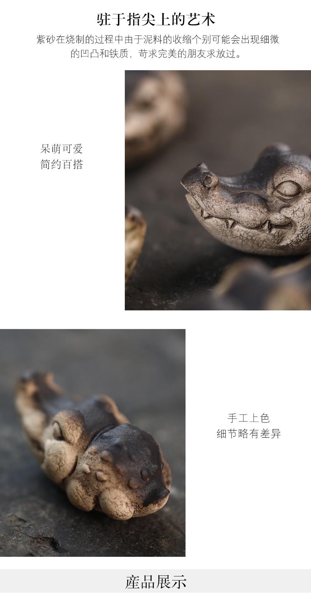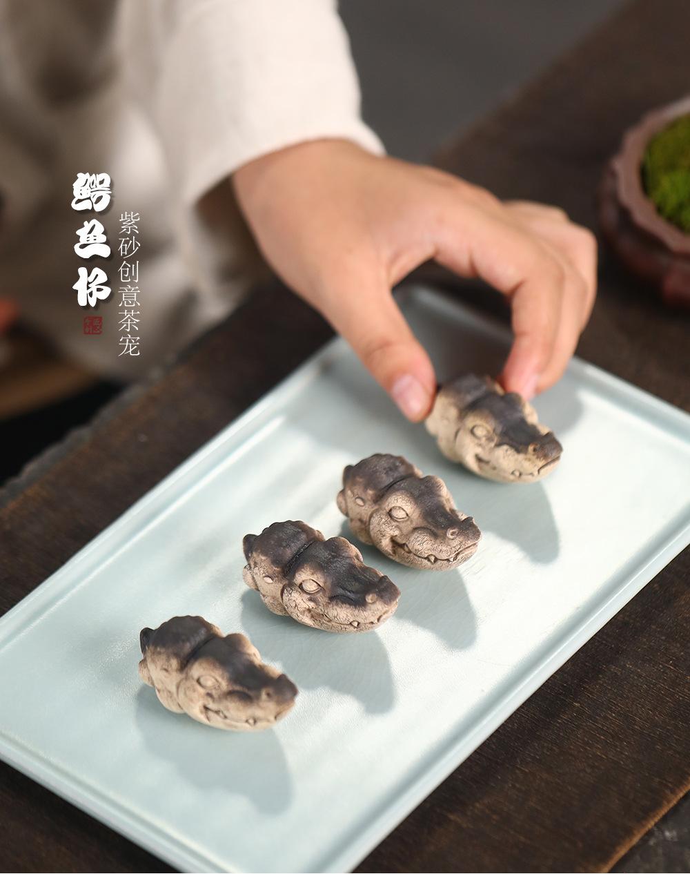 Cocodrilo mascota de té de arena púrpura de Yixing, pequeños adornos hechos a mano, juego de té nutritivo para la ceremonia del té, accesorios para la mesa de té, juego de té, cocodrilo financiero
