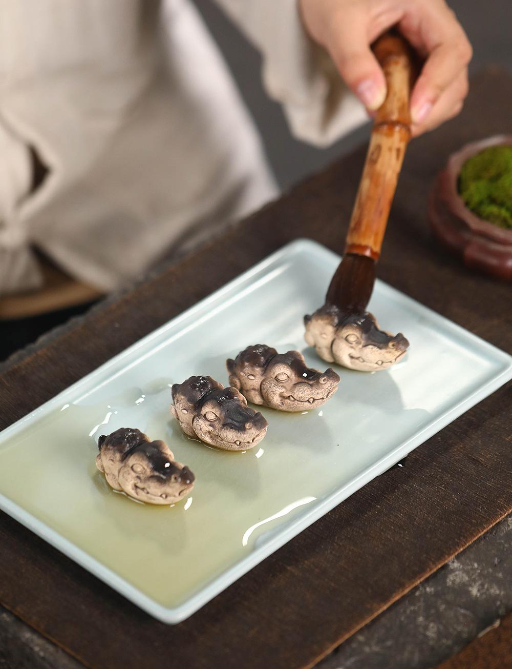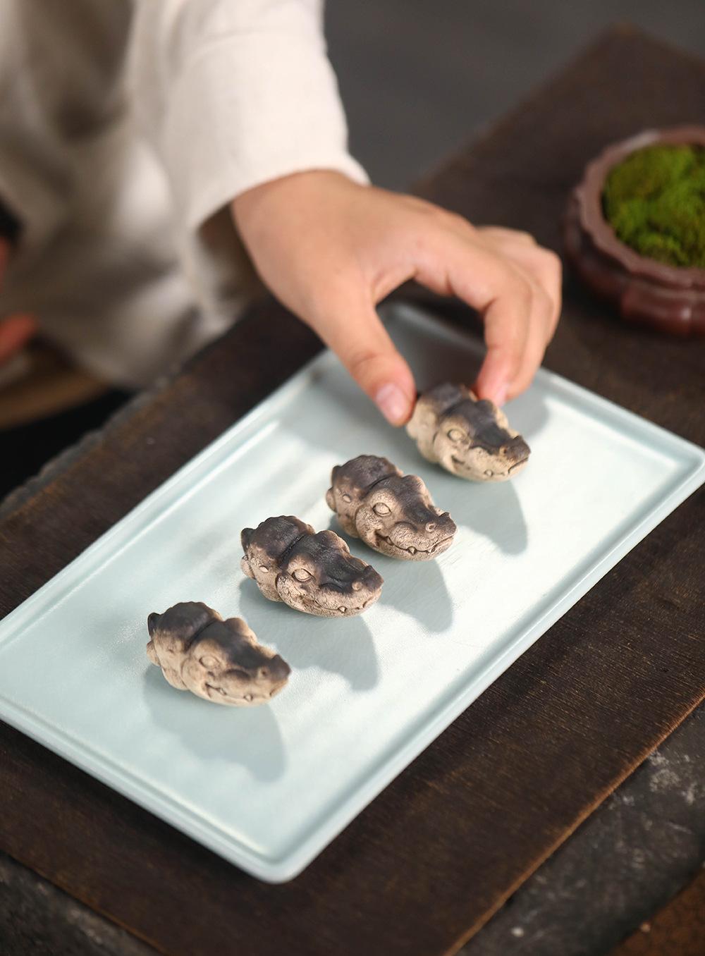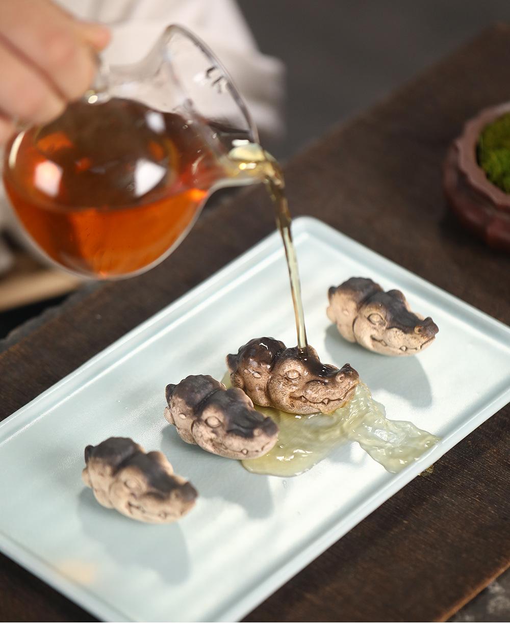 Cocodrilo mascota de té de arena púrpura de Yixing, pequeños adornos hechos a mano, juego de té nutritivo para la ceremonia del té, accesorios para la mesa de té, juego de té, cocodrilo financiero