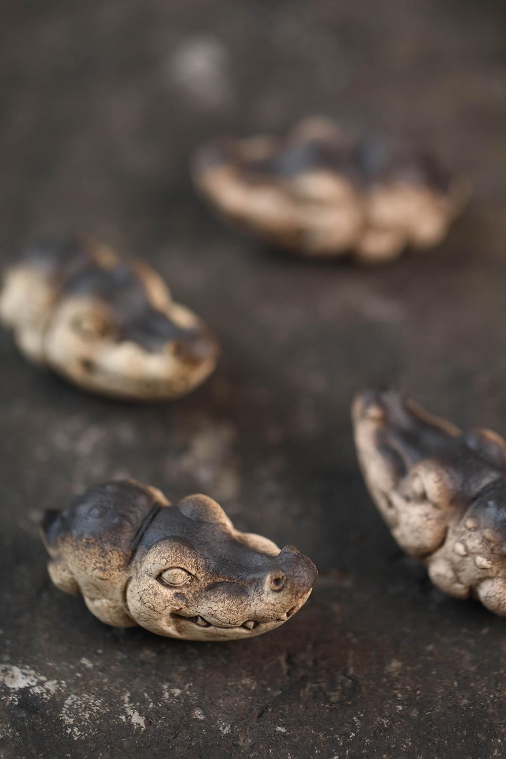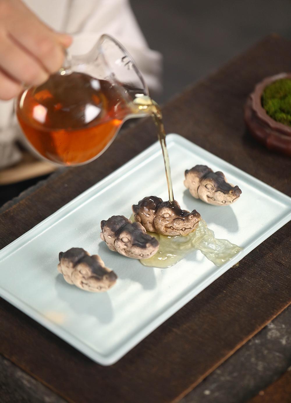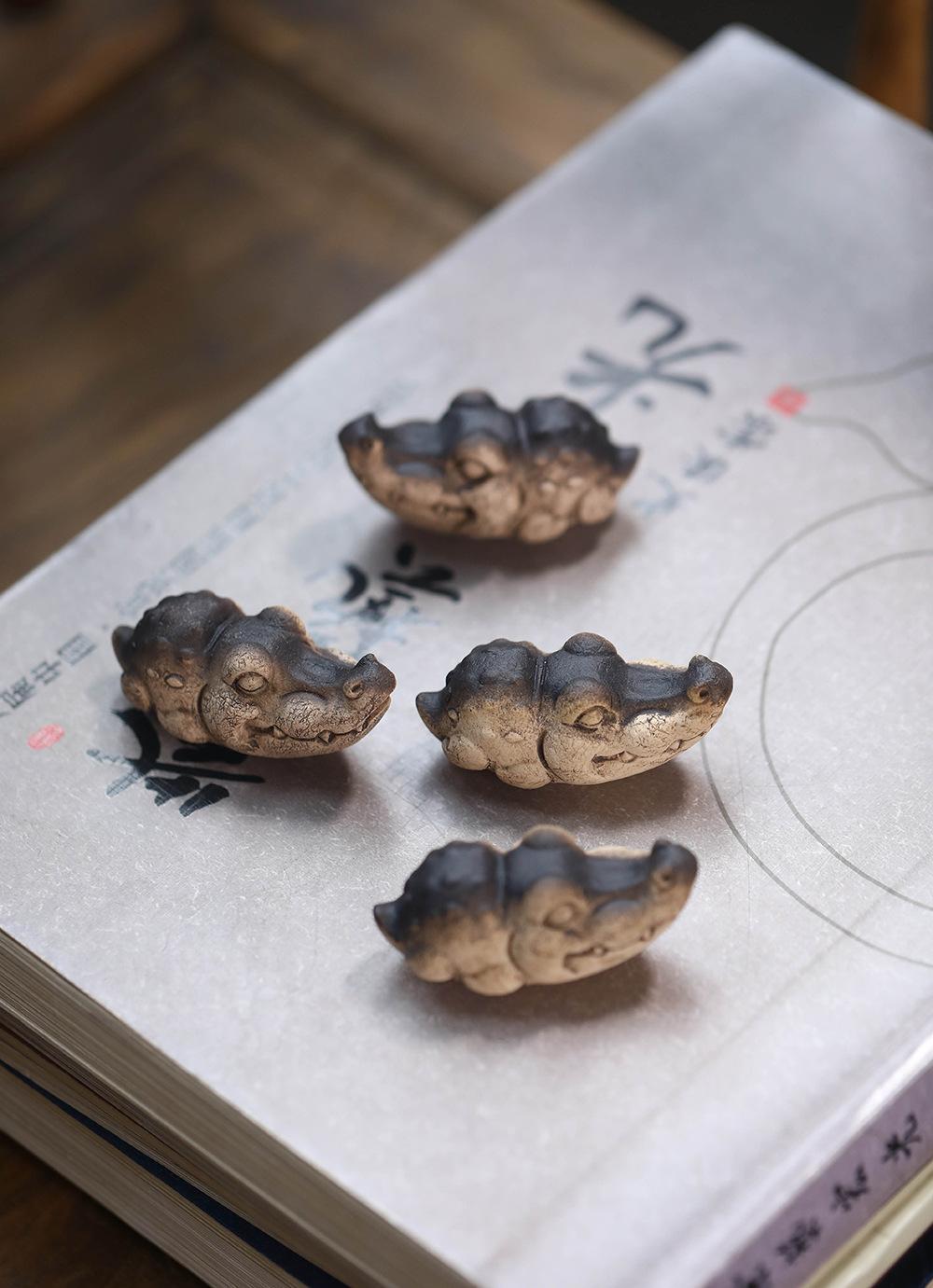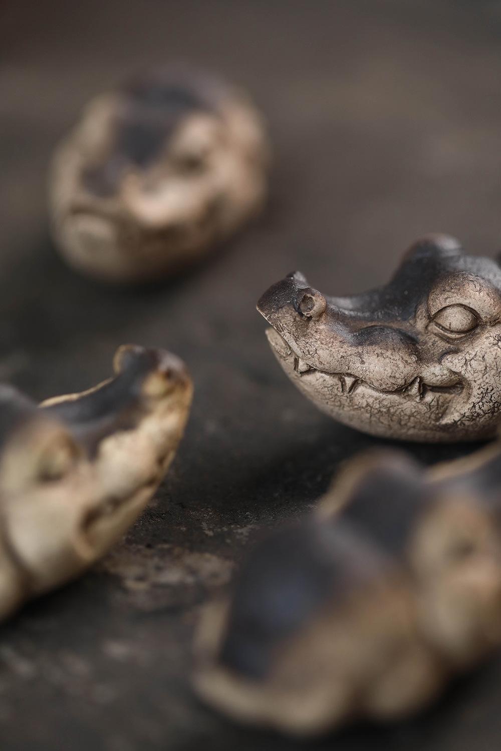 Cocodrilo mascota de té de arena púrpura de Yixing, pequeños adornos hechos a mano, juego de té nutritivo para la ceremonia del té, accesorios para la mesa de té, juego de té, cocodrilo financiero