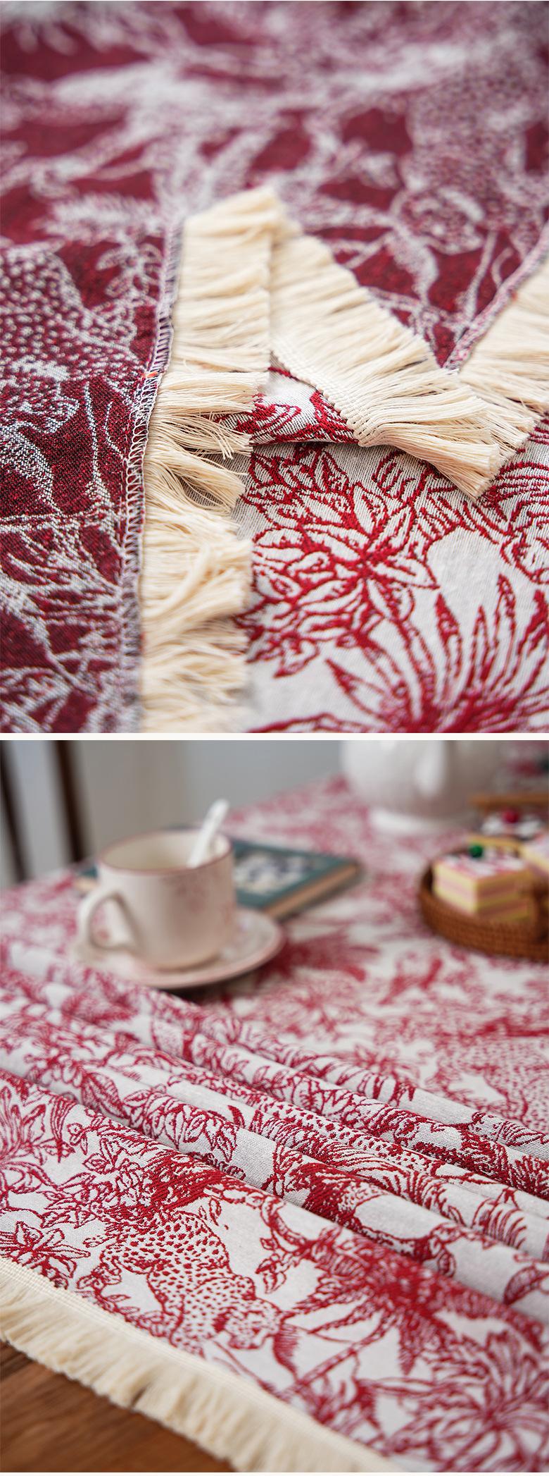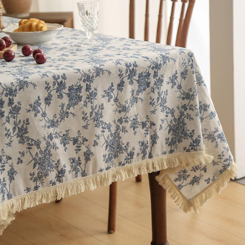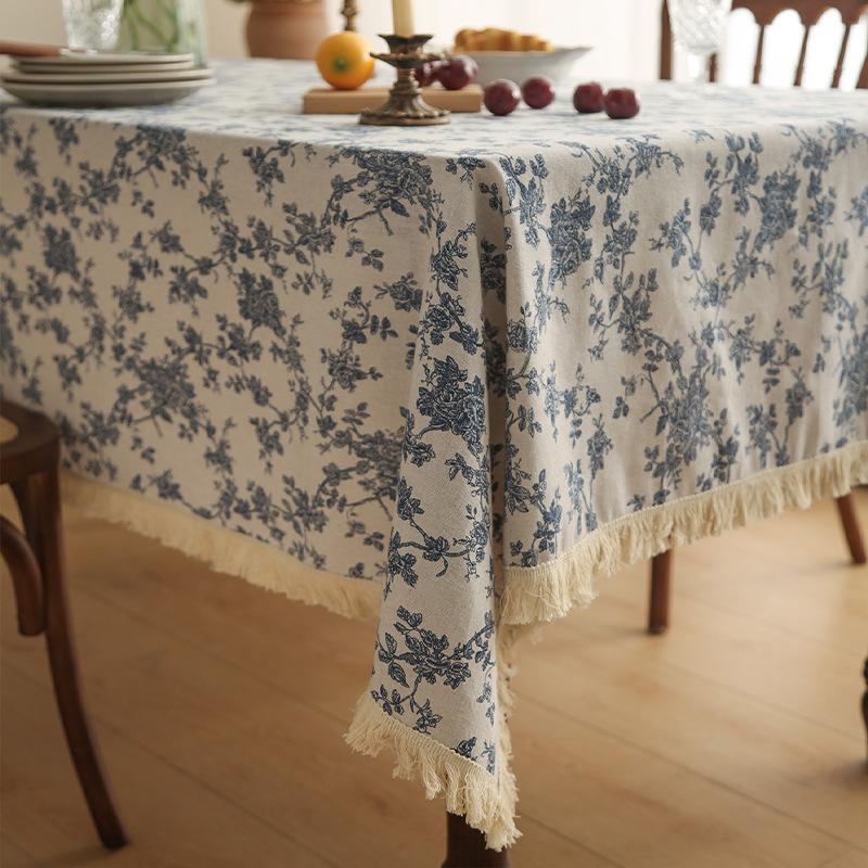 Mantel rectangular de algodón y lino azul, ligero y lujoso, estilo ins, pequeño, fresco, con diseño floral, para picnic, venta al por mayor