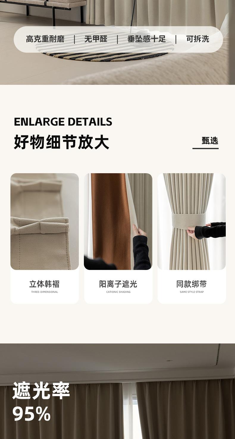 Cortinas de Terciopelo Crema Blackout Chenille Modernas Minimalistas Sala de Estar Dormitorio Casa Entera Cortinas Personalizadas Fábrica Shaoxing Keqiao
