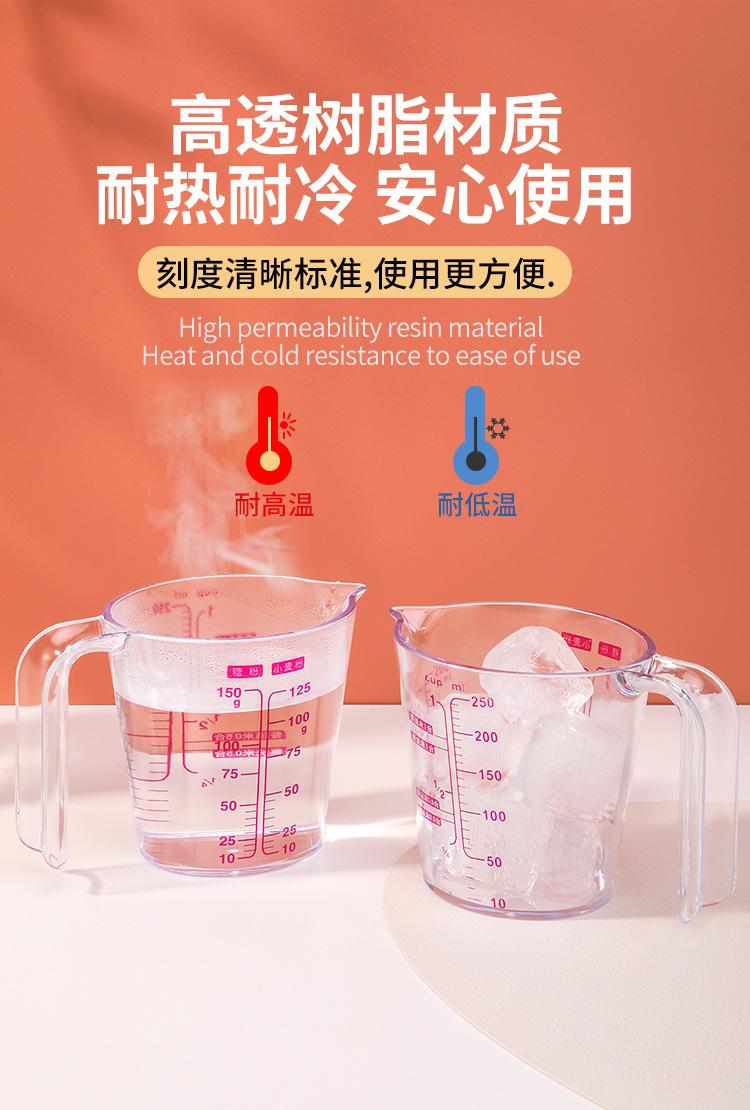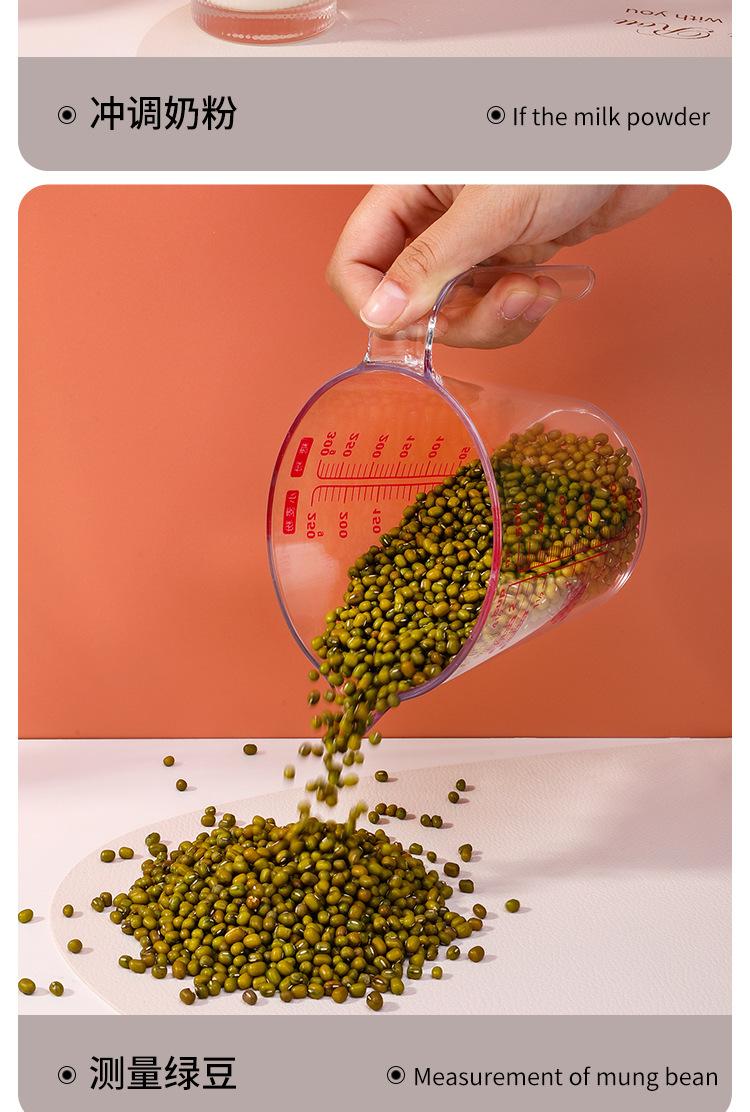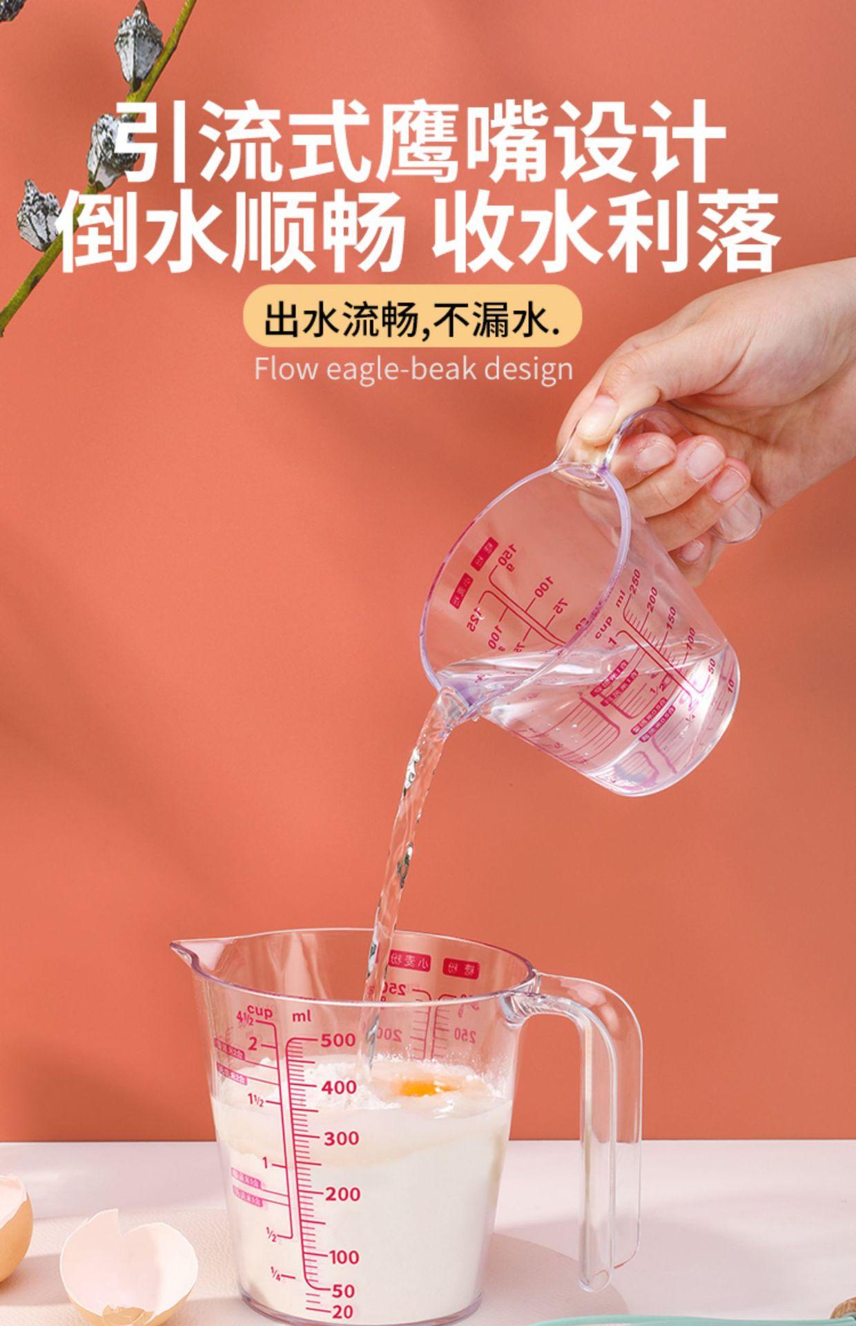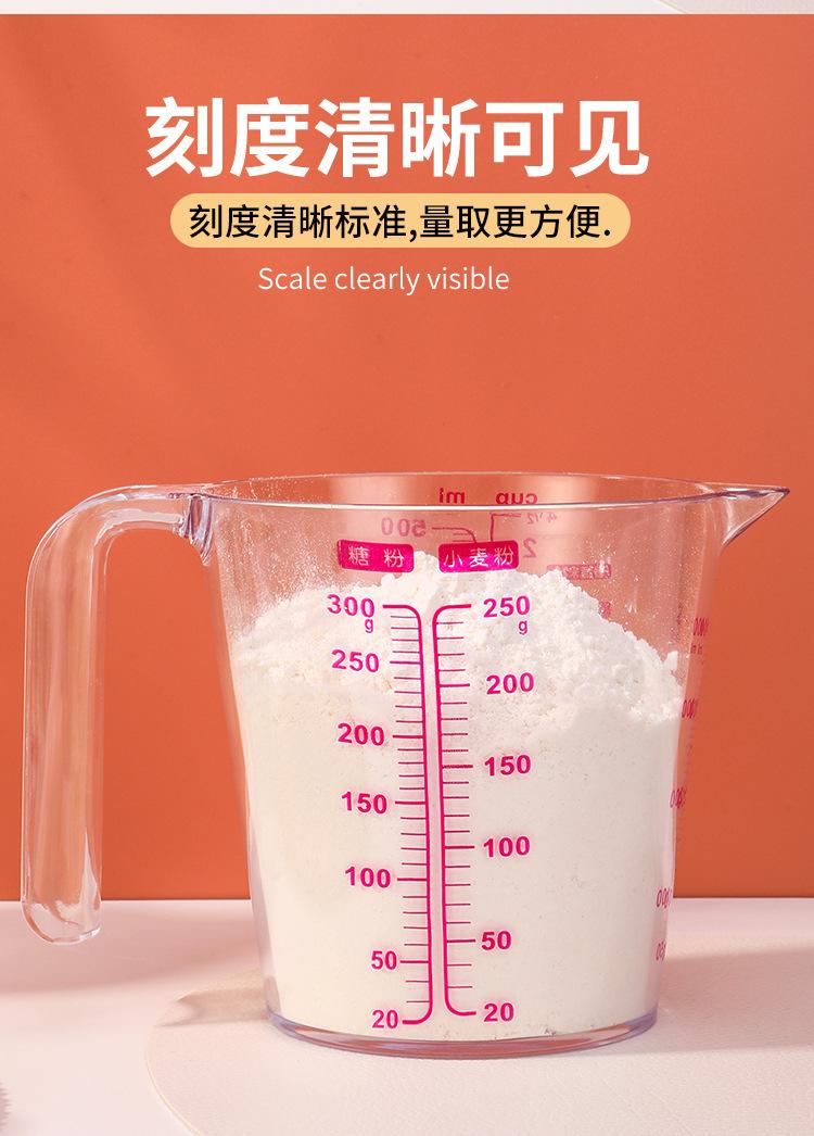 Taza medidora de plástico para hornear con escala, cubo medidor de harina de grado alimenticio para el hogar, herramientas para tienda de té y leche, taza medidora de ml