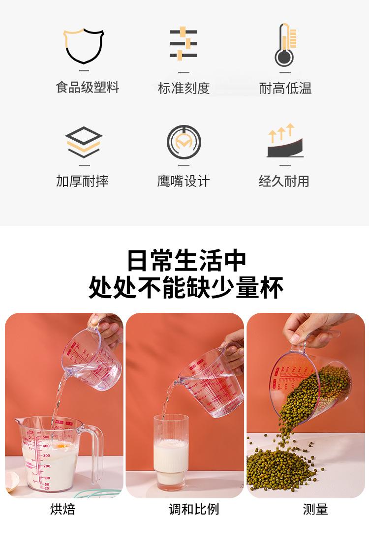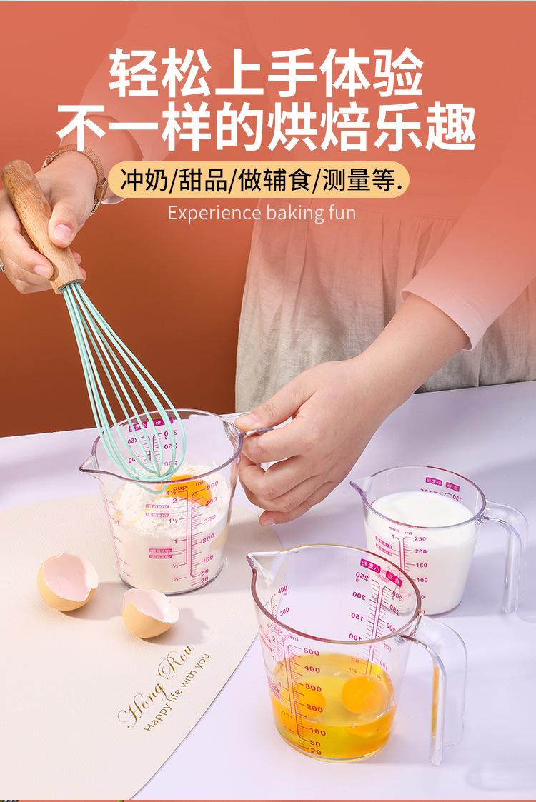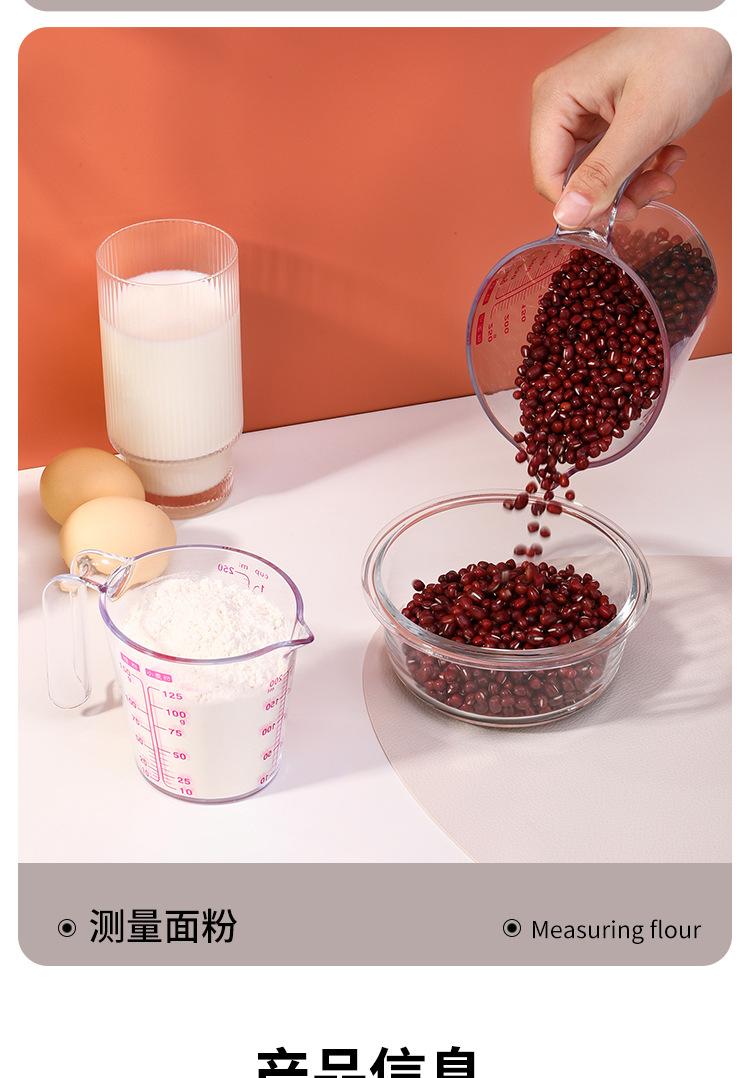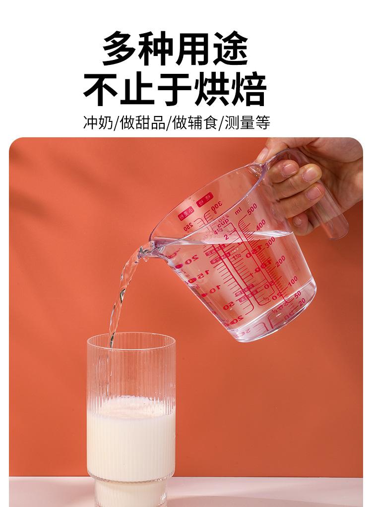 Taza medidora de plástico para hornear con escala, cubo medidor de harina de grado alimenticio para el hogar, herramientas para tienda de té y leche, taza medidora de ml