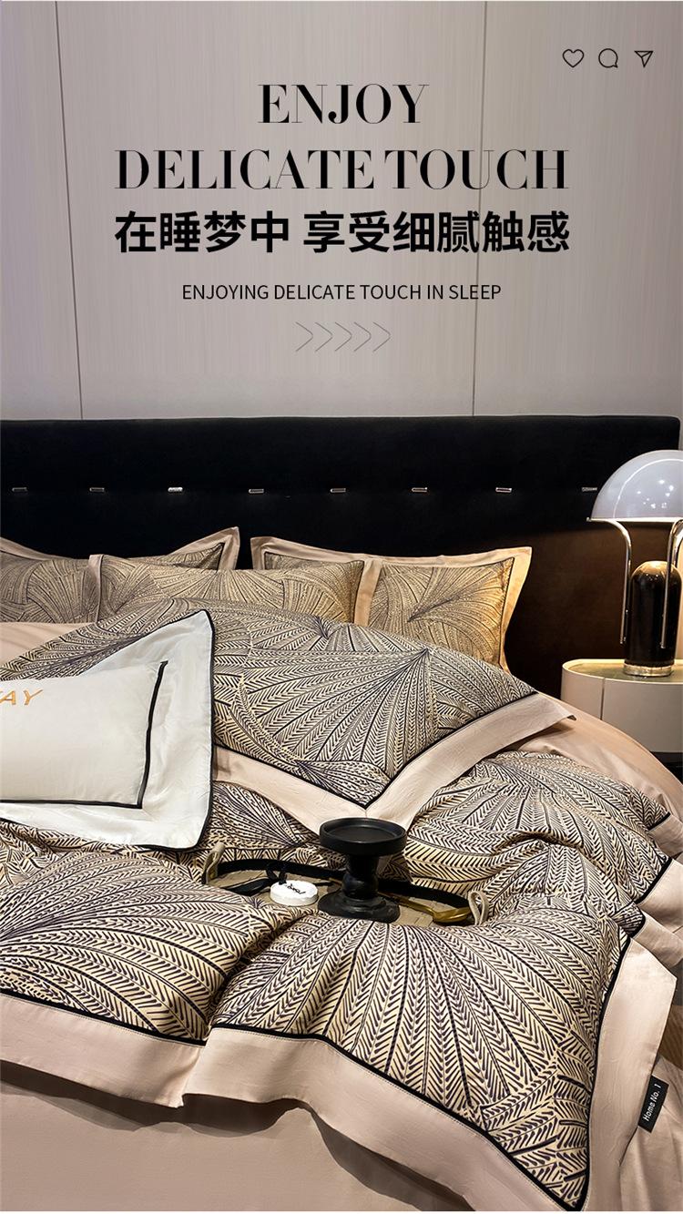 Ropa de cama de satén con estampado de primavera y verano, funda de edredón doble de 10 piezas, algodón de fibra larga americano 0