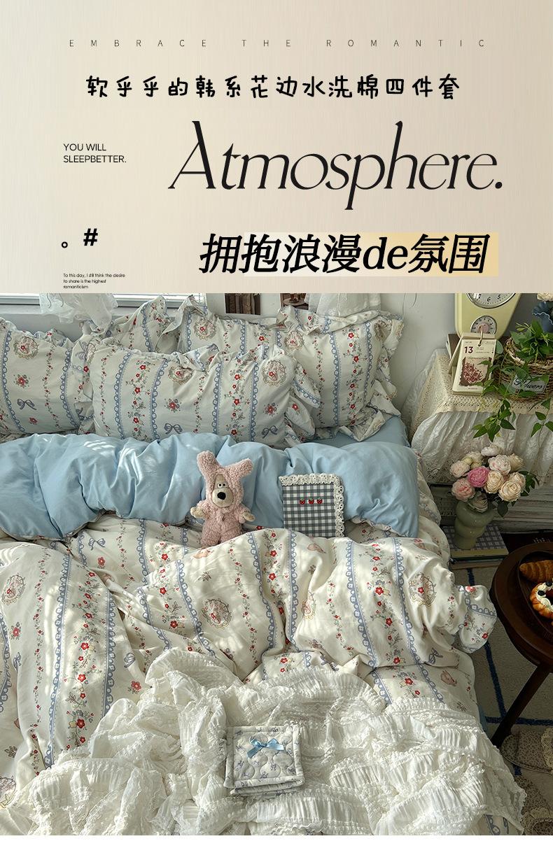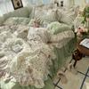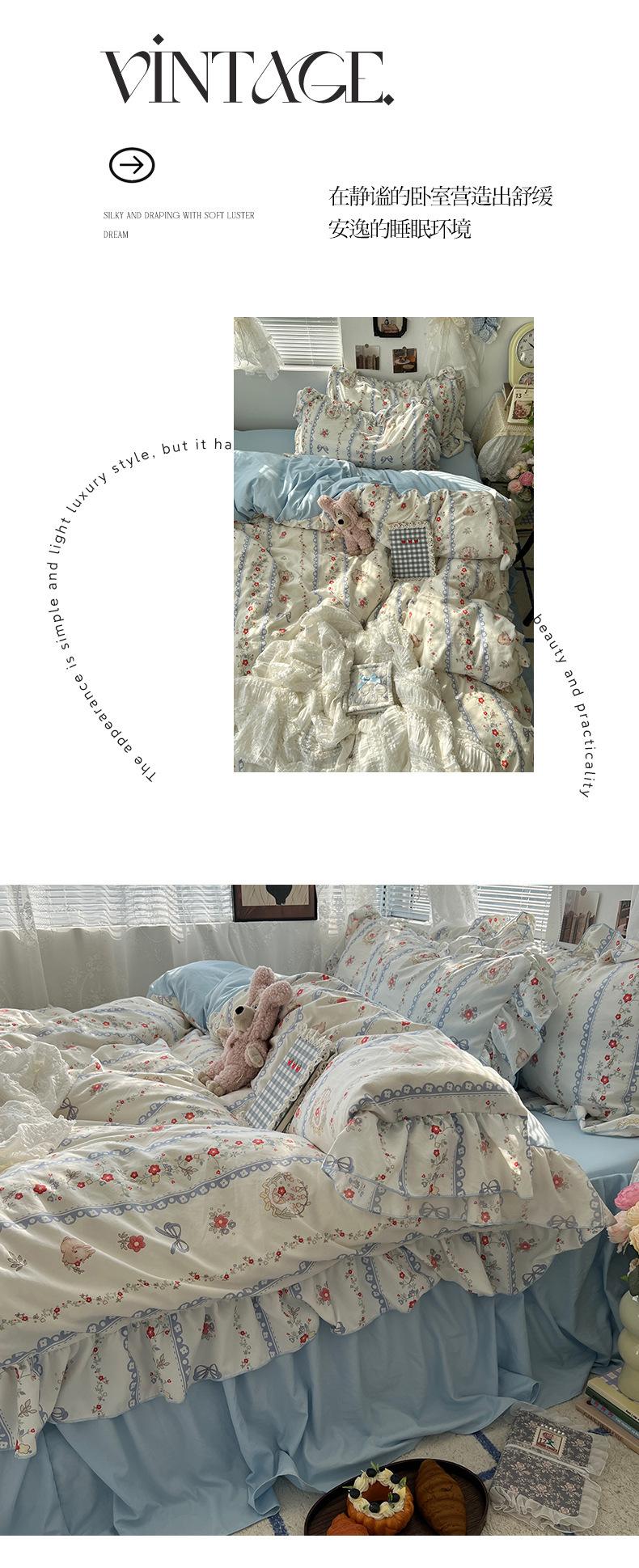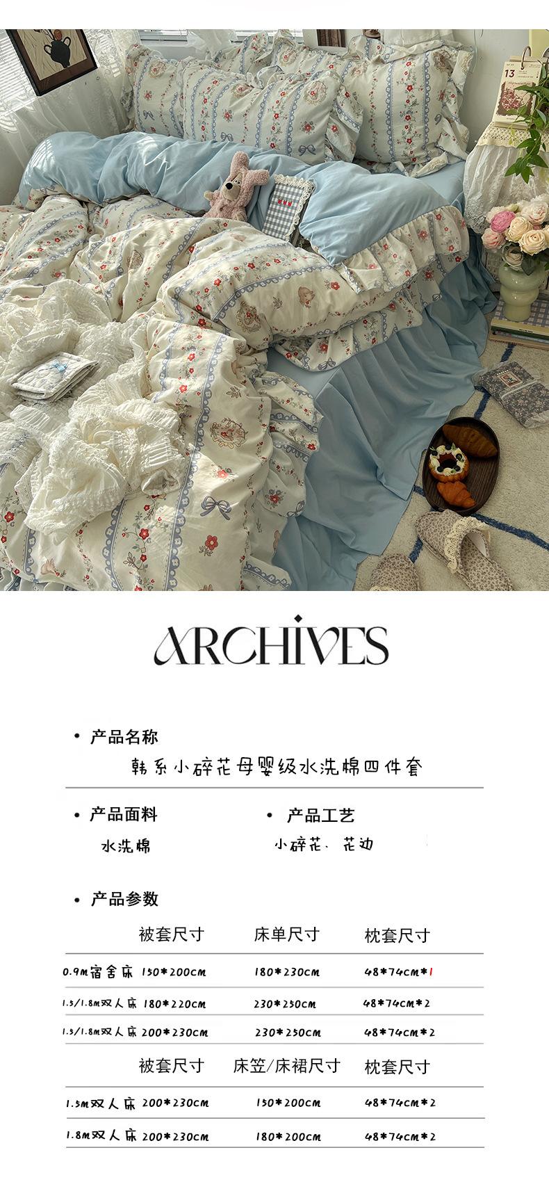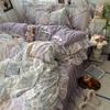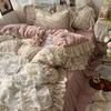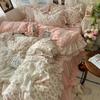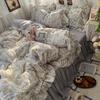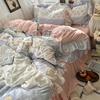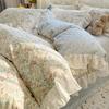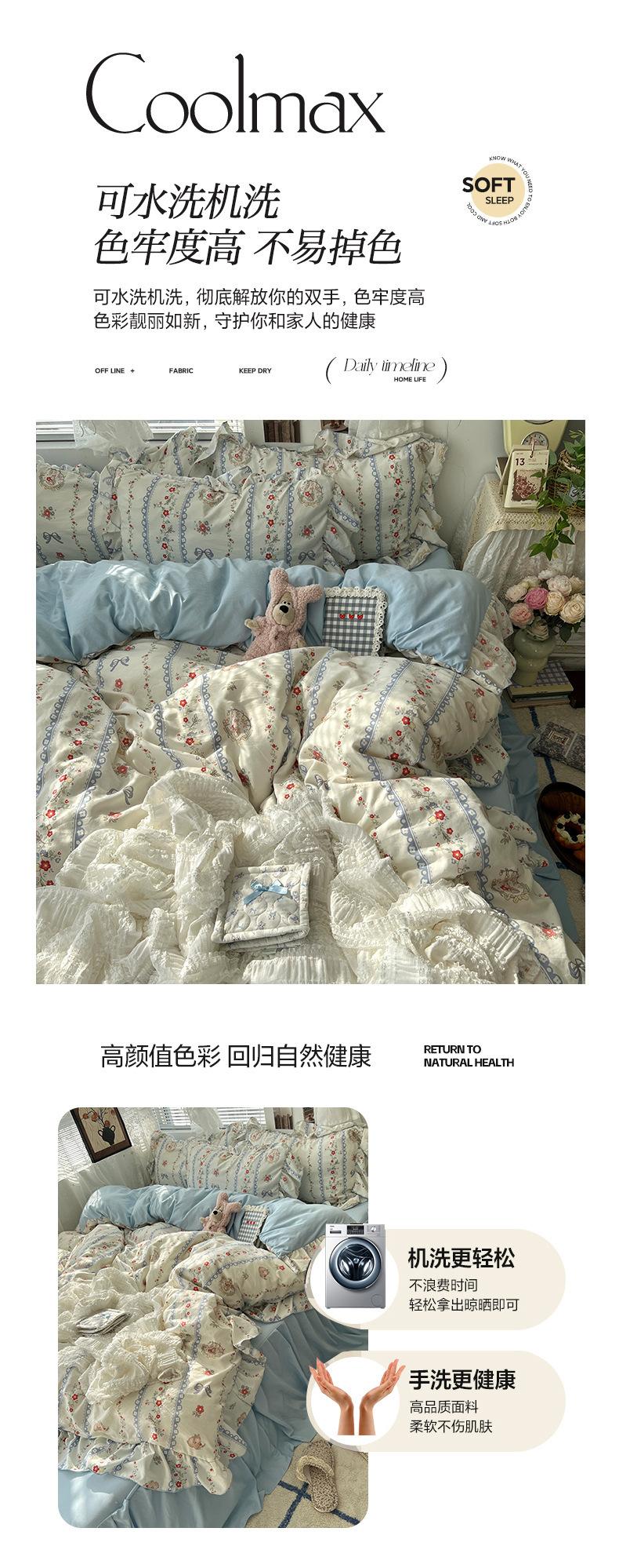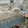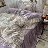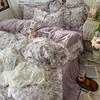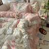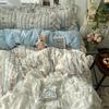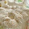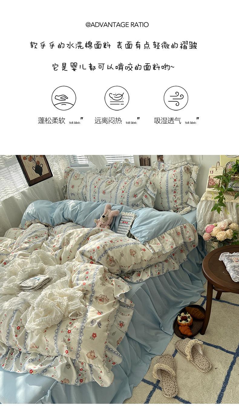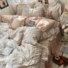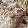 Juego de sábanas de algodón lavado de cuatro piezas, funda de edredón de encaje estilo princesa, textiles para el hogar Nantong, juego de funda de edredón para dormitorio de tres piezas