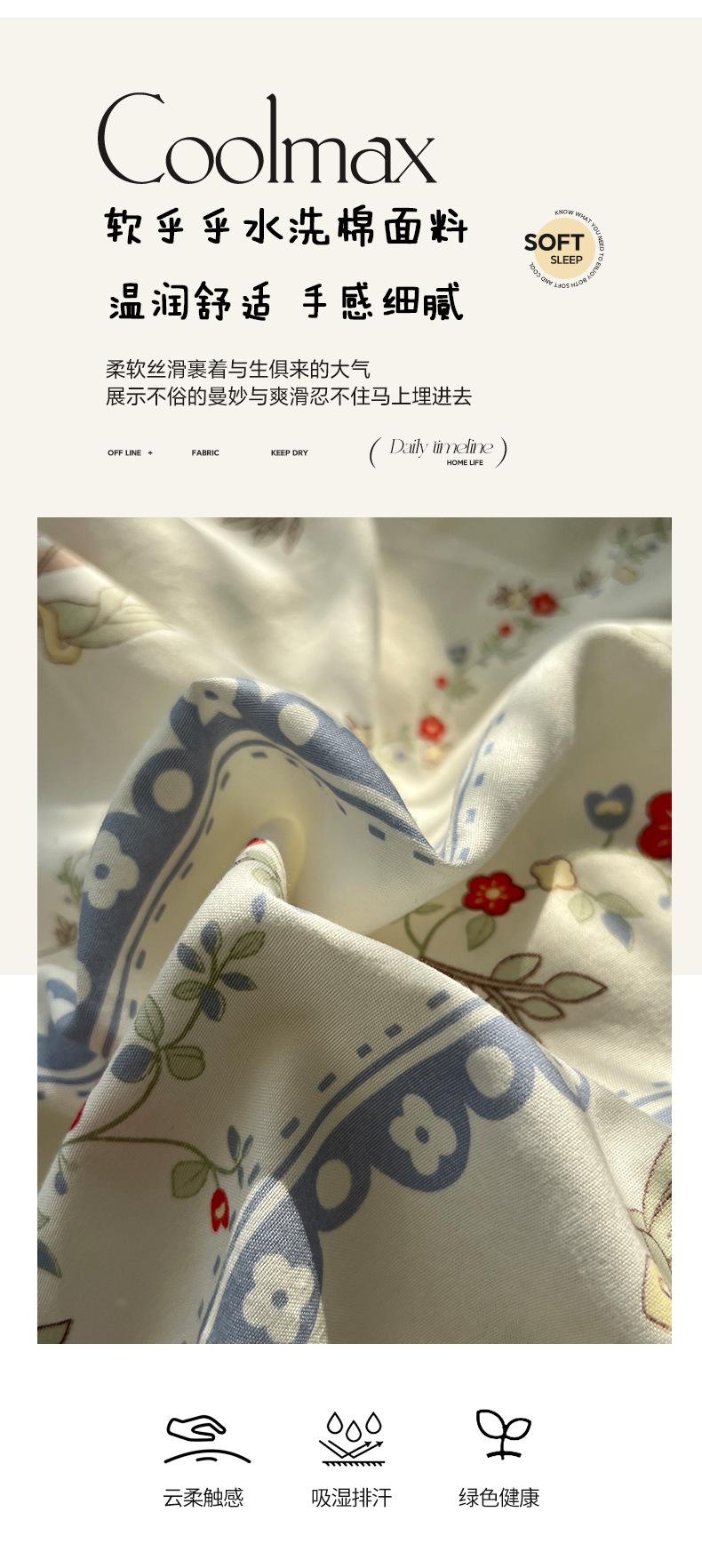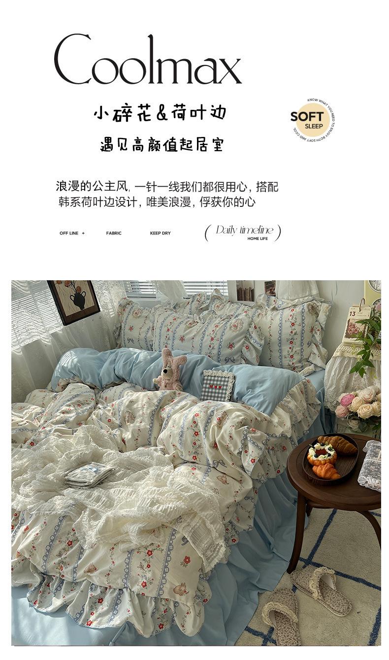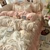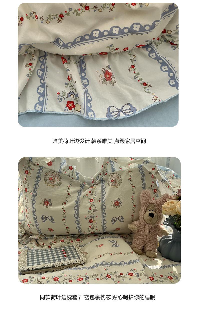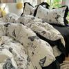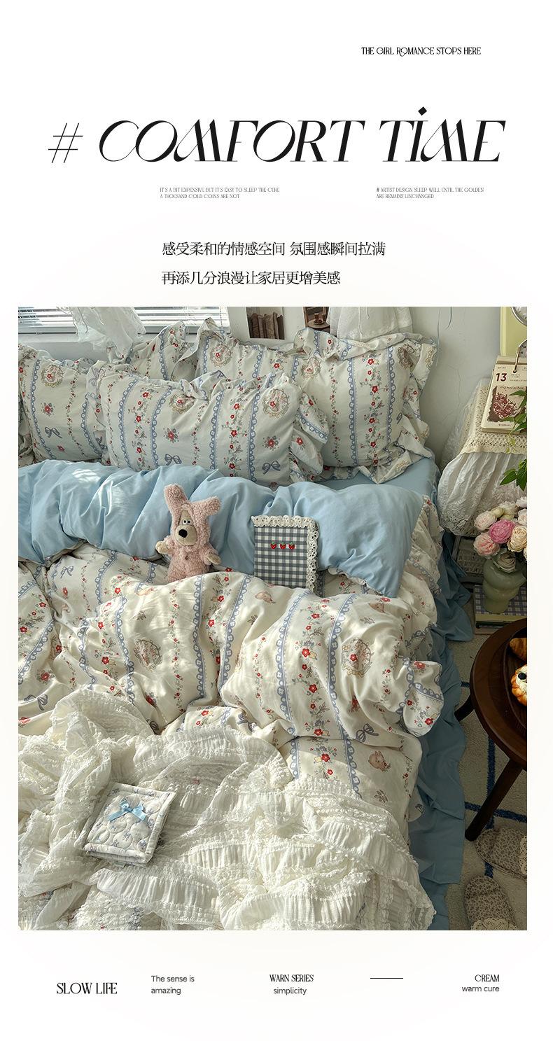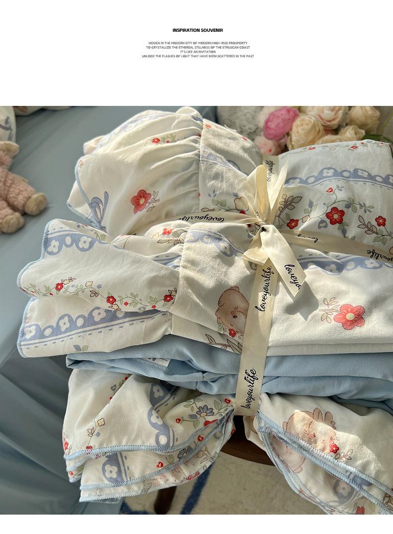 Juego de sábanas de algodón lavado de cuatro piezas, funda de edredón de encaje estilo princesa, textiles para el hogar Nantong, juego de funda de edredón para dormitorio de tres piezas