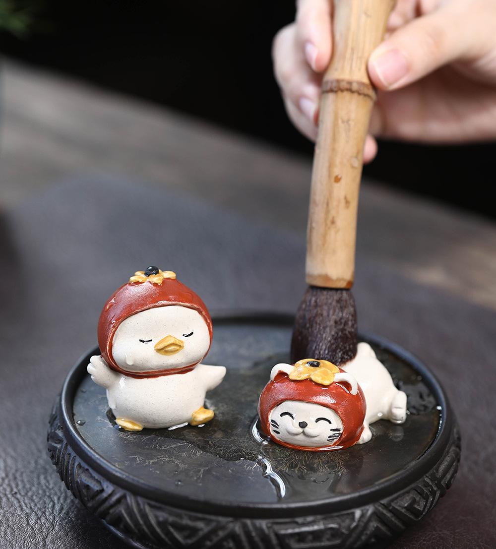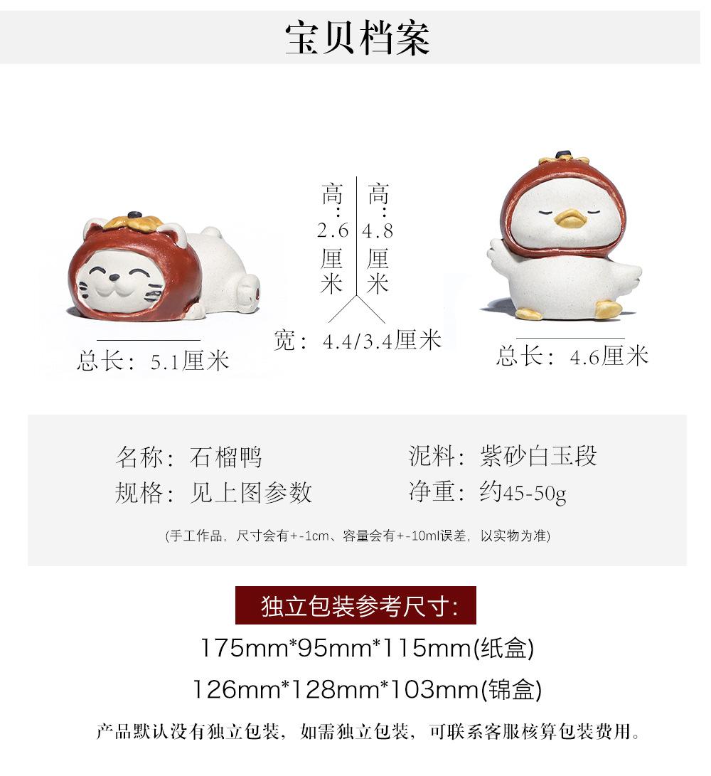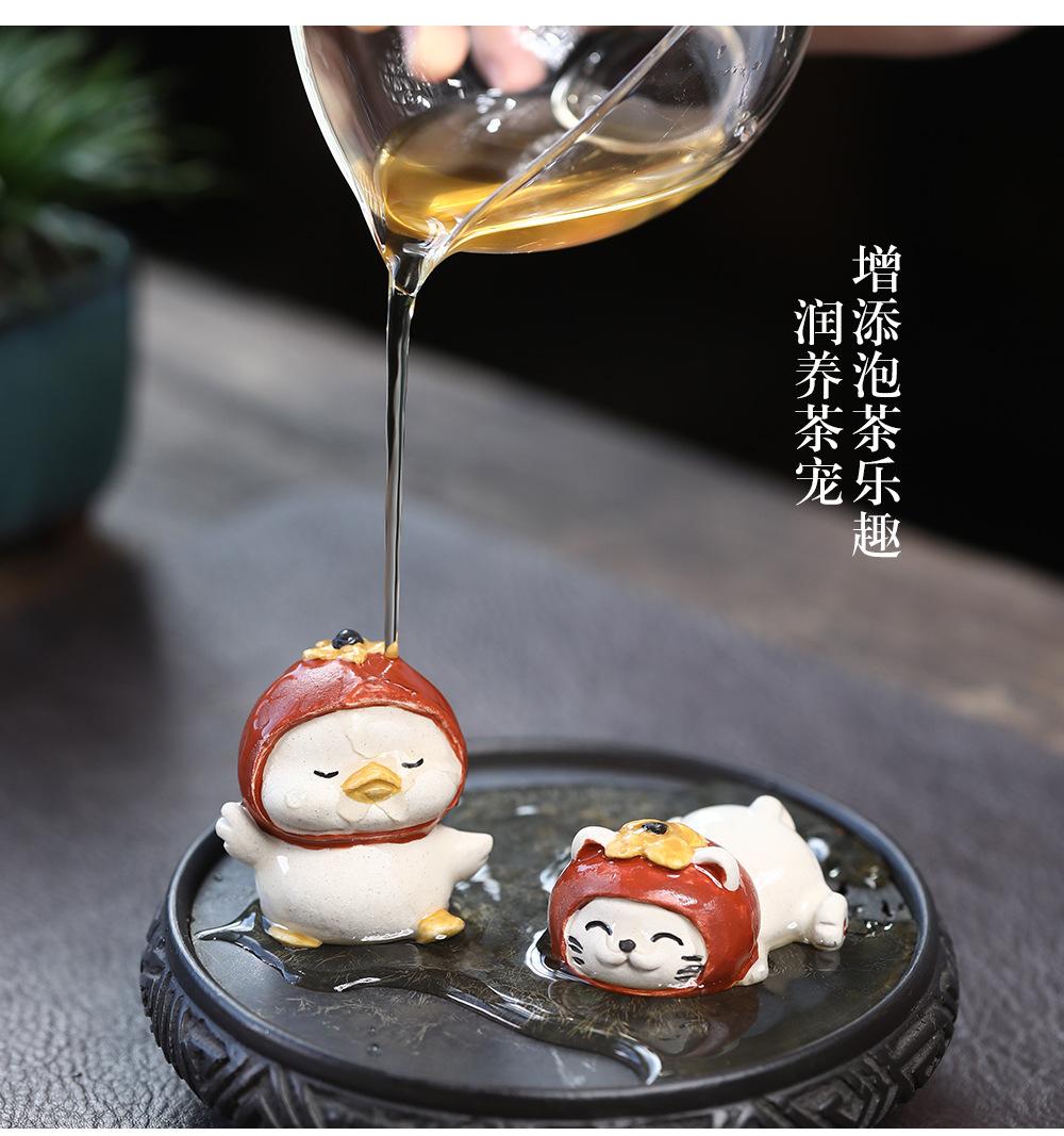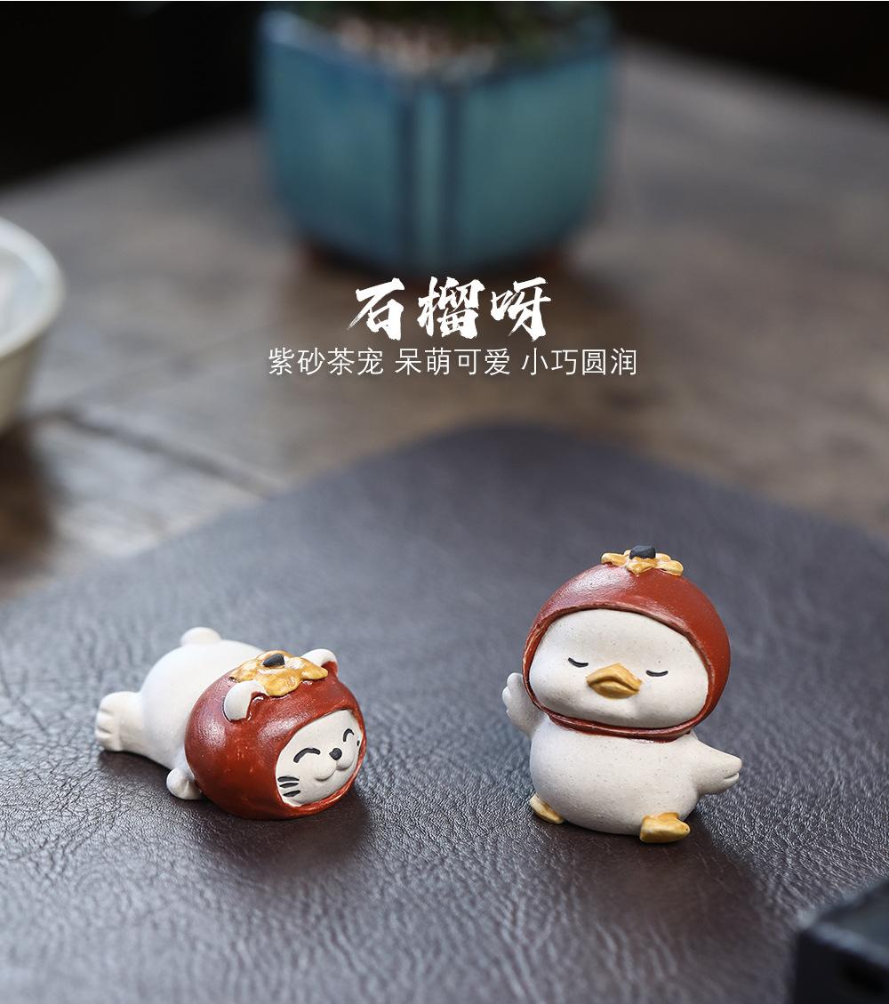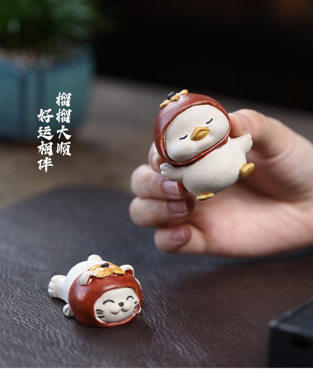 Adornos de pato amarillo para mascotas de té de arena púrpura de Yixing, escultura de granada, mesa de té de gato de la suerte de caqui, juego de té, accesorios que se pueden levantar
