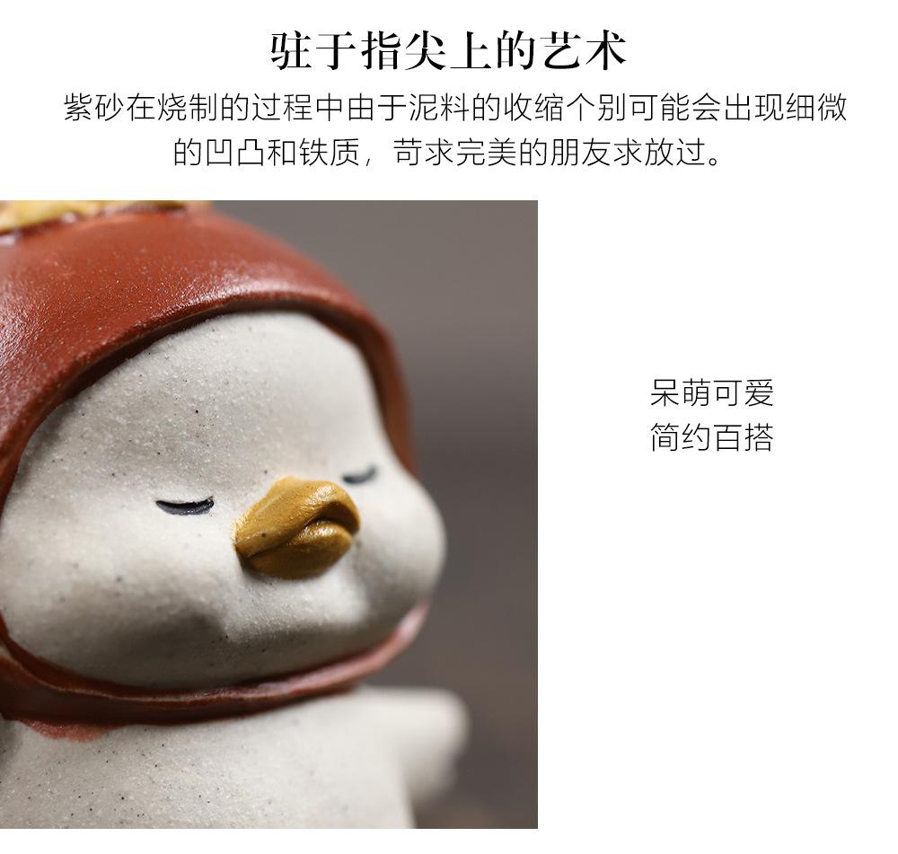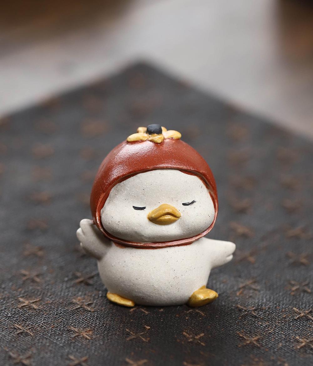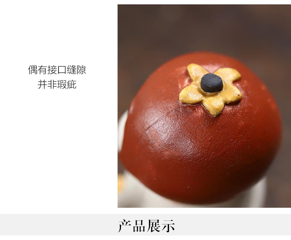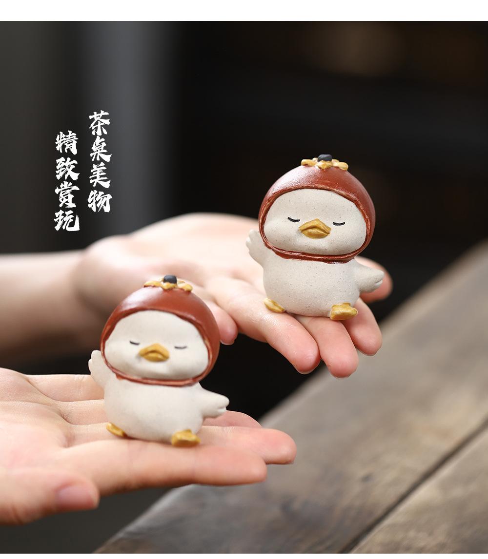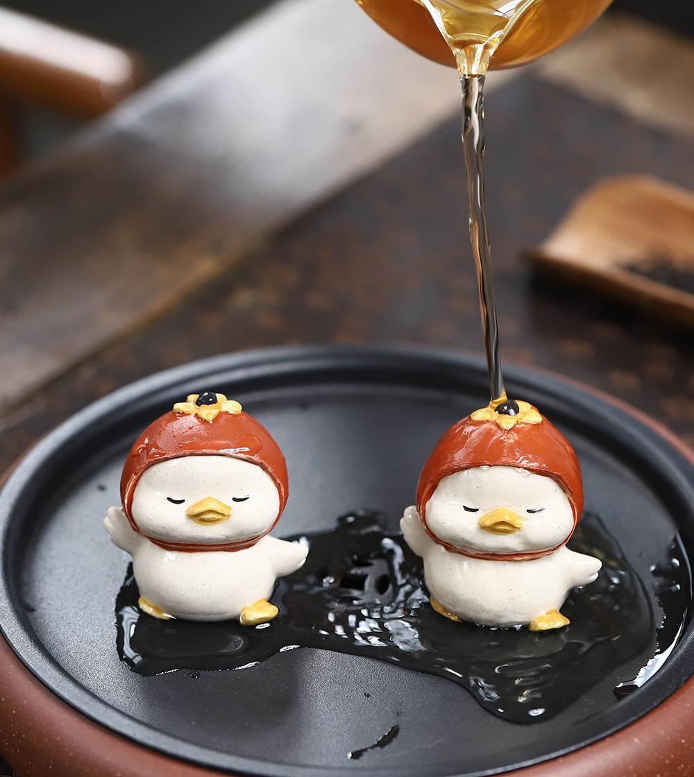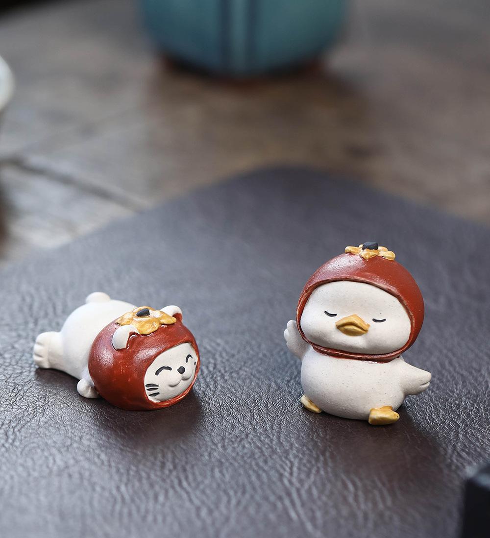 Adornos de pato amarillo para mascotas de té de arena púrpura de Yixing, escultura de granada, mesa de té de gato de la suerte de caqui, juego de té, accesorios que se pueden levantar