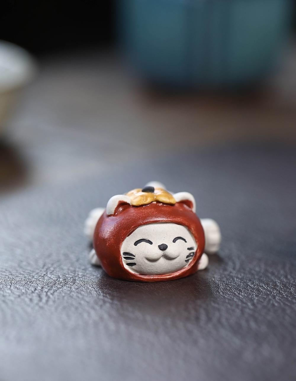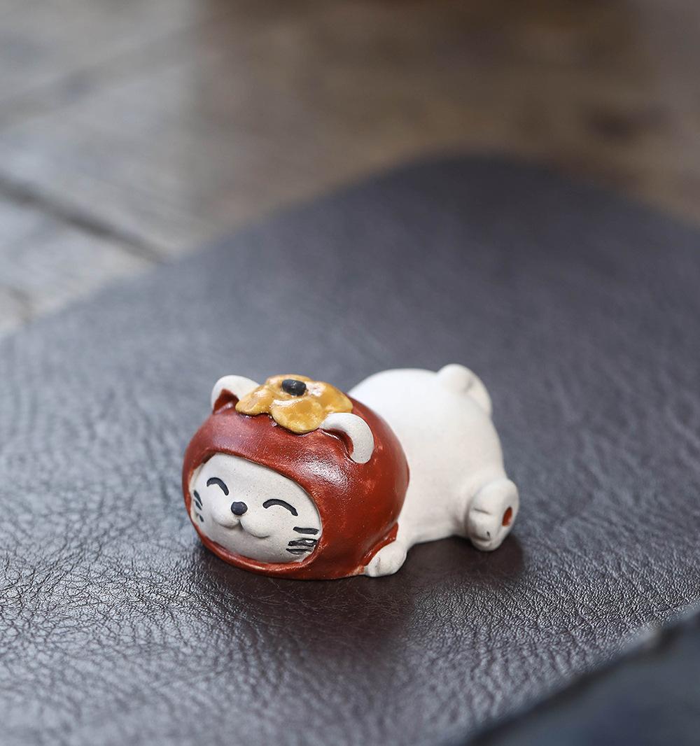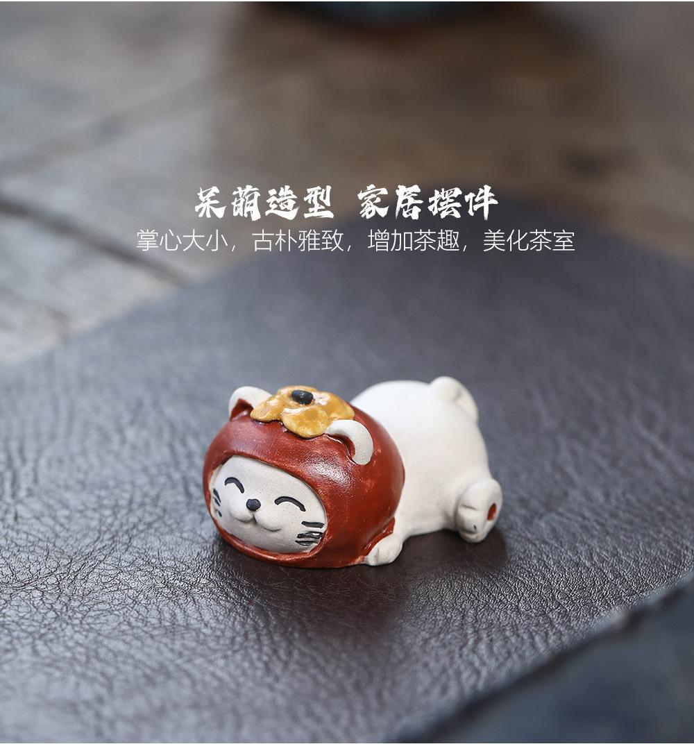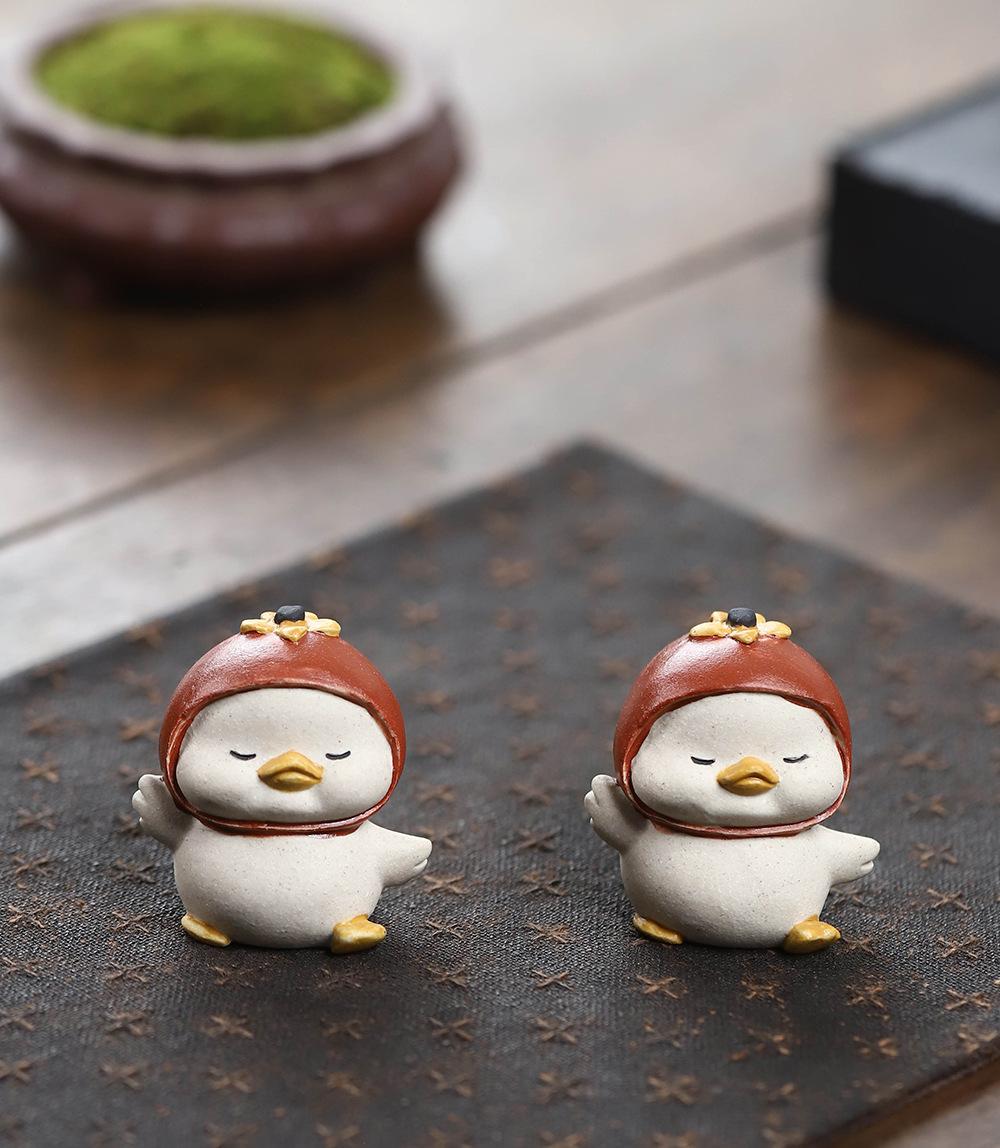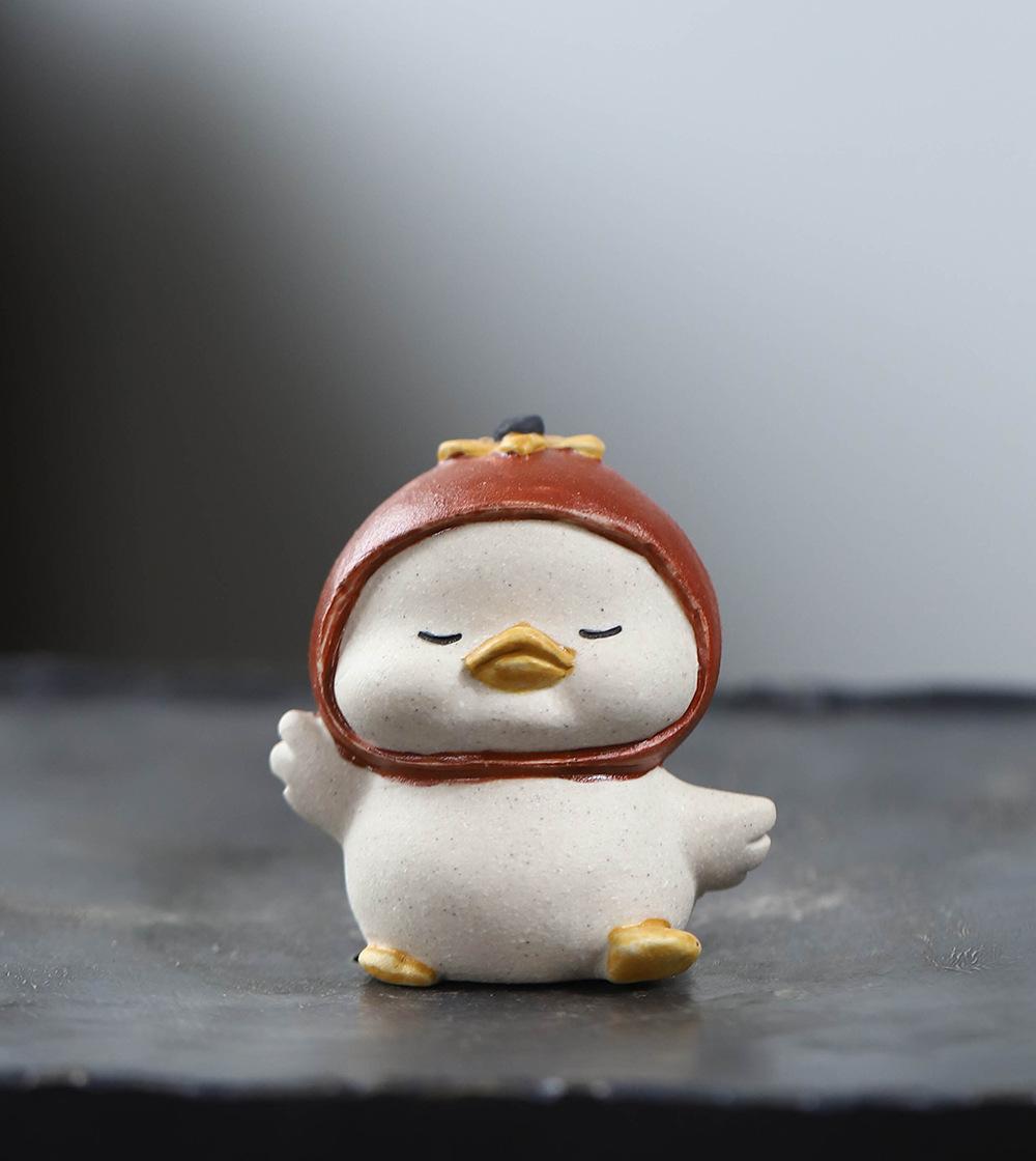 Adornos de pato amarillo para mascotas de té de arena púrpura de Yixing, escultura de granada, mesa de té de gato de la suerte de caqui, juego de té, accesorios que se pueden levantar